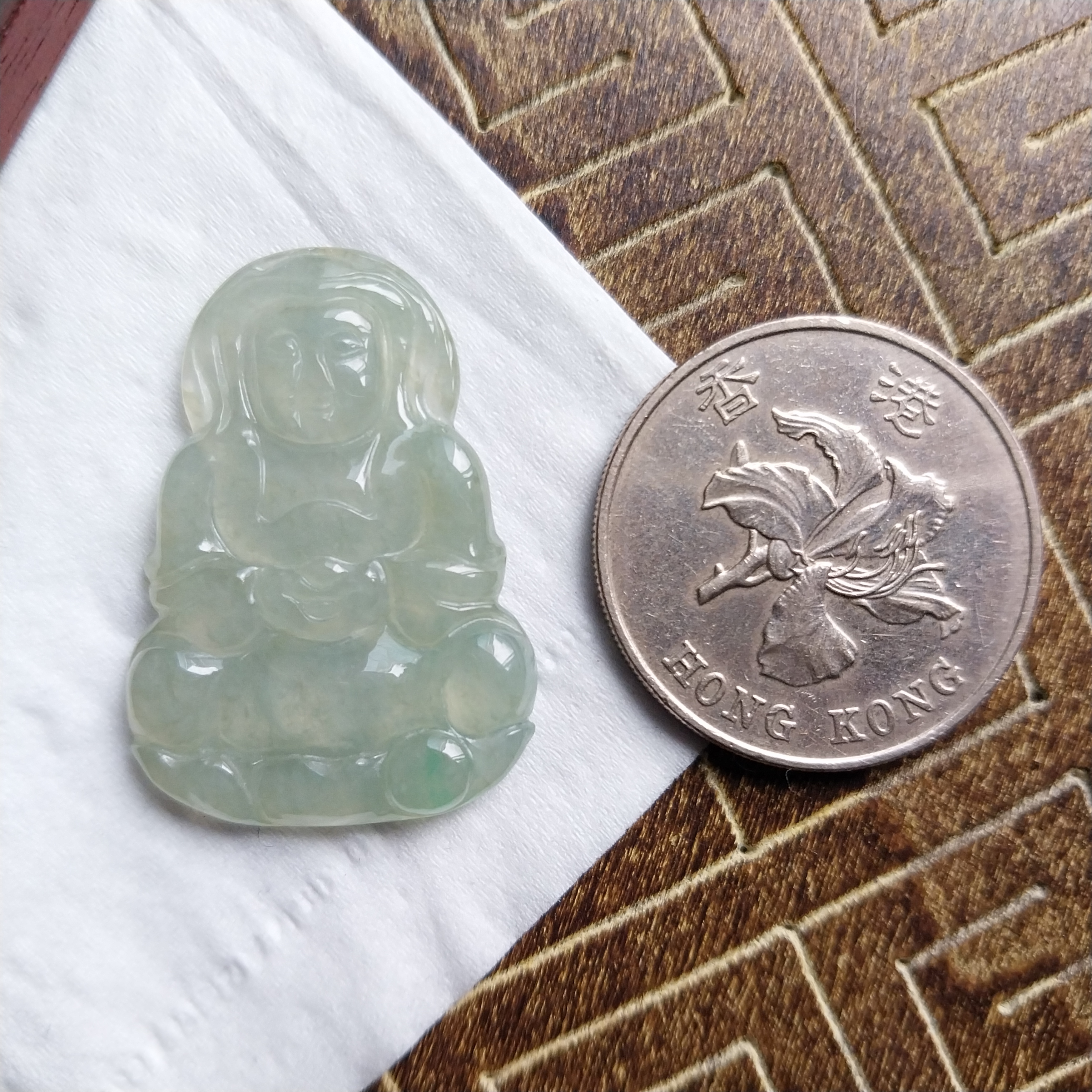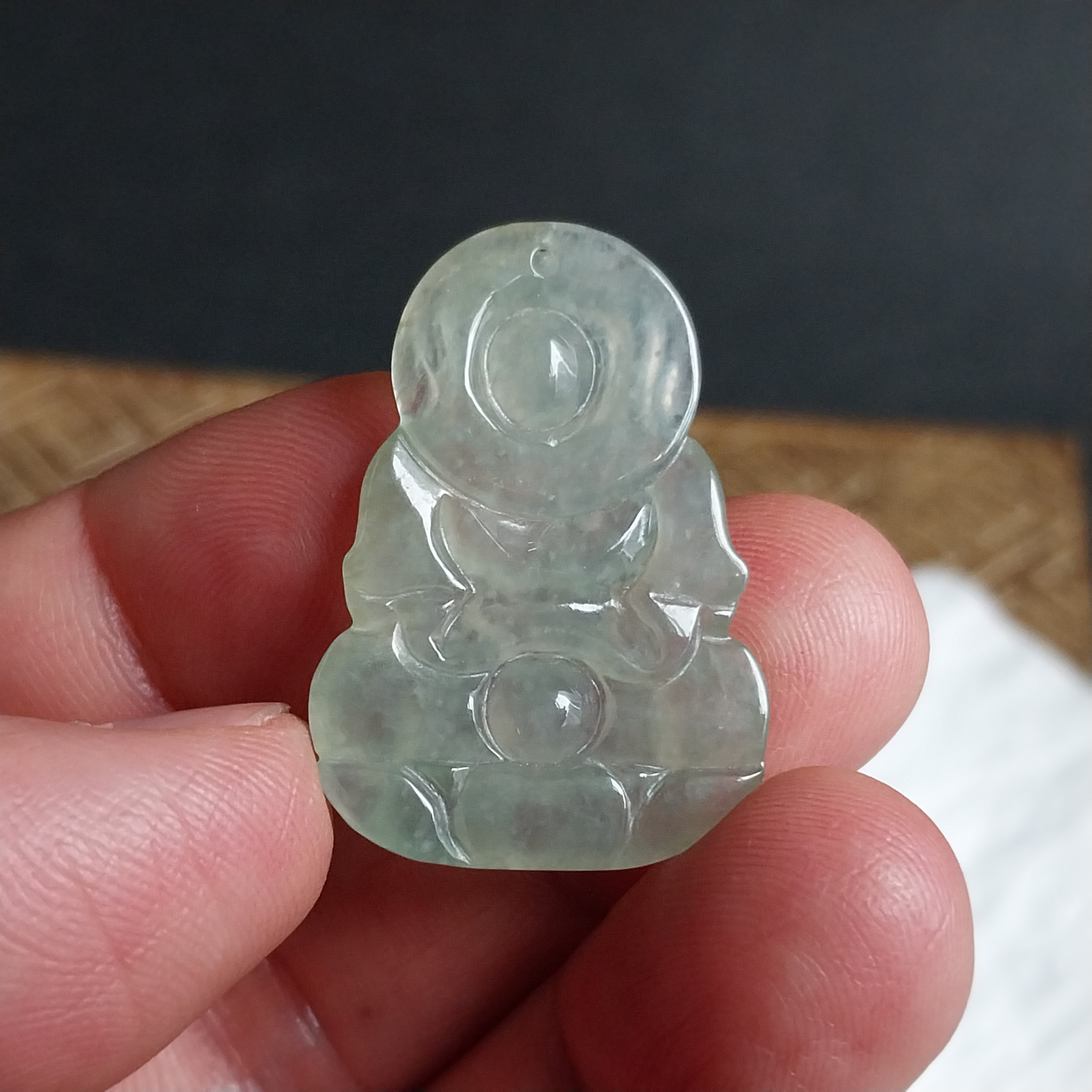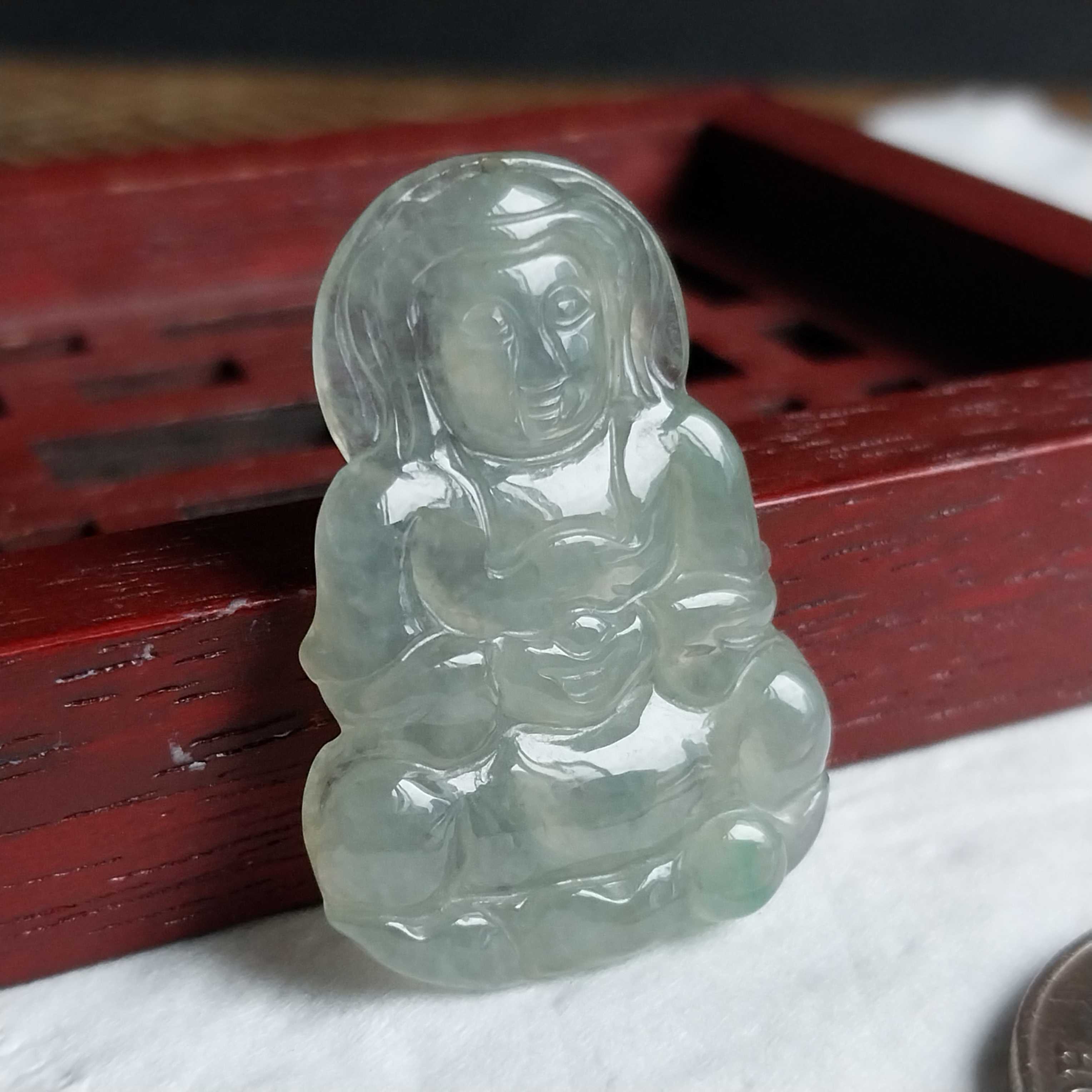 J2247 翡翠冰晴水綠坐蓮觀音吊墜