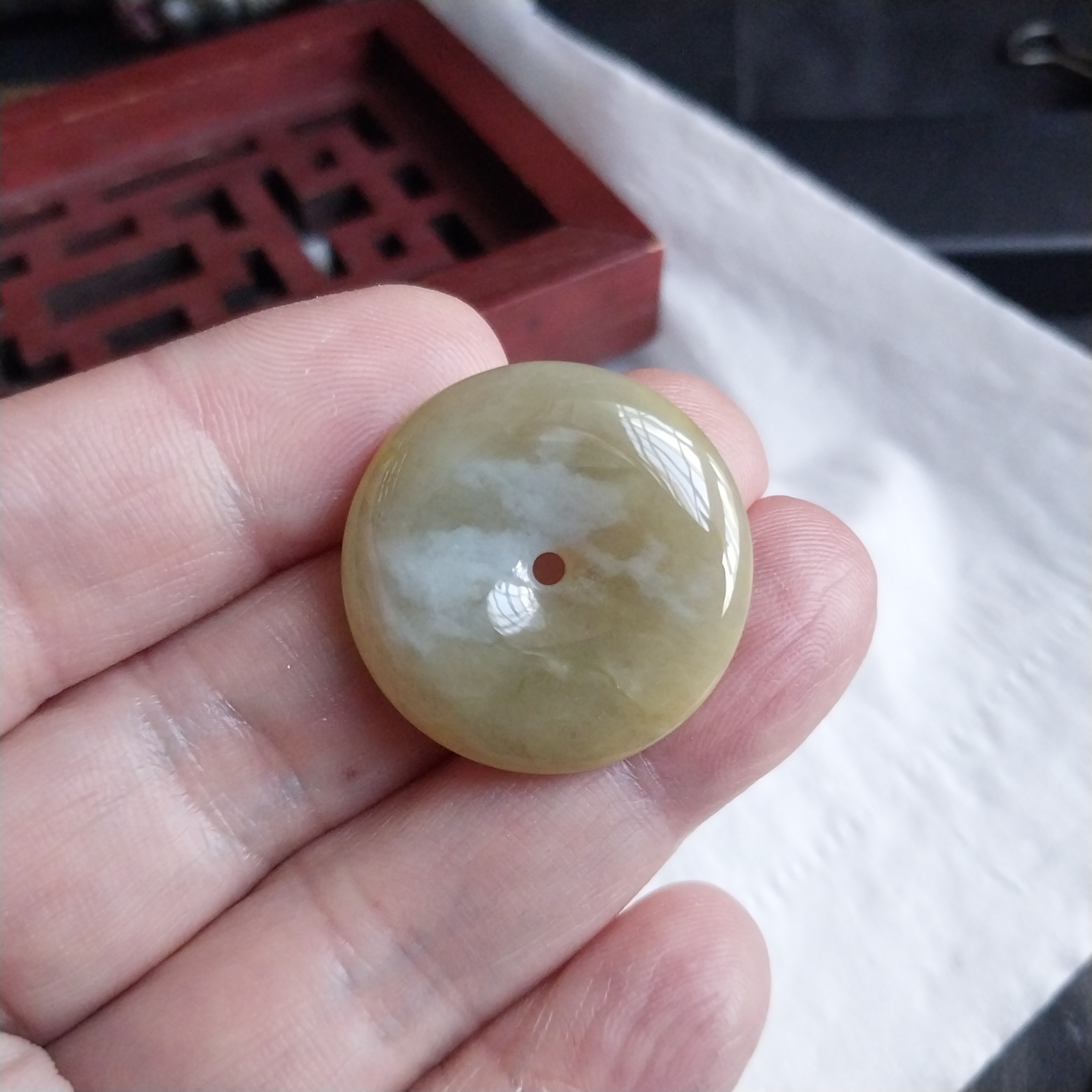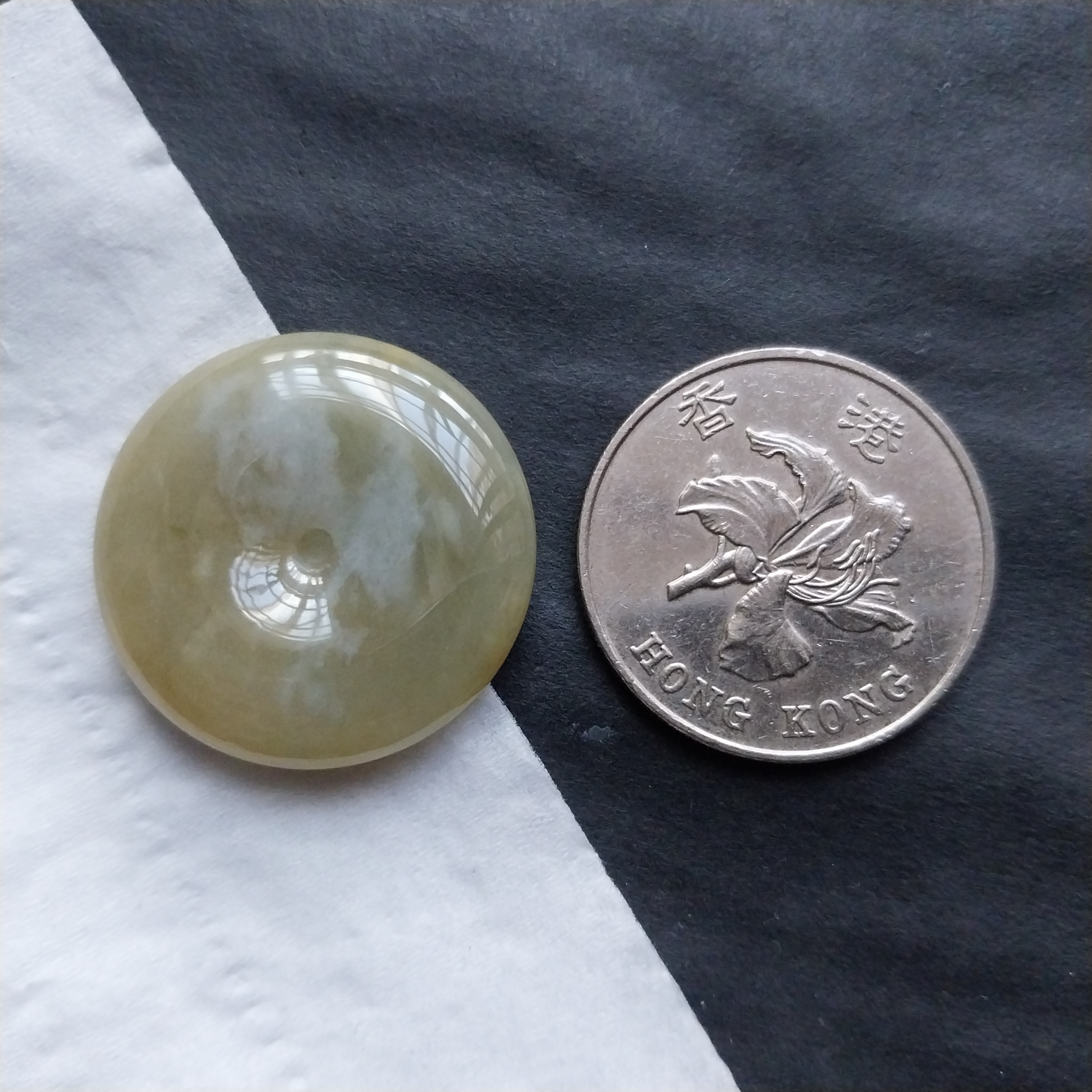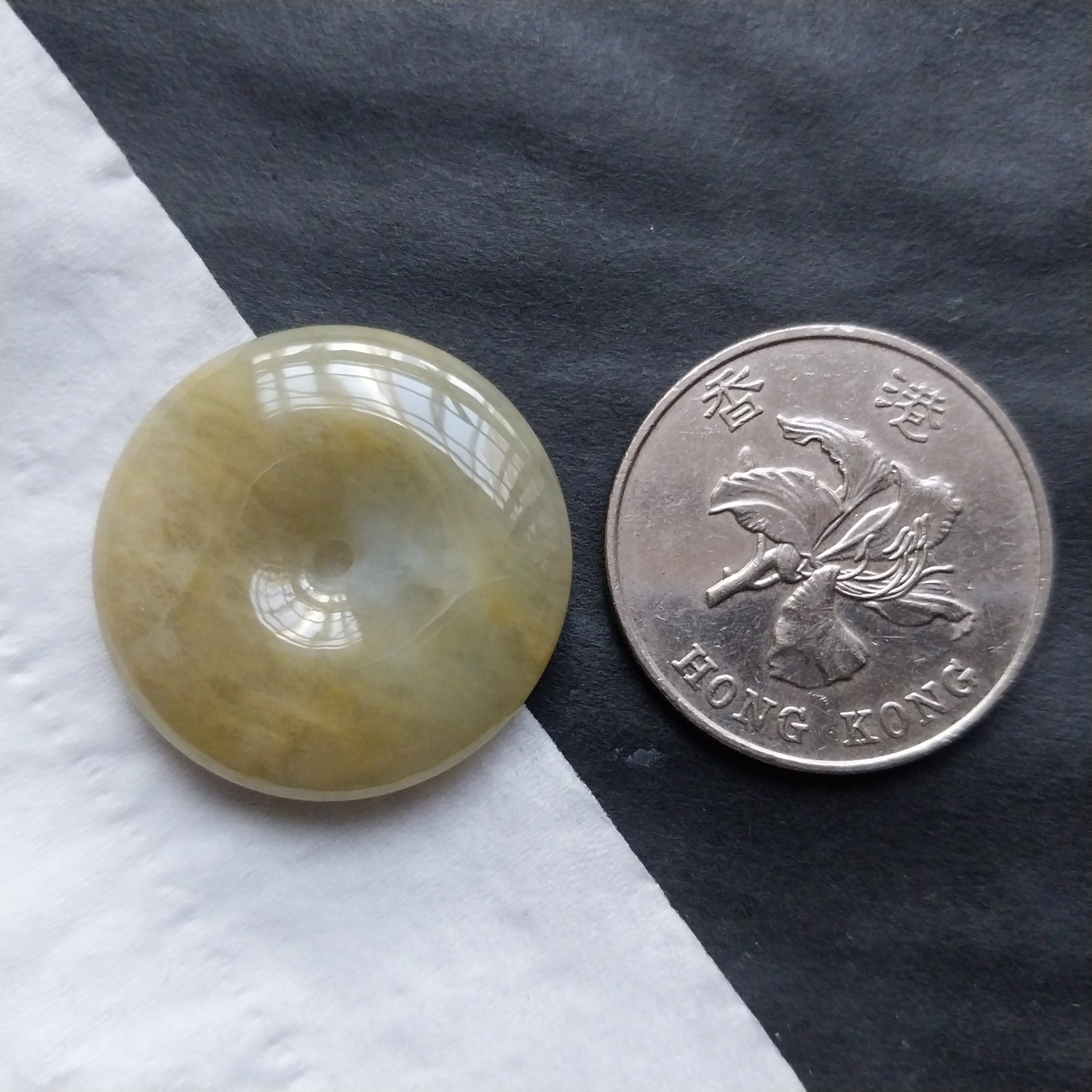 • 冰黃翡平安扣 (26mm直徑),天然翡翠A玉, 緬甸玉, Jade, Jadeite