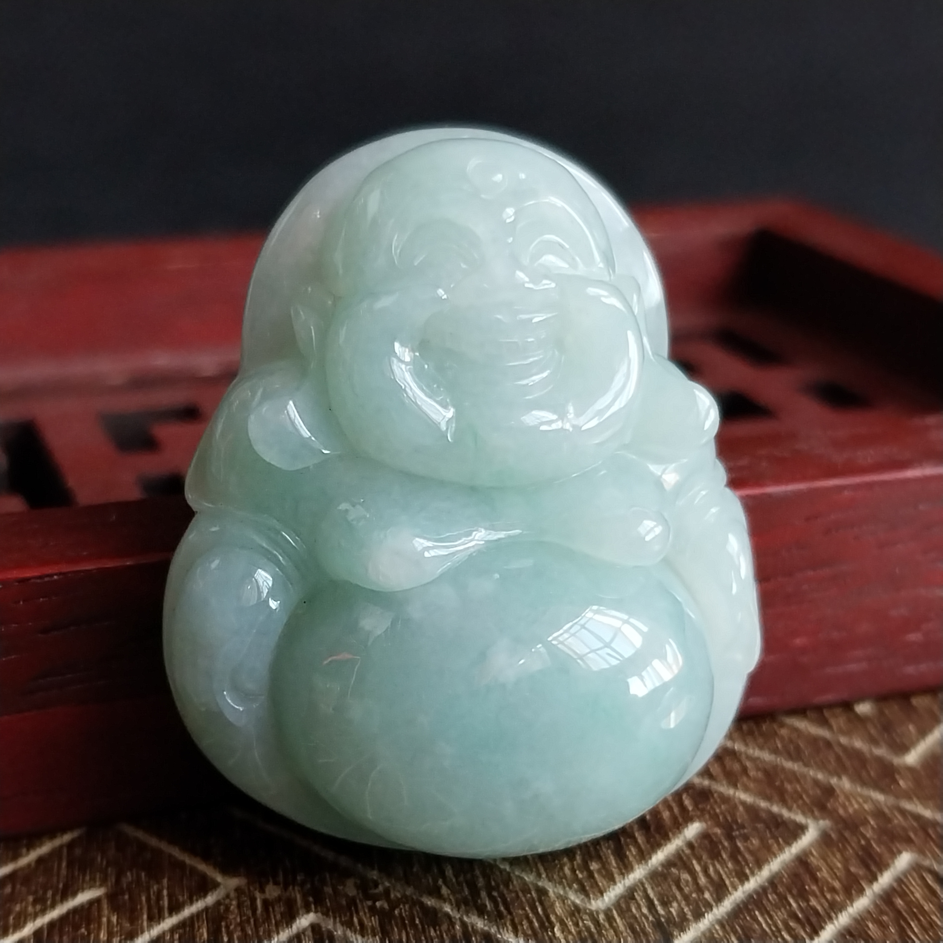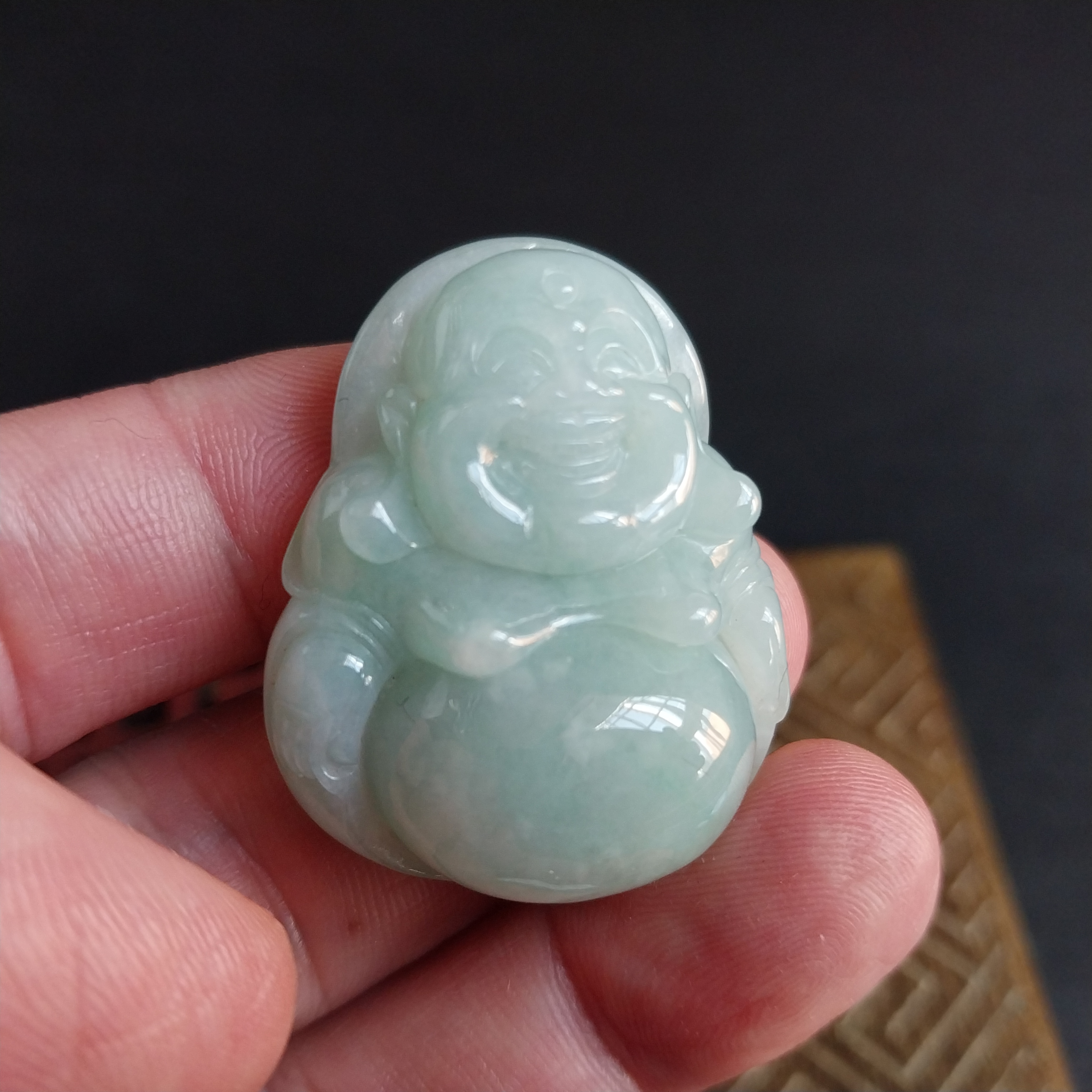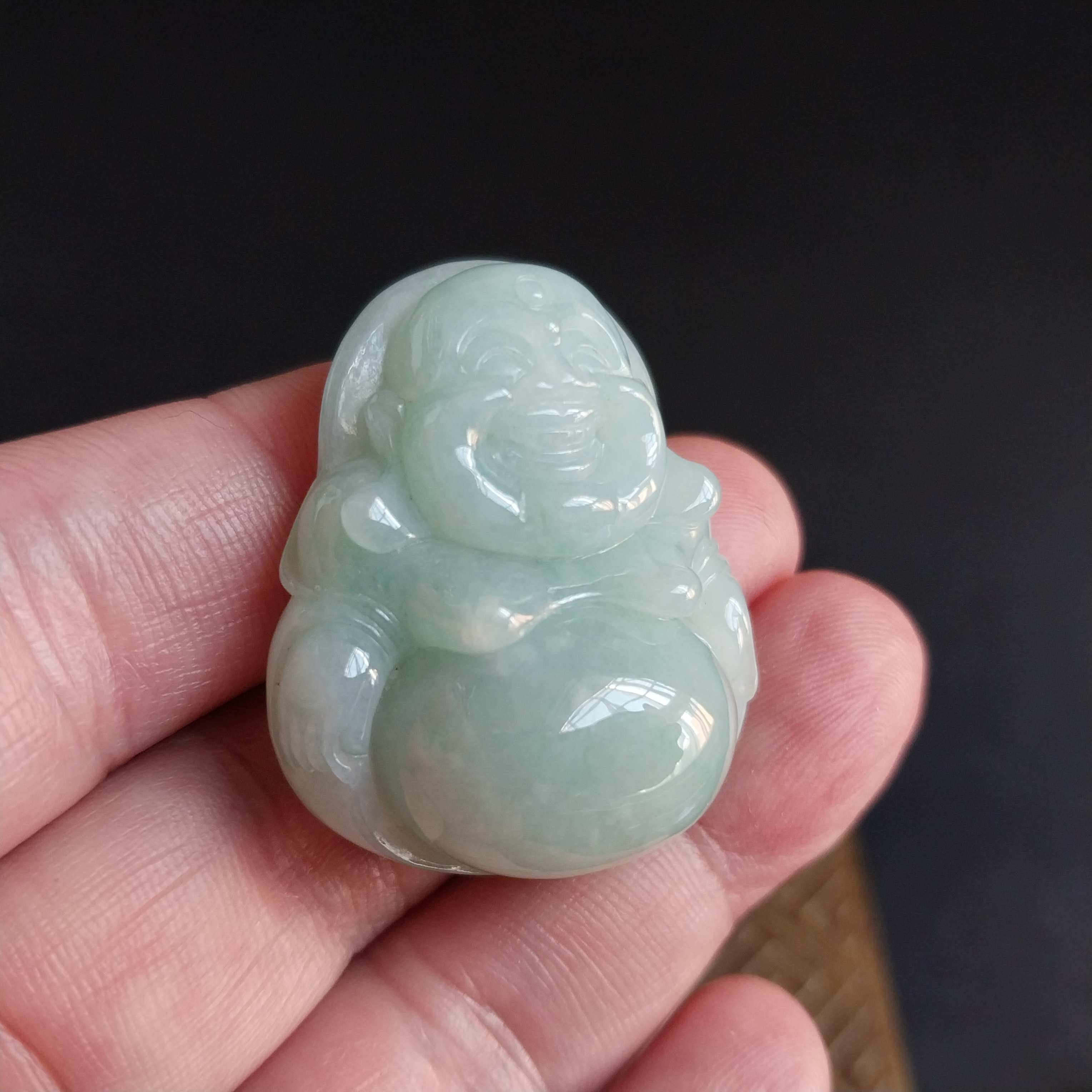 • 冰淺綠厚庄笑佛,天然翡翠A玉, 緬甸玉, Jade, Jadeite