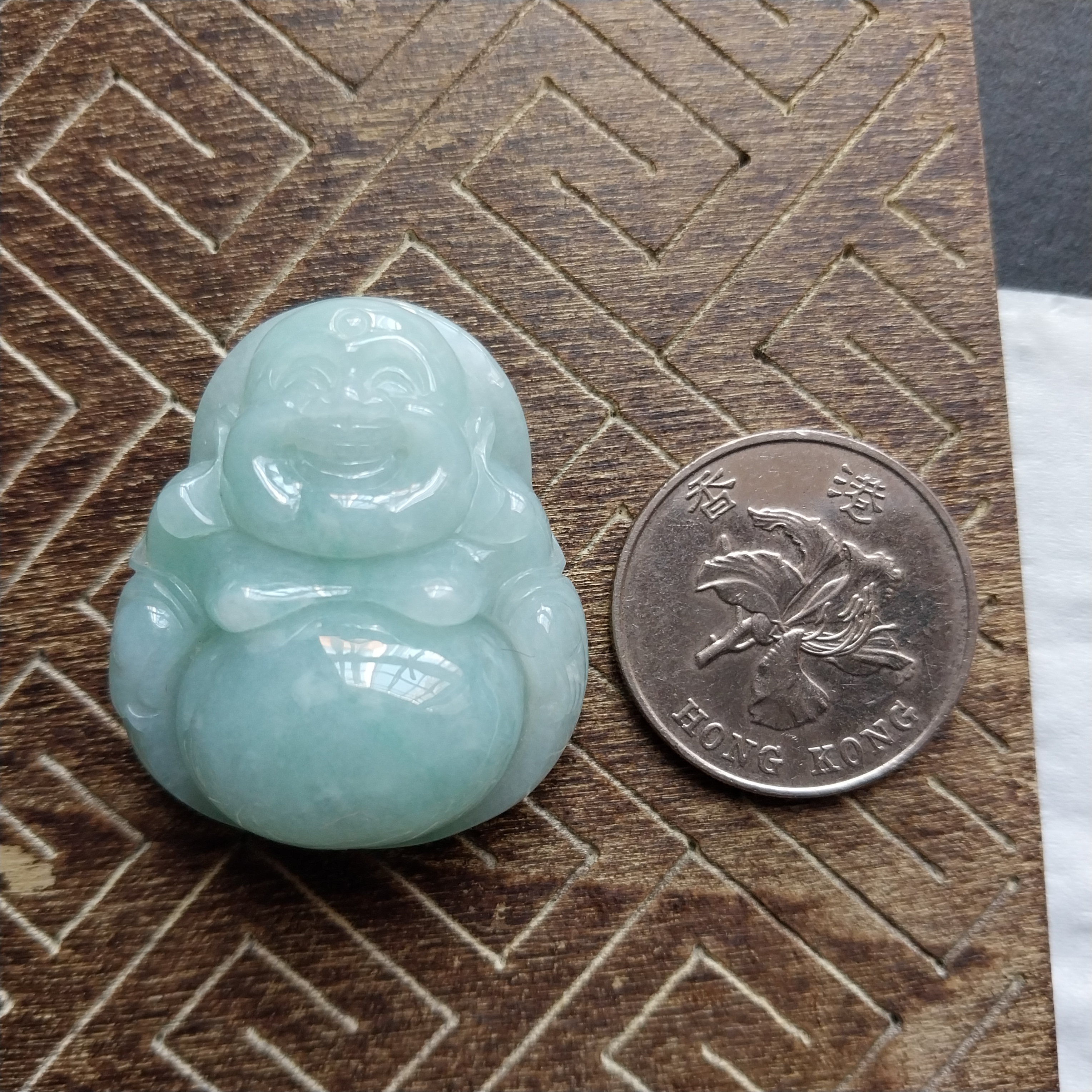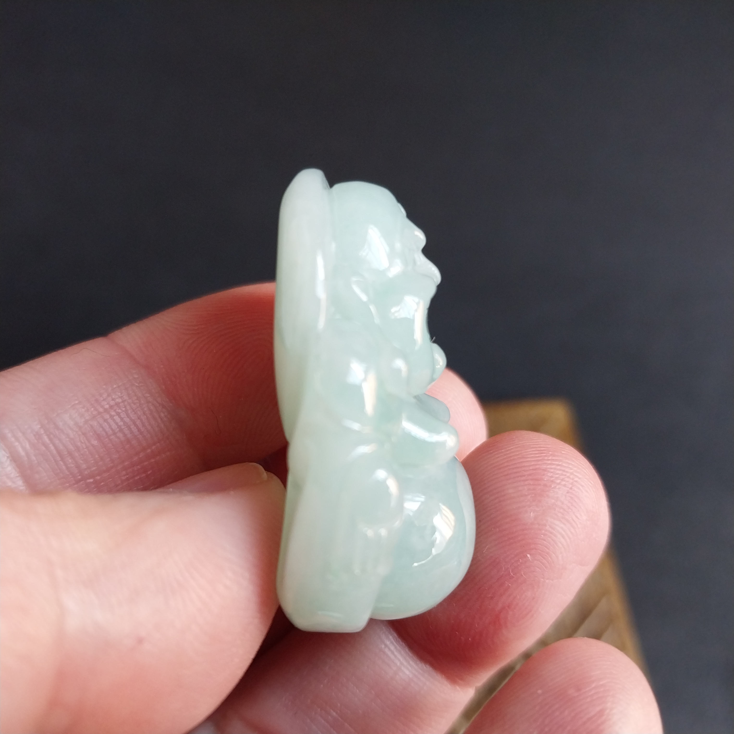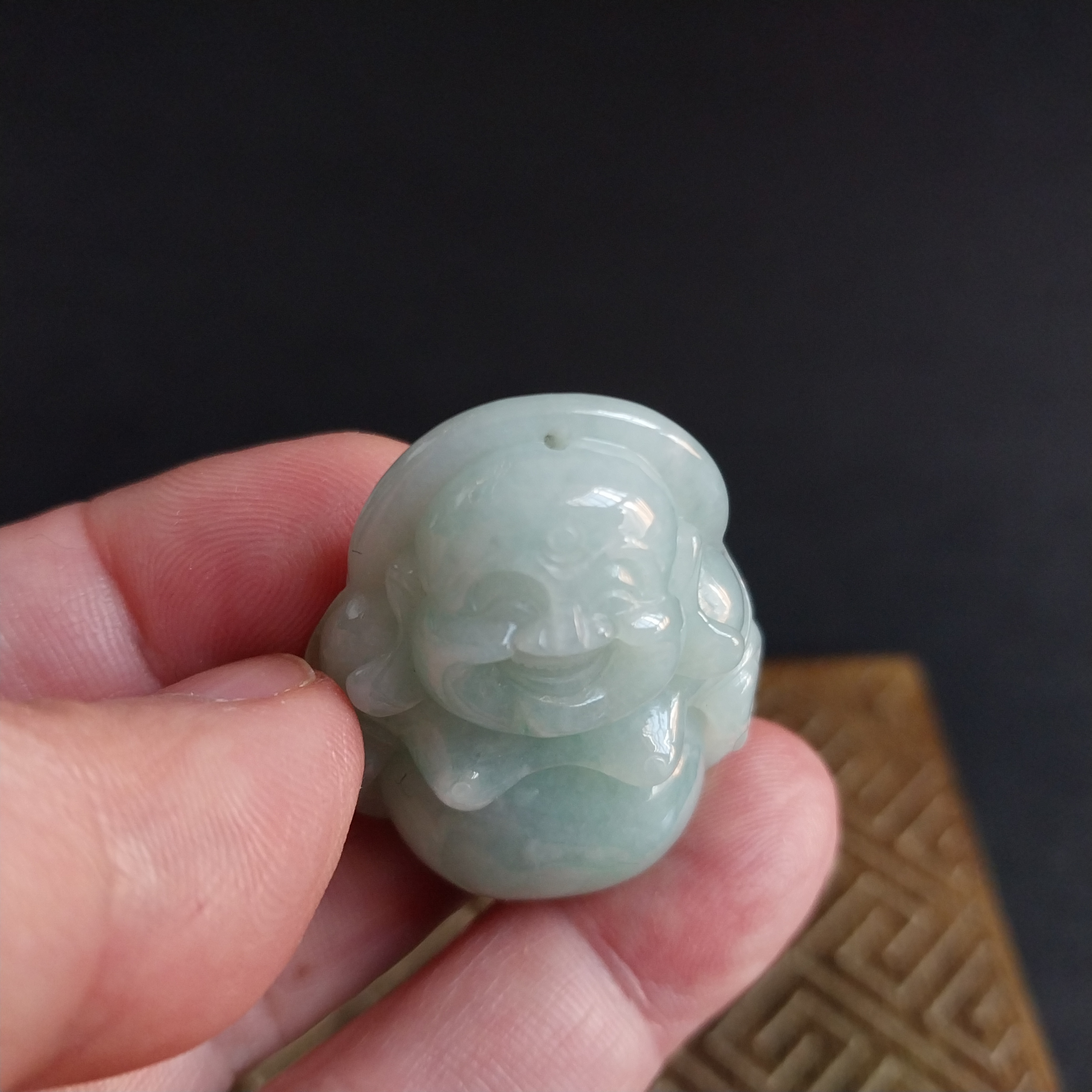 • 冰淺綠厚庄笑佛,天然翡翠A玉, 緬甸玉, Jade, Jadeite