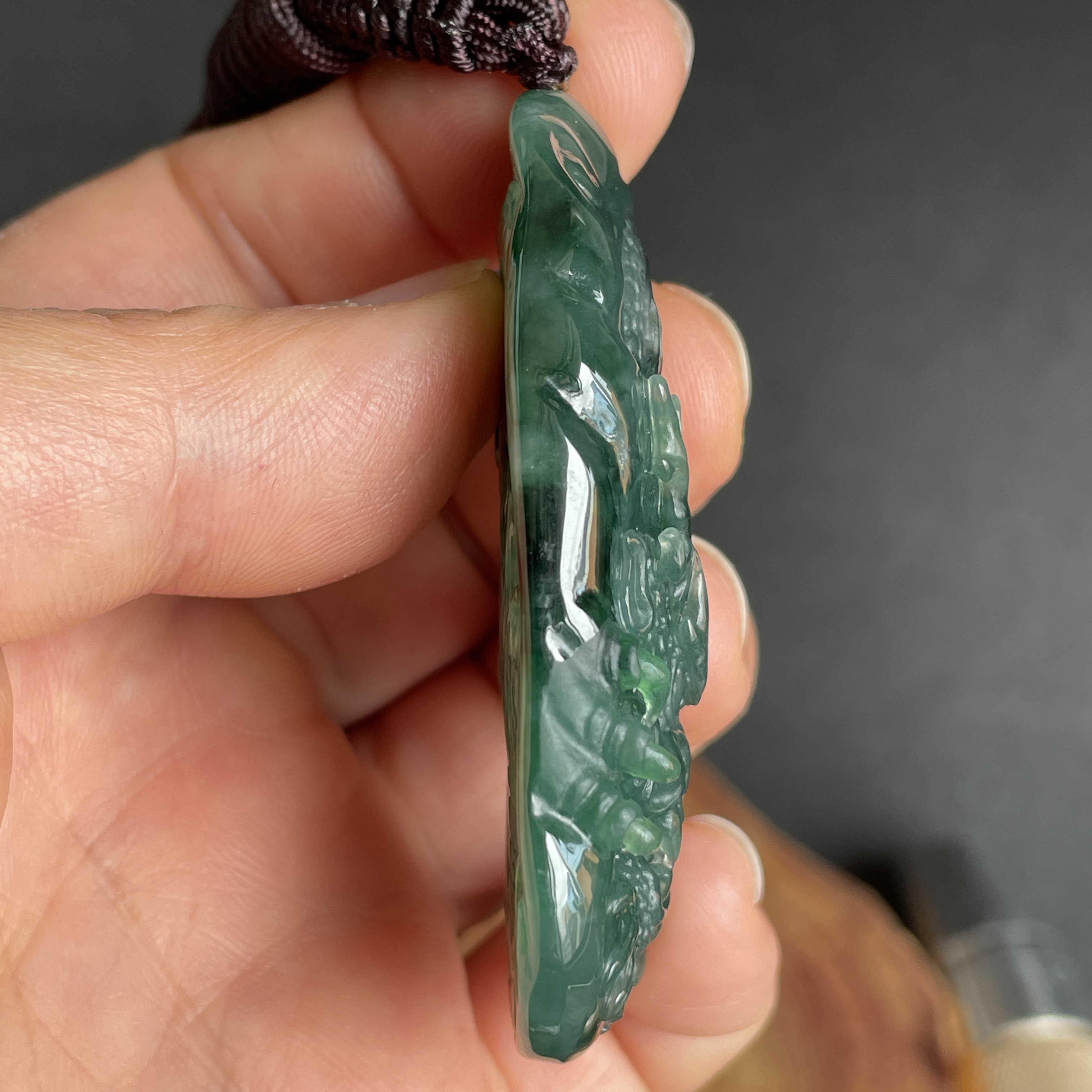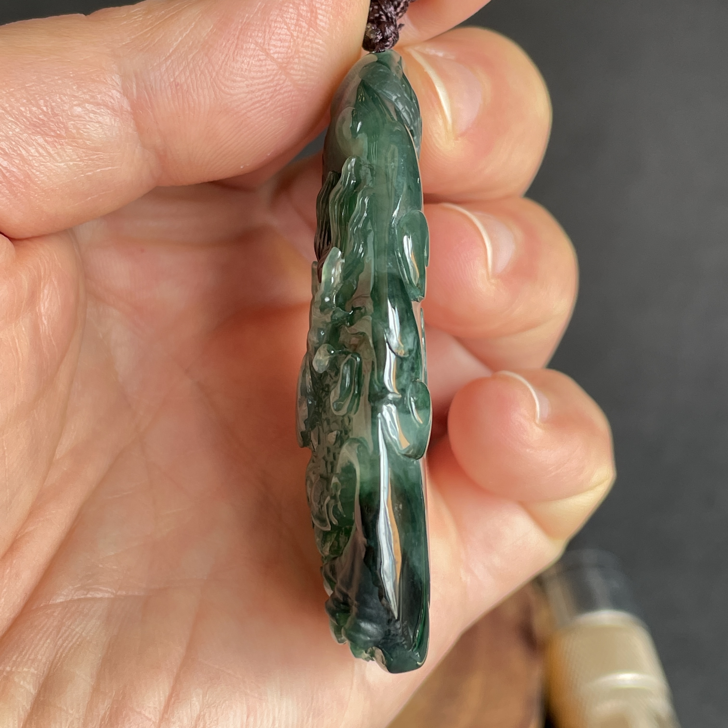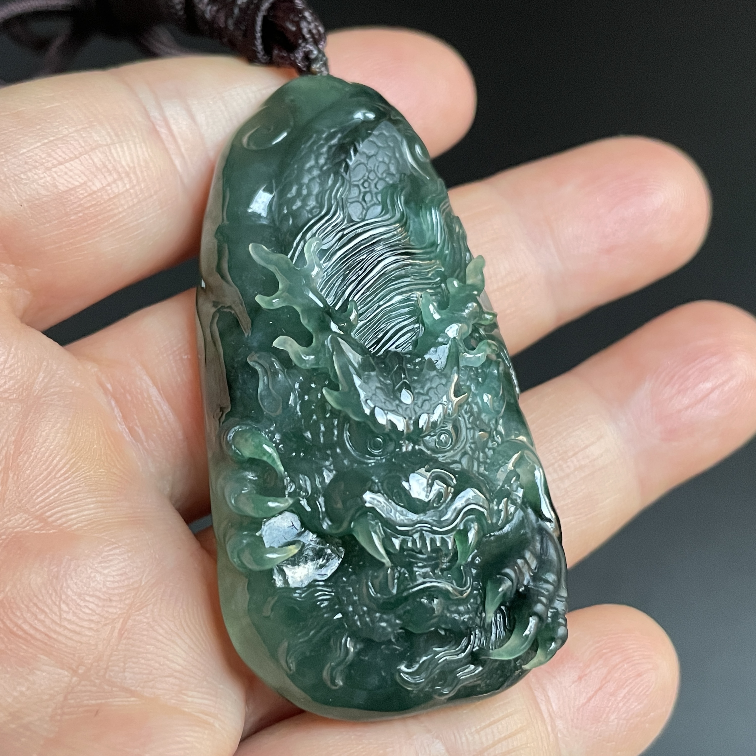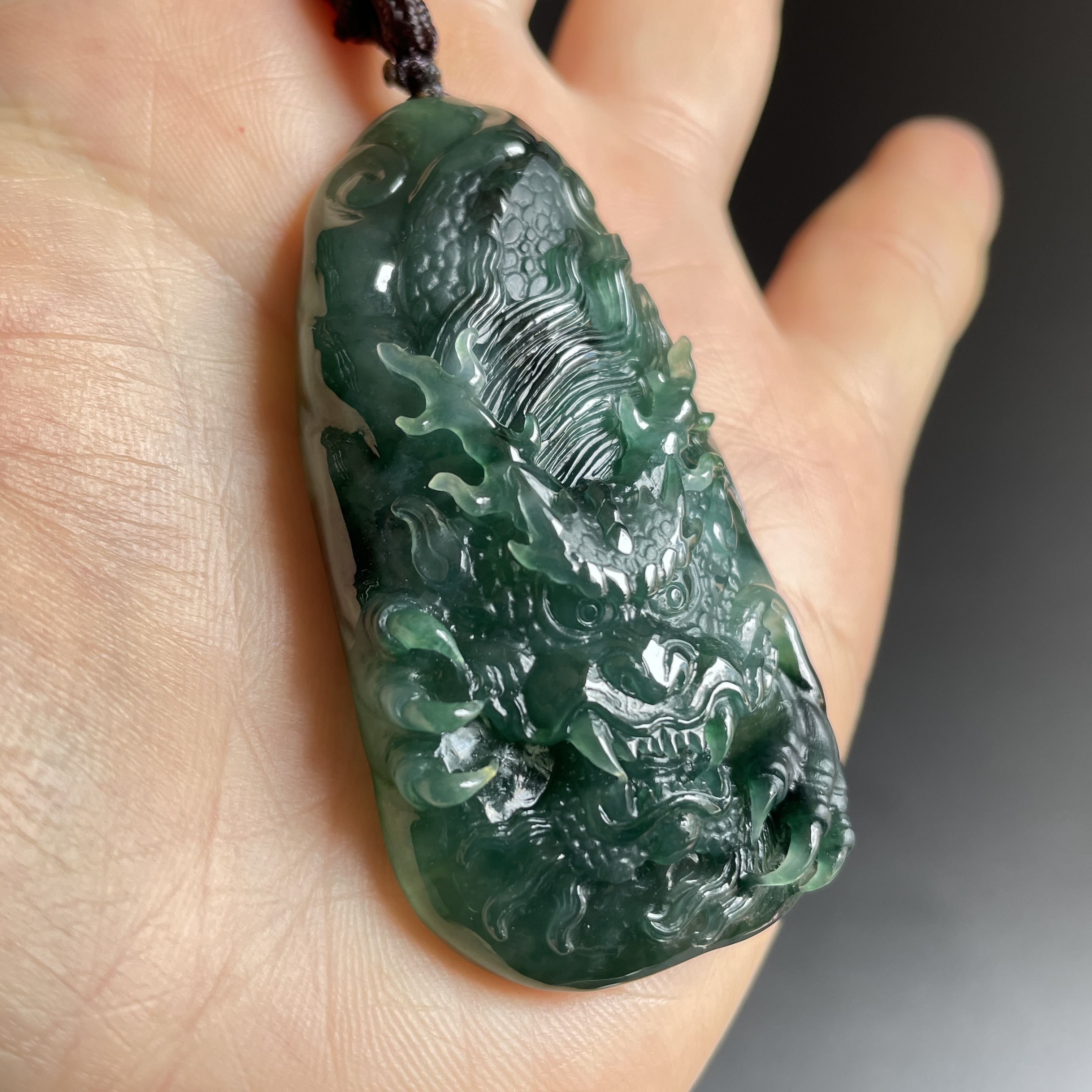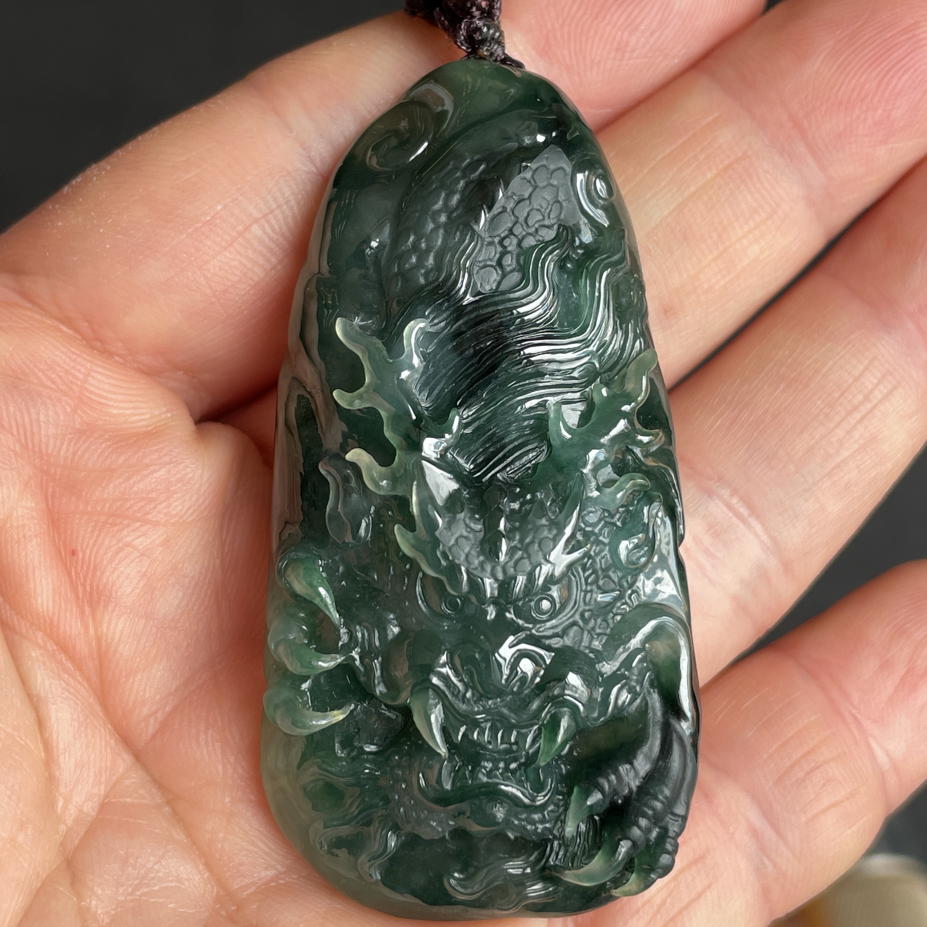 緬料莫西沙老藍水料,這料師傅收了多年,最近才拿來做貨。懂玉的老手都知道,莫西沙老藍水現在已不常見了,這種料拋光後起光起膠感。大師雕工,龍造型兇猛,完美。收藏價值高!