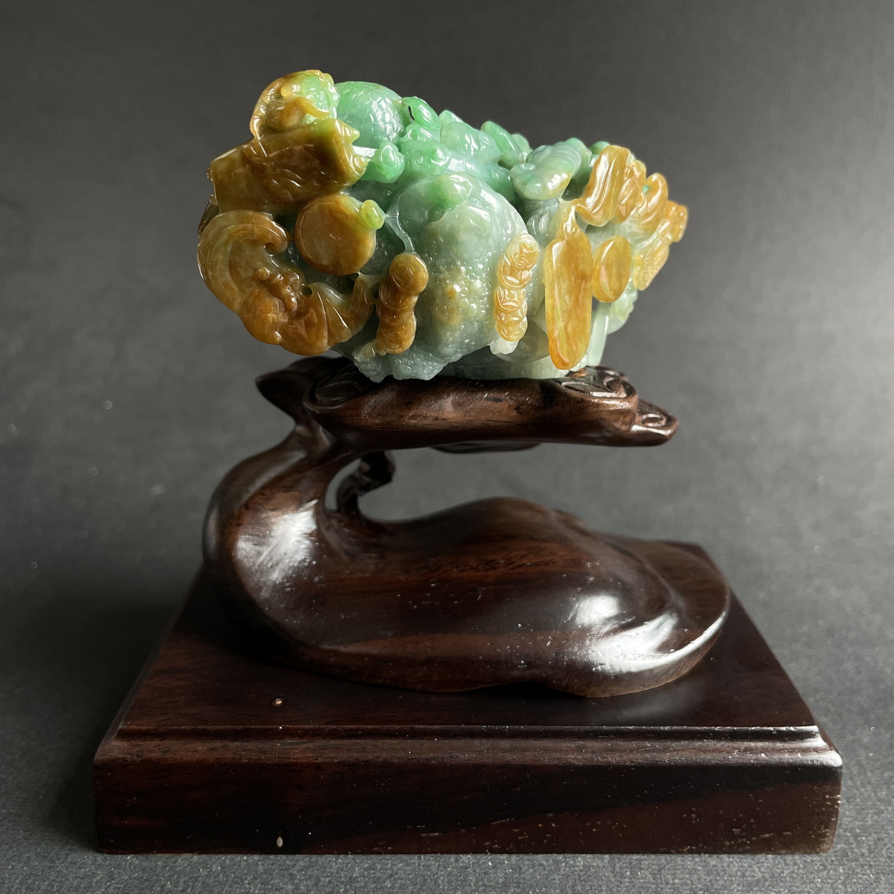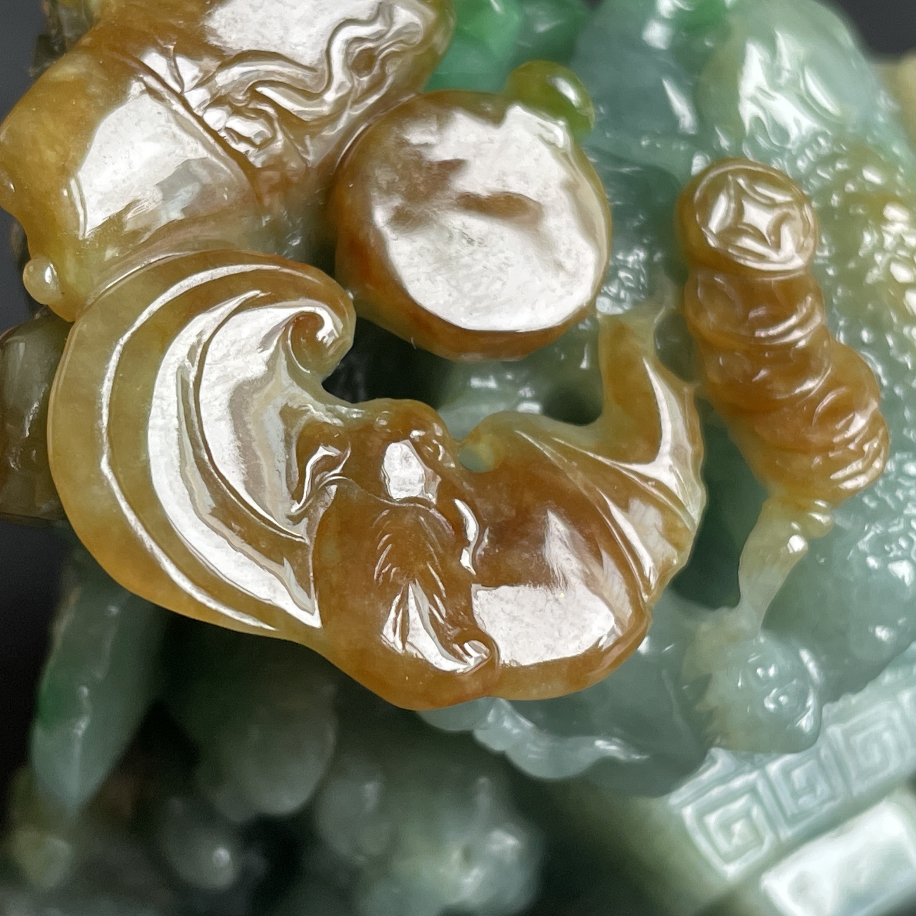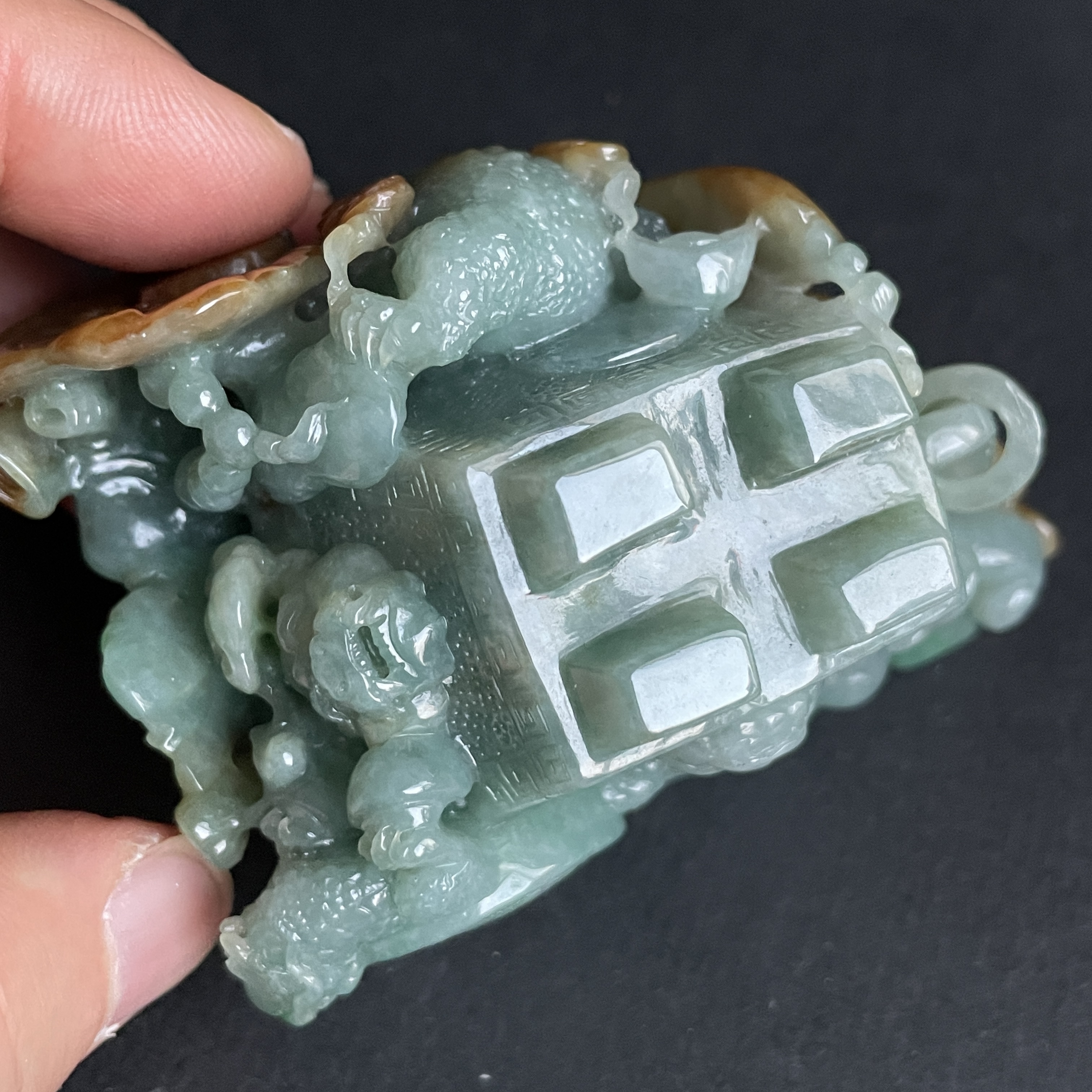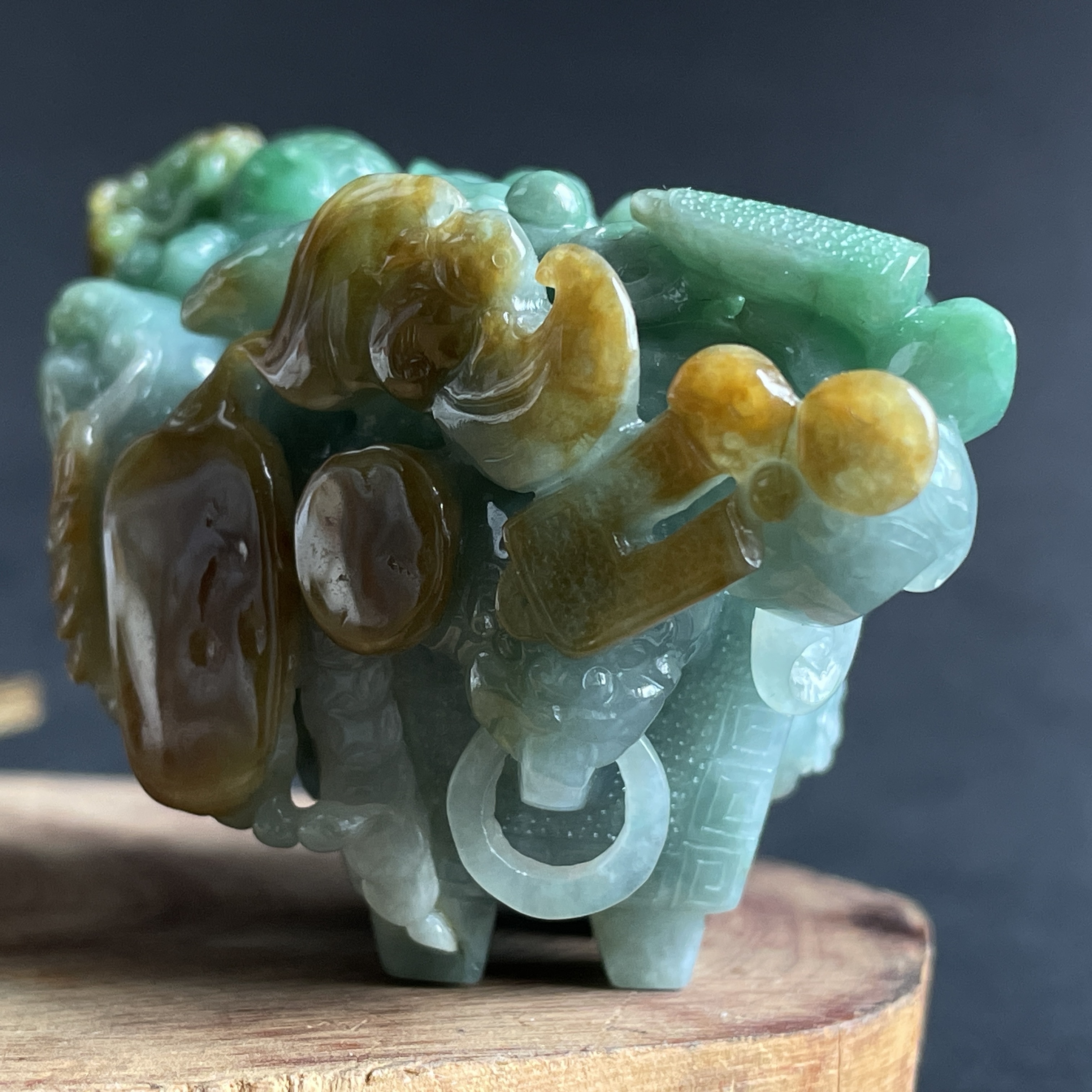 • 翡翠招財聚寶納福鼎小擺件,天然翡翠A玉, 緬甸玉, Jade, Jadeite