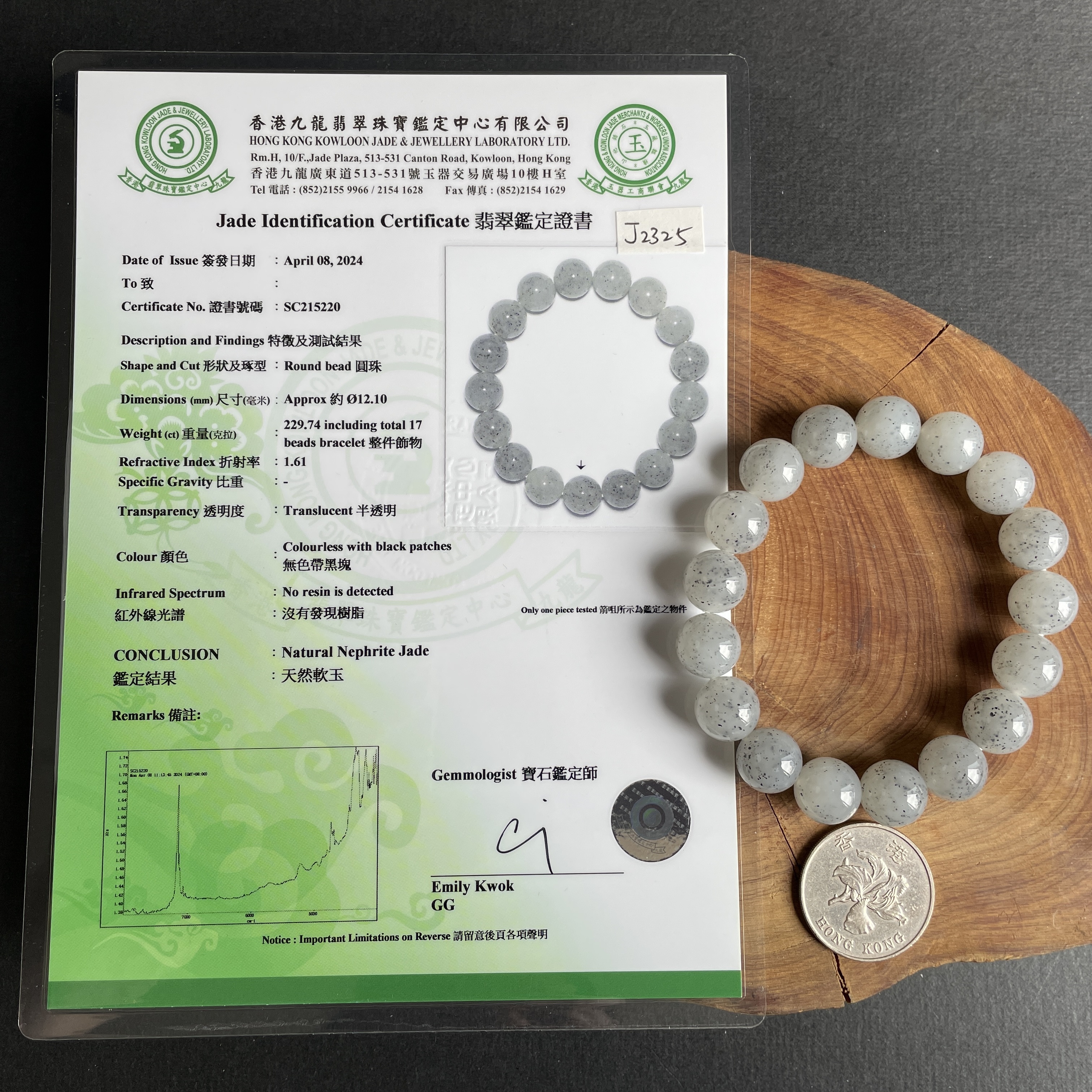 J2325 和田玉點墨青花手串 (12mm直徑)