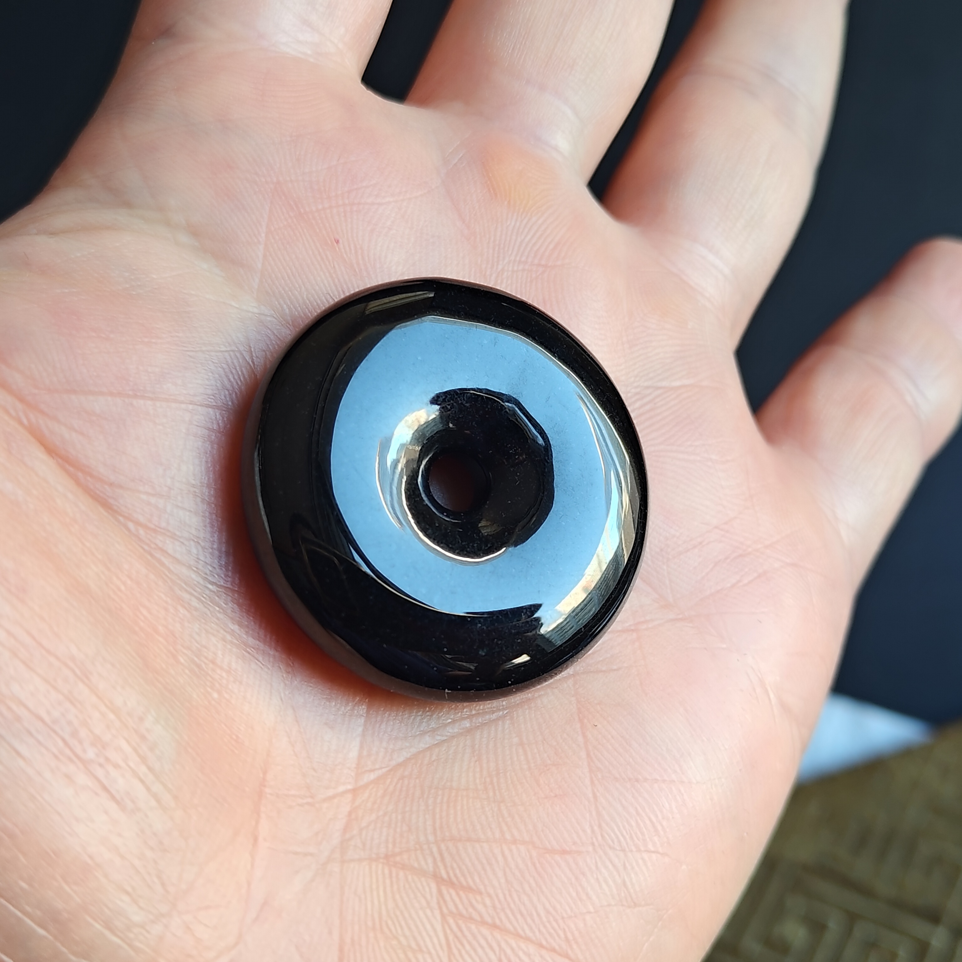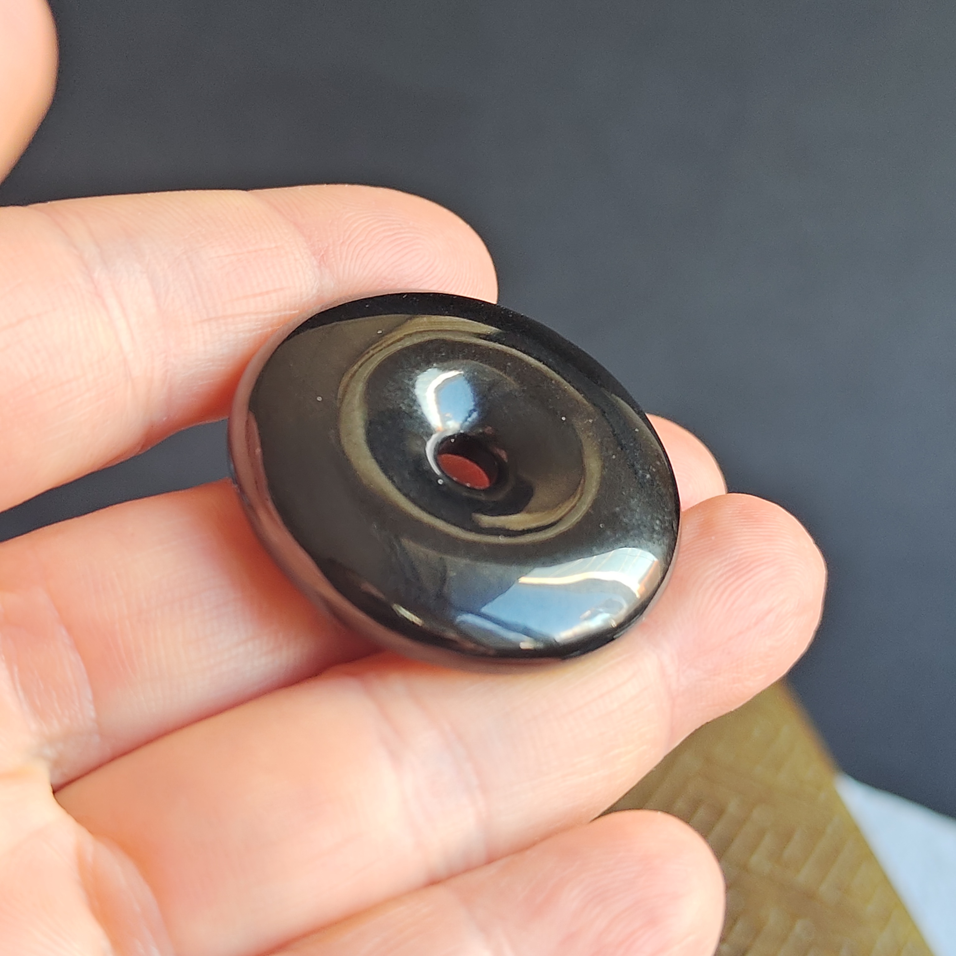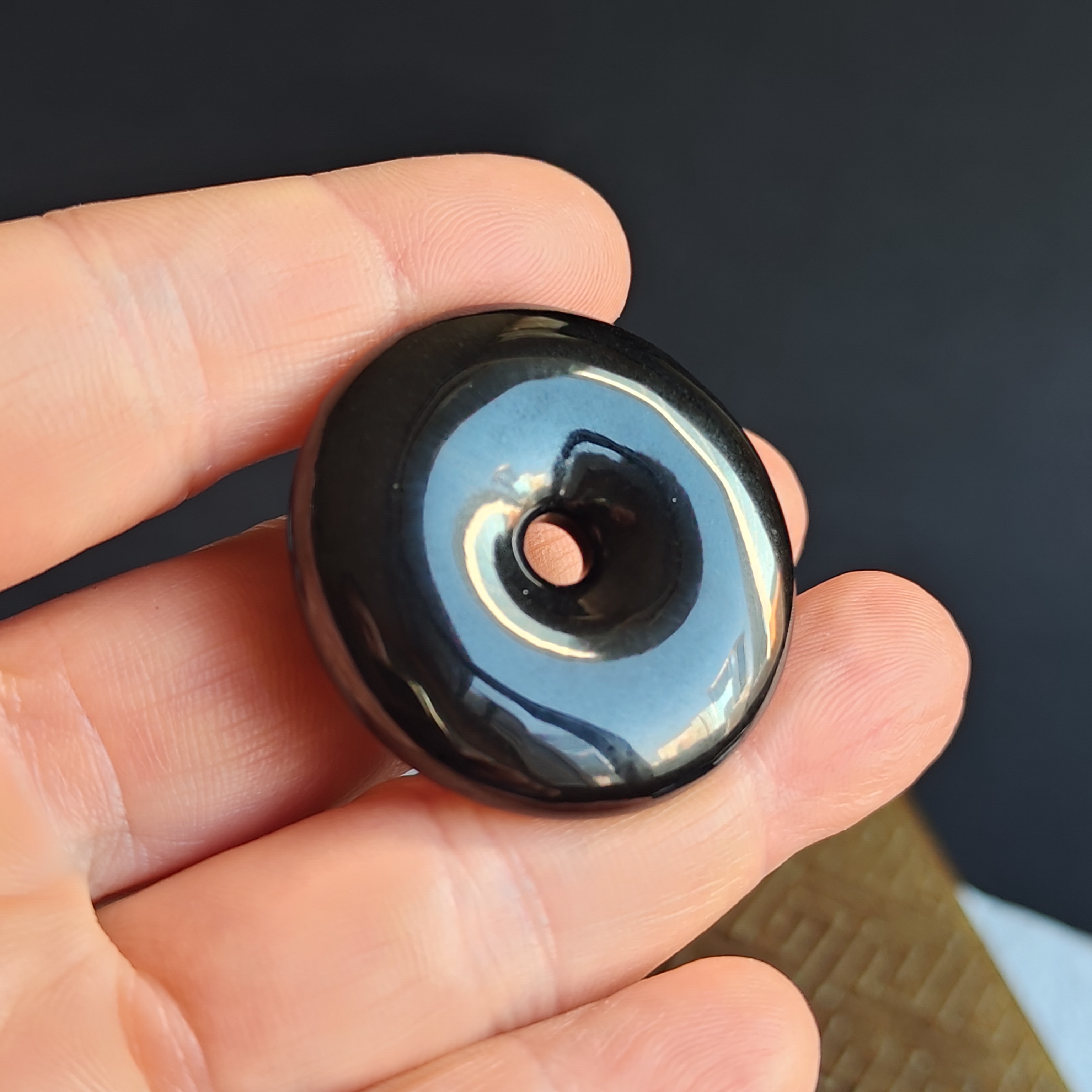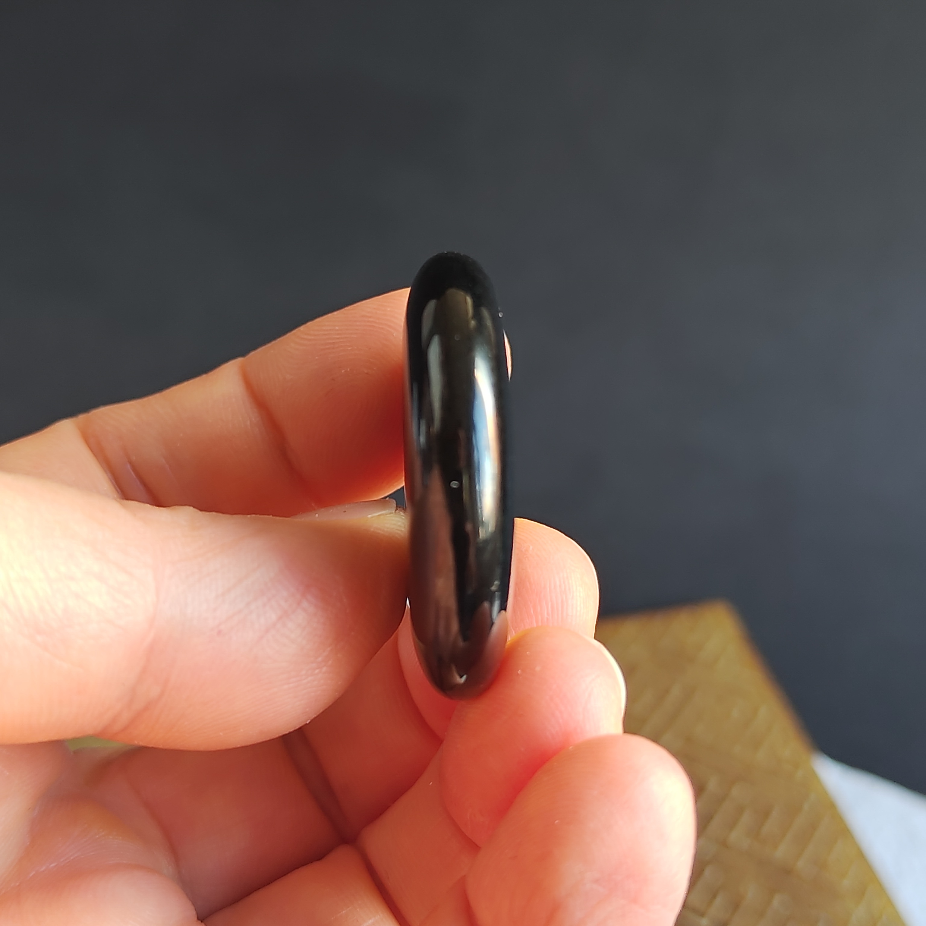 天然翡翠A玉,黑度夠,水潤,烏黑發亮,完美。