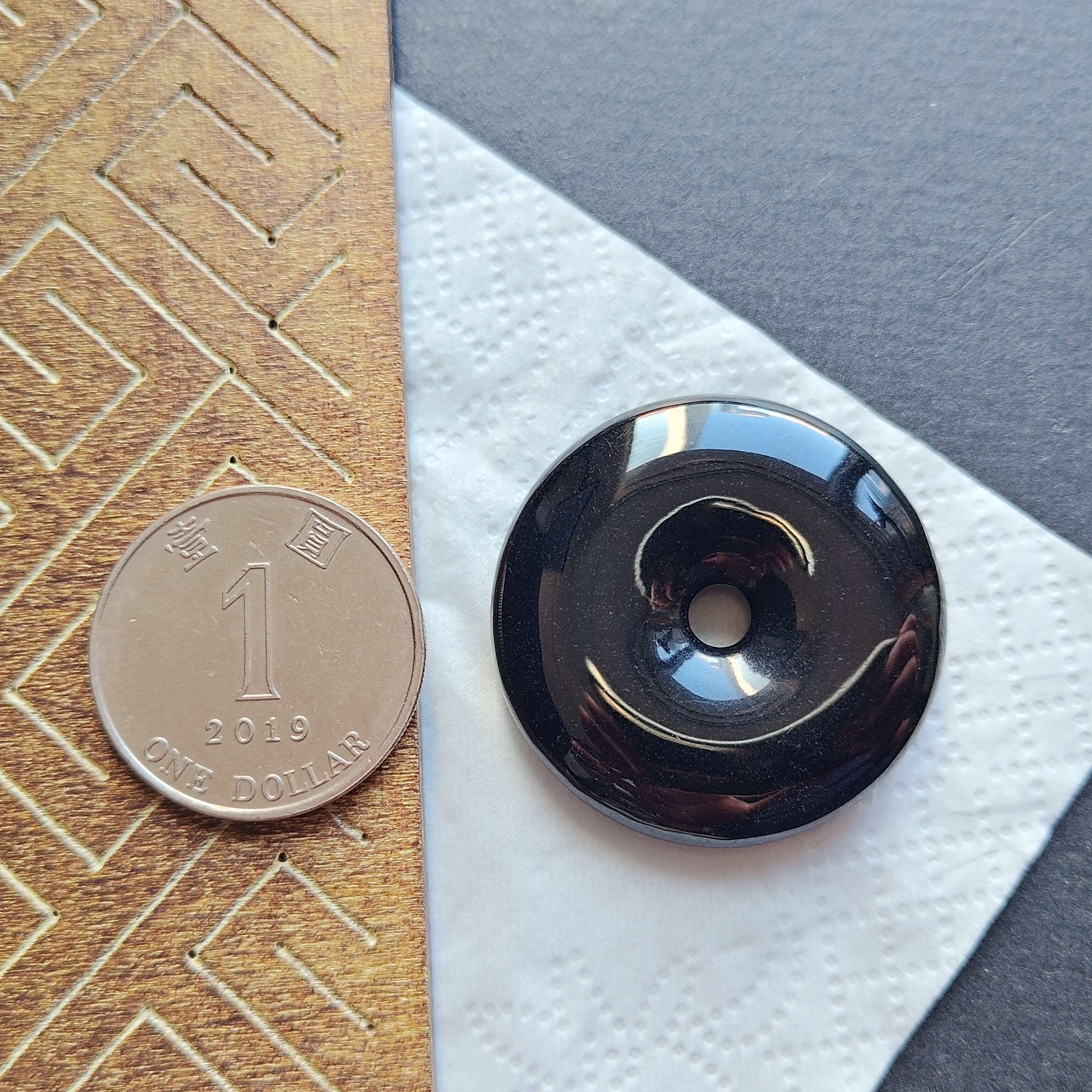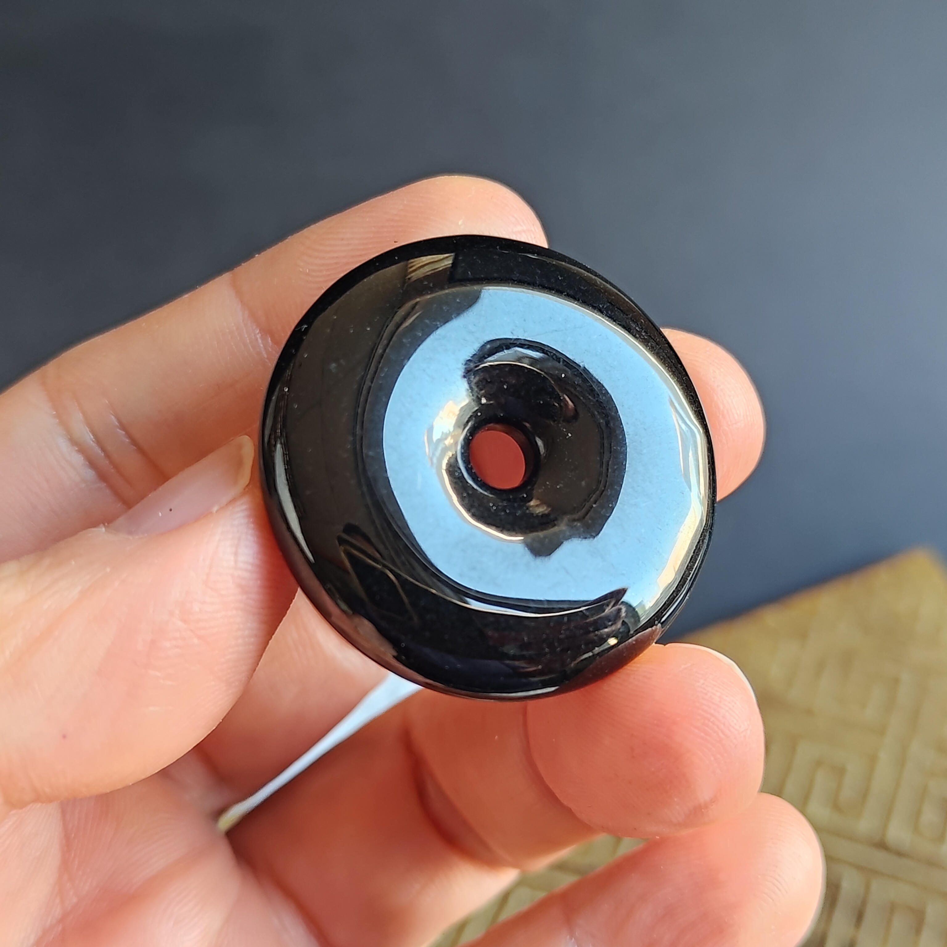 • 翡翠墨翠平安扣 (35.2mm直徑),天然翡翠A玉, 緬甸玉, Jade, Jadeite