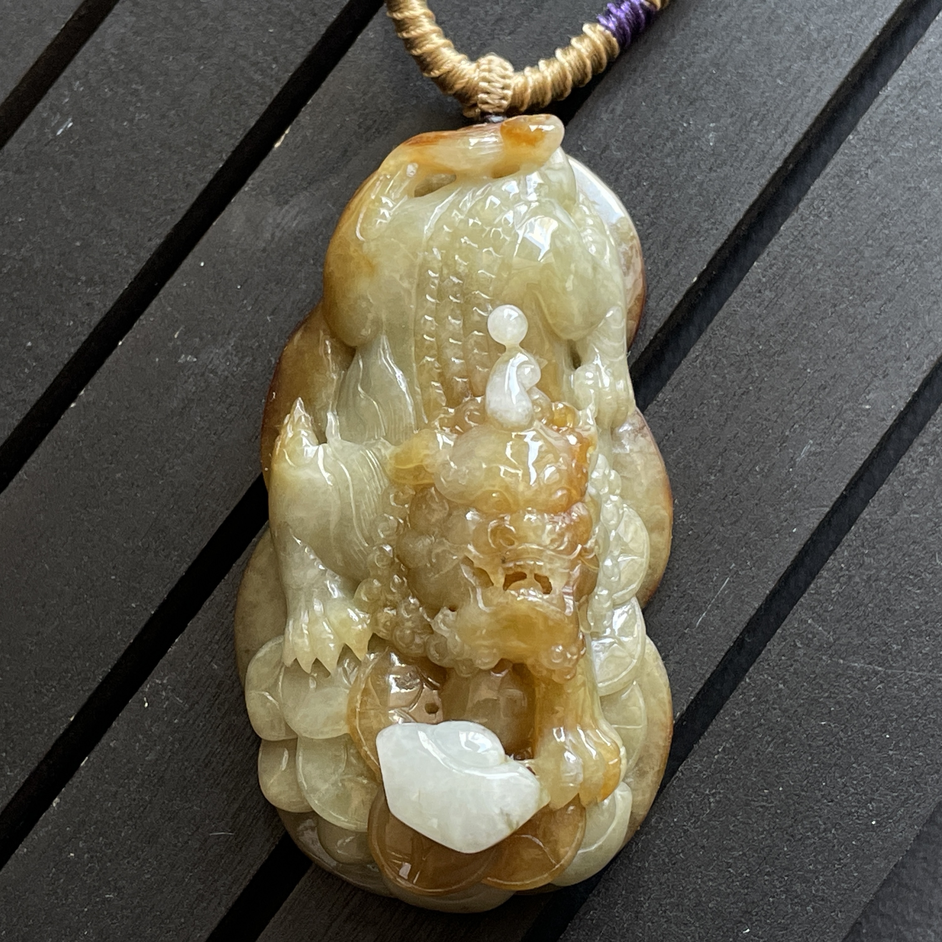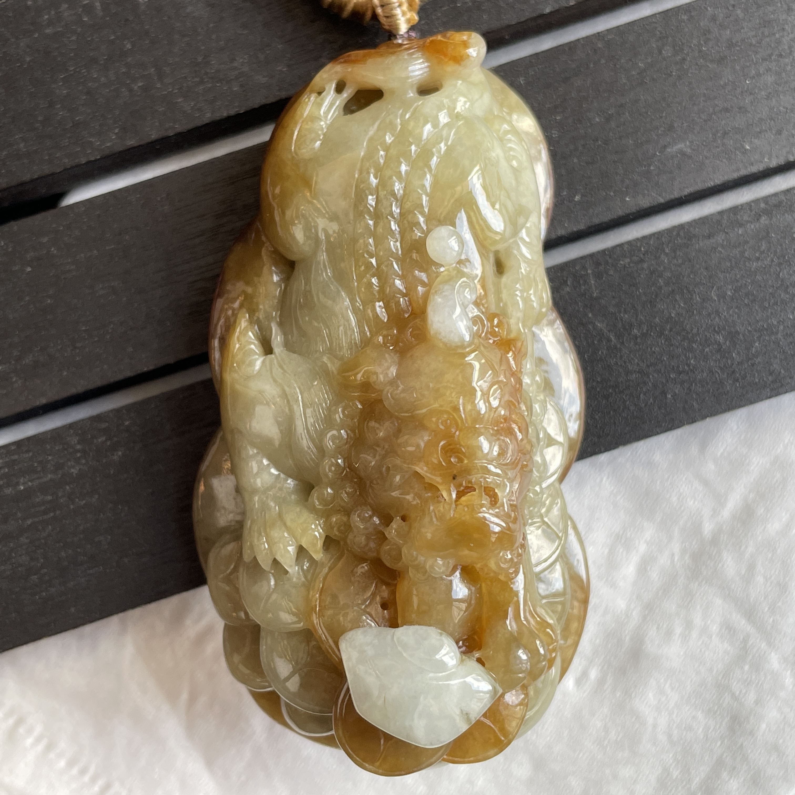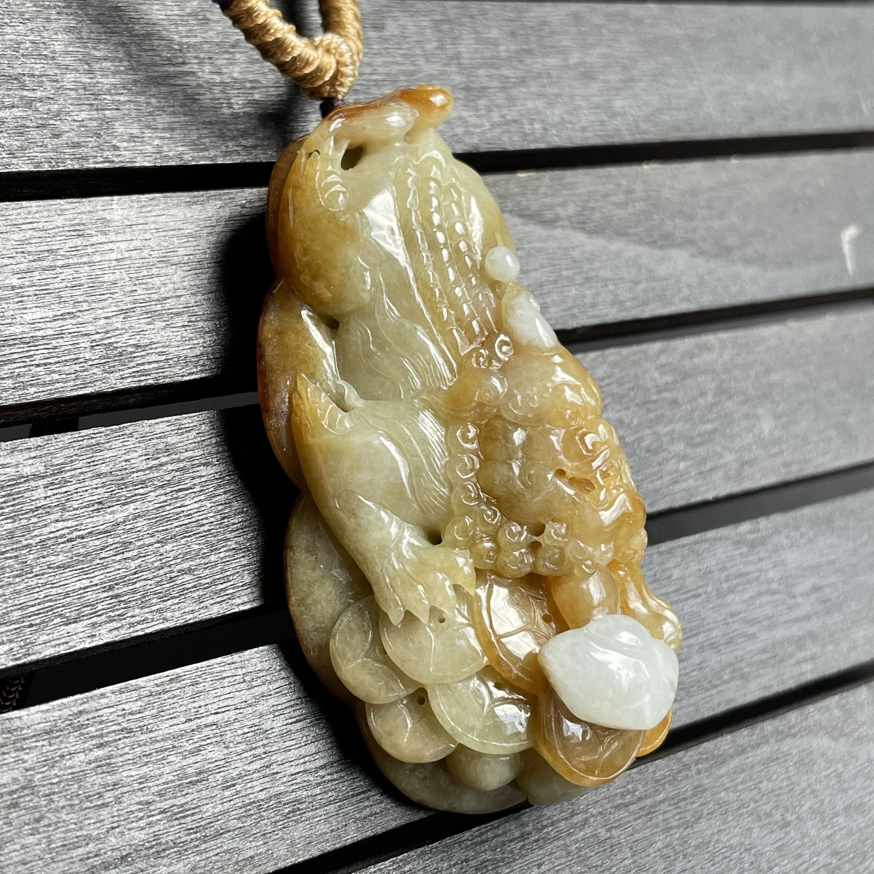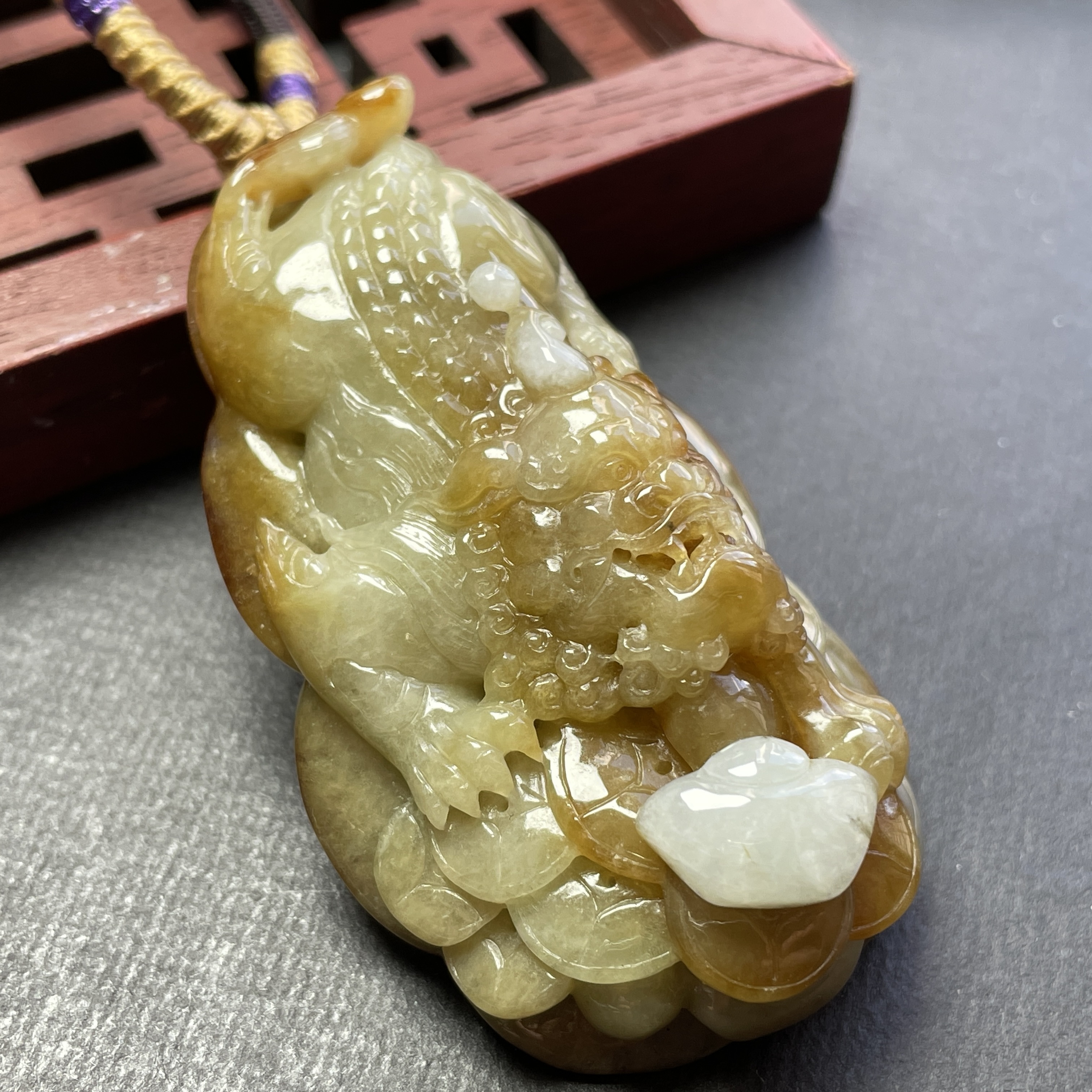 • 翡翠黃翡狻猊貔貅牌,天然翡翠A玉, 緬甸玉, Jade, Jadeite