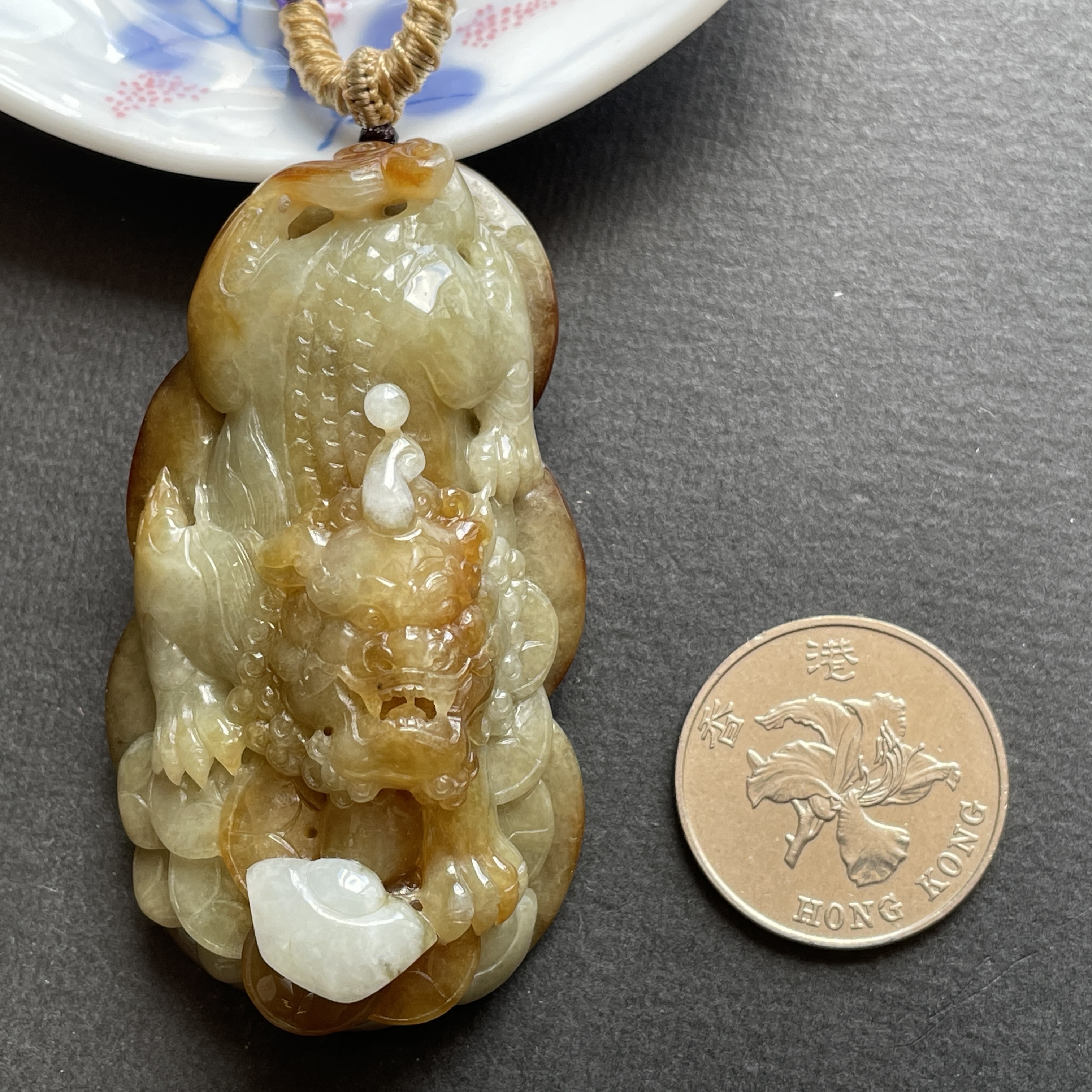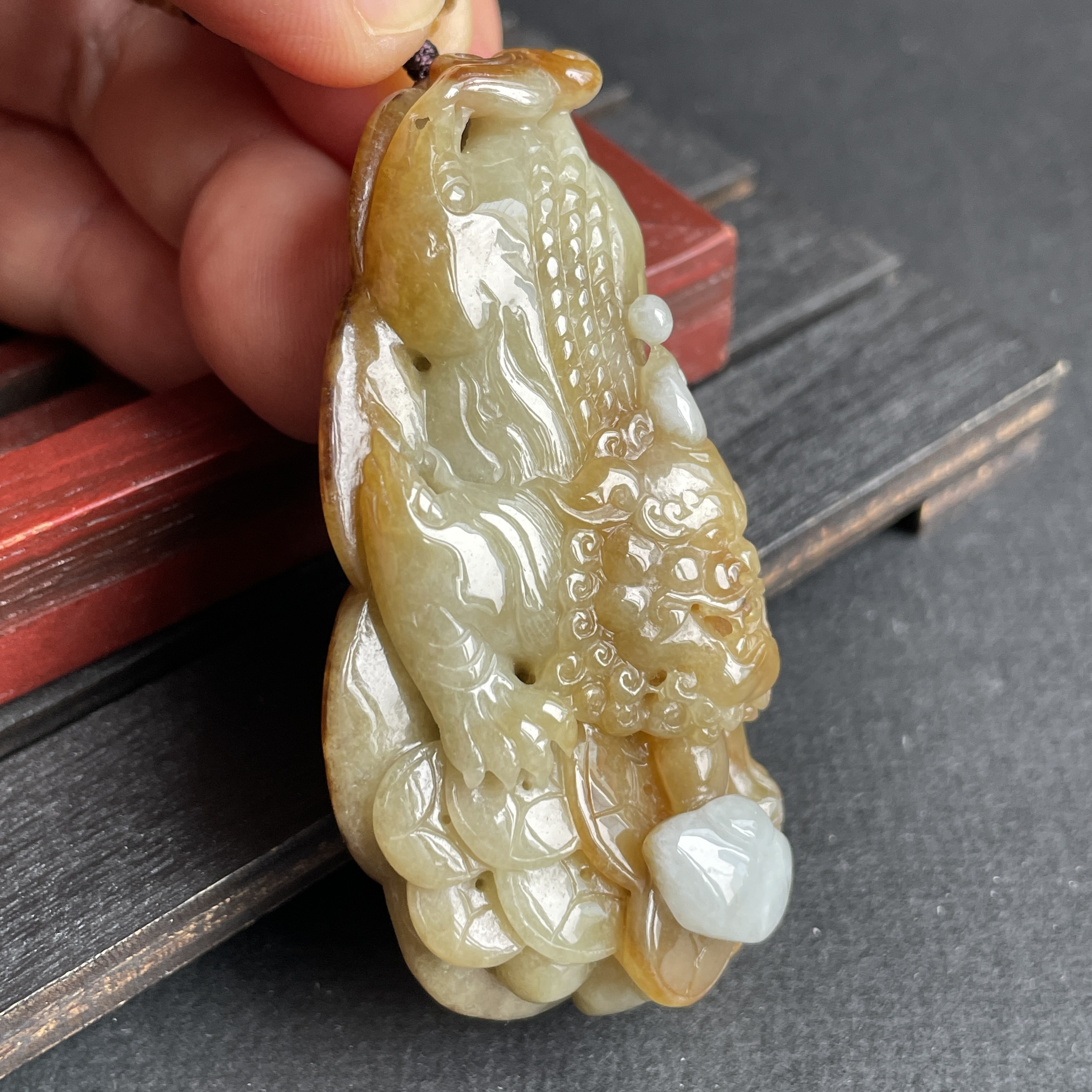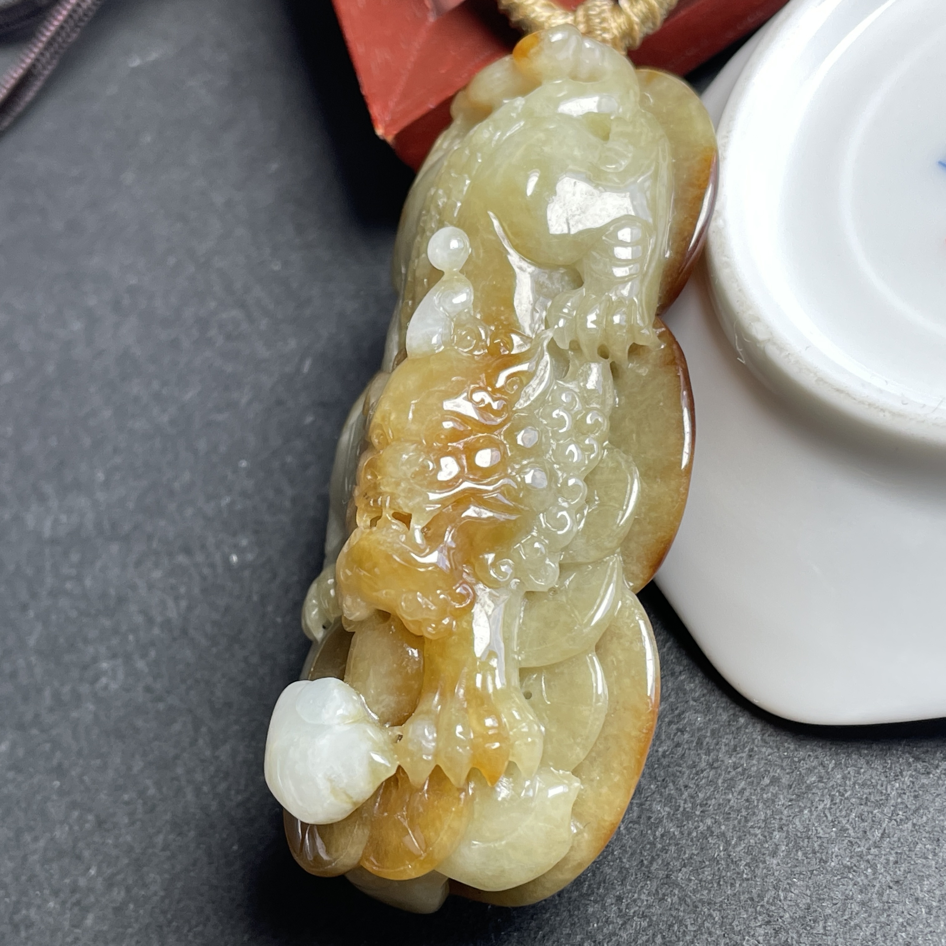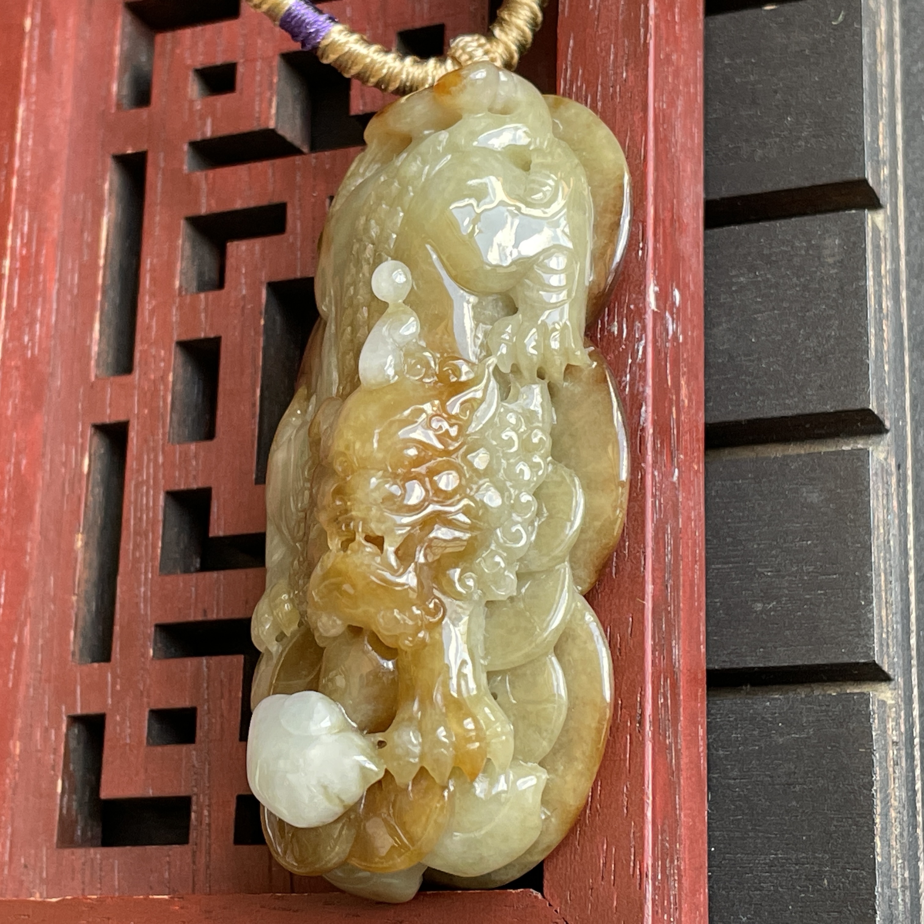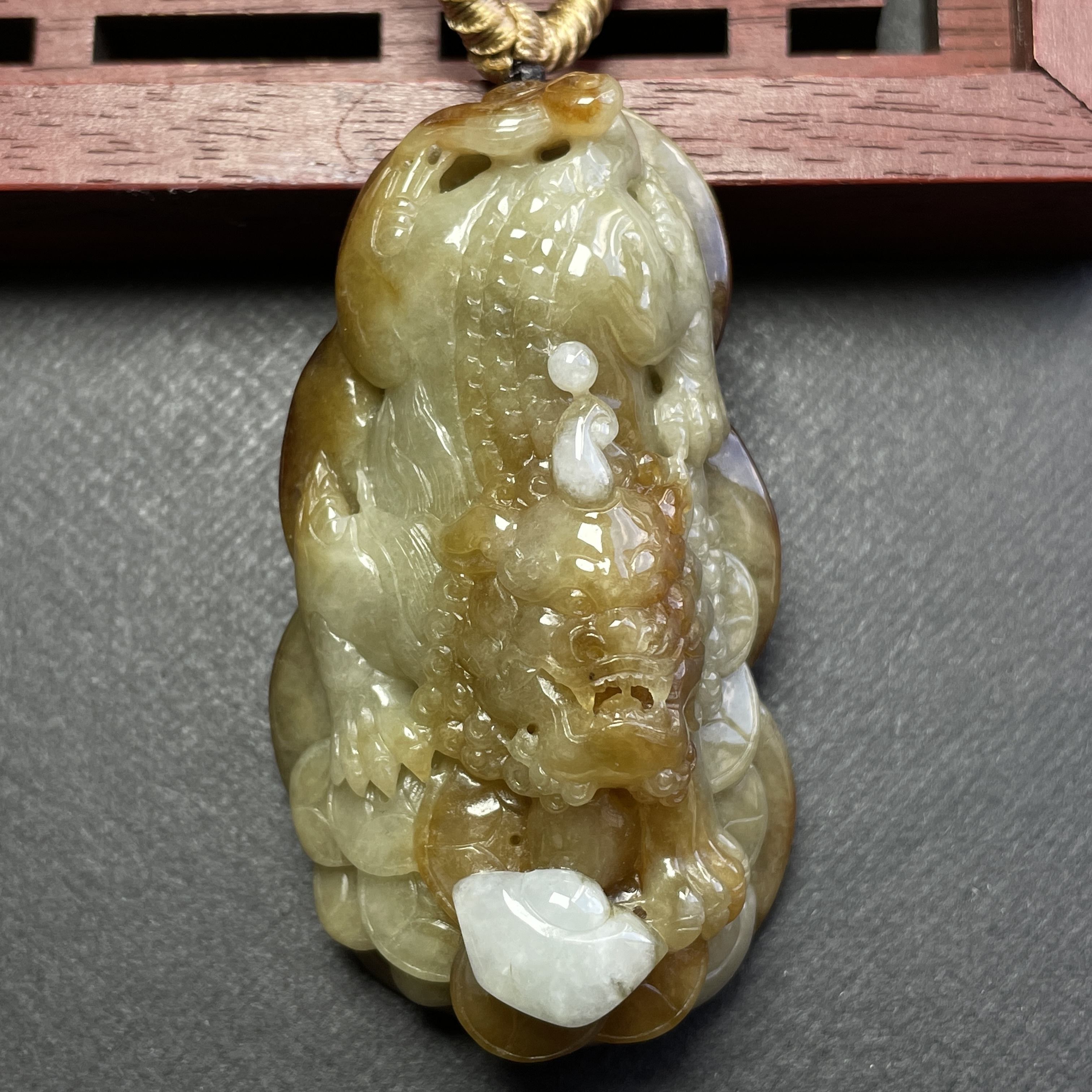 • 翡翠黃翡狻猊貔貅牌,天然翡翠A玉, 緬甸玉, Jade, Jadeite