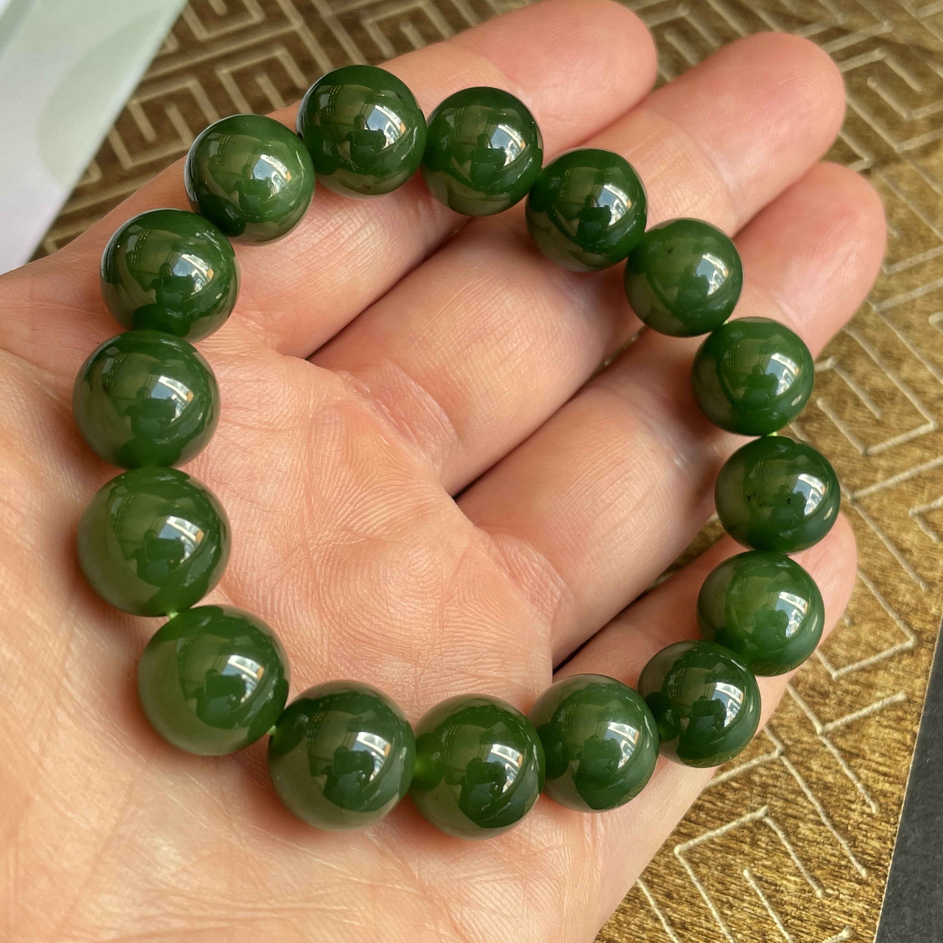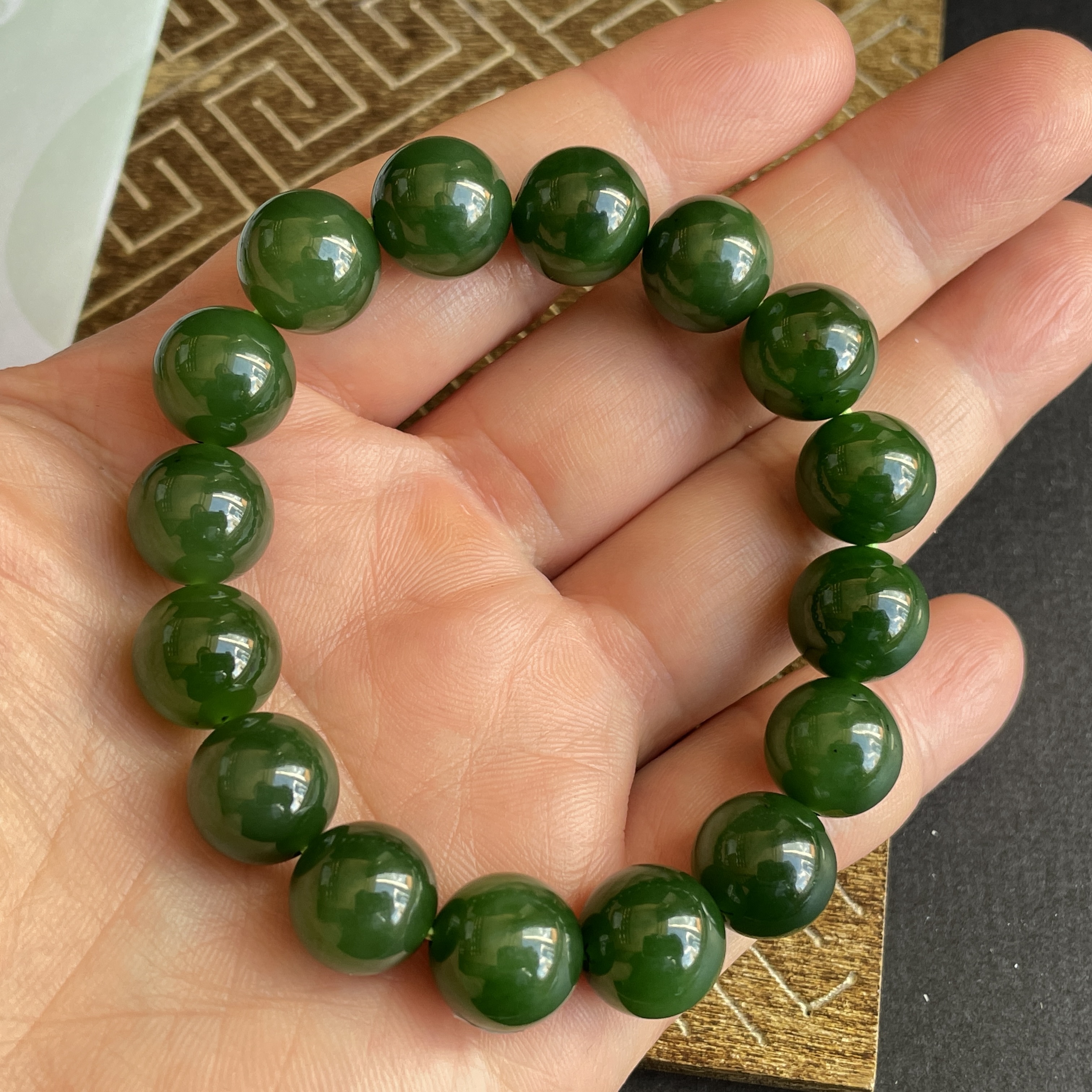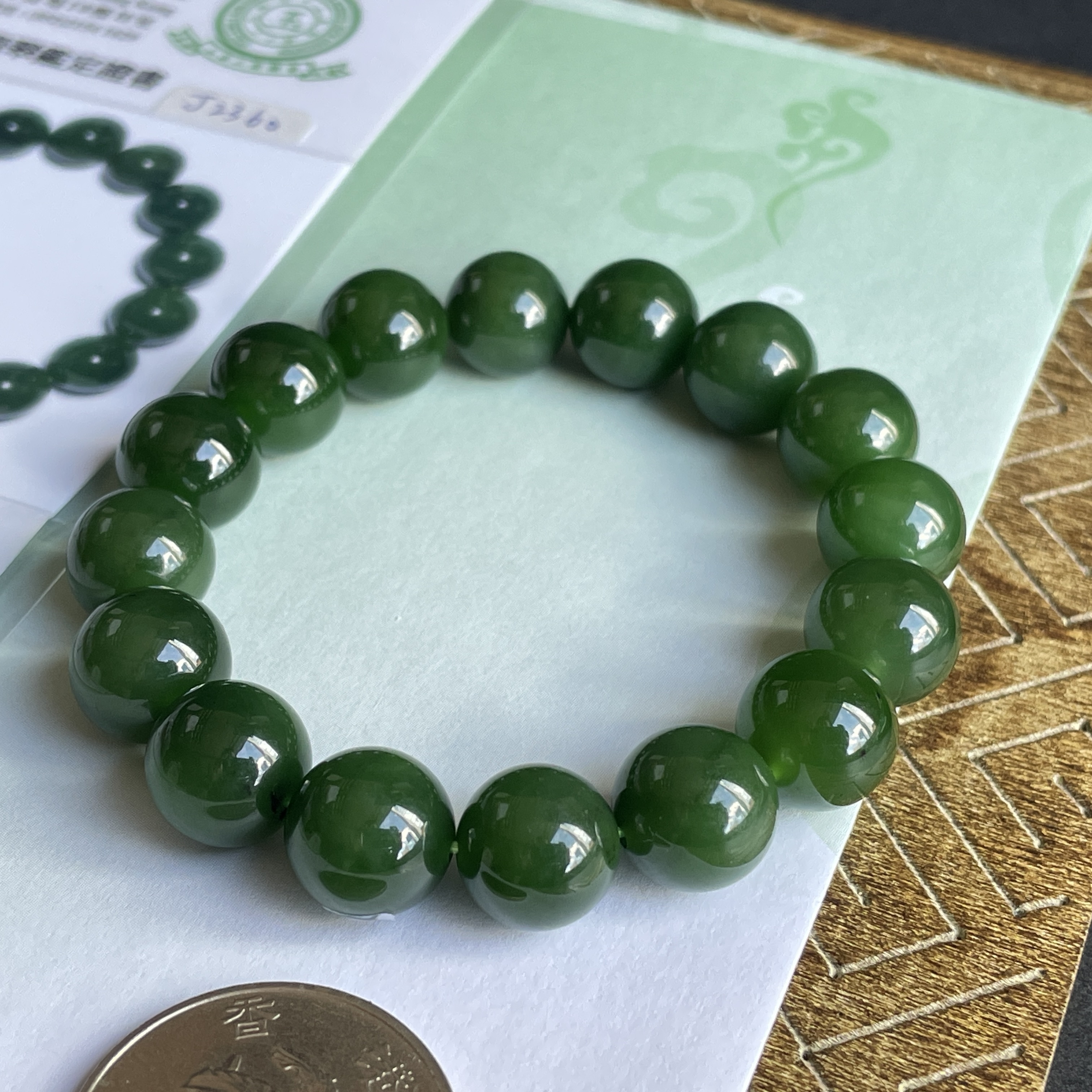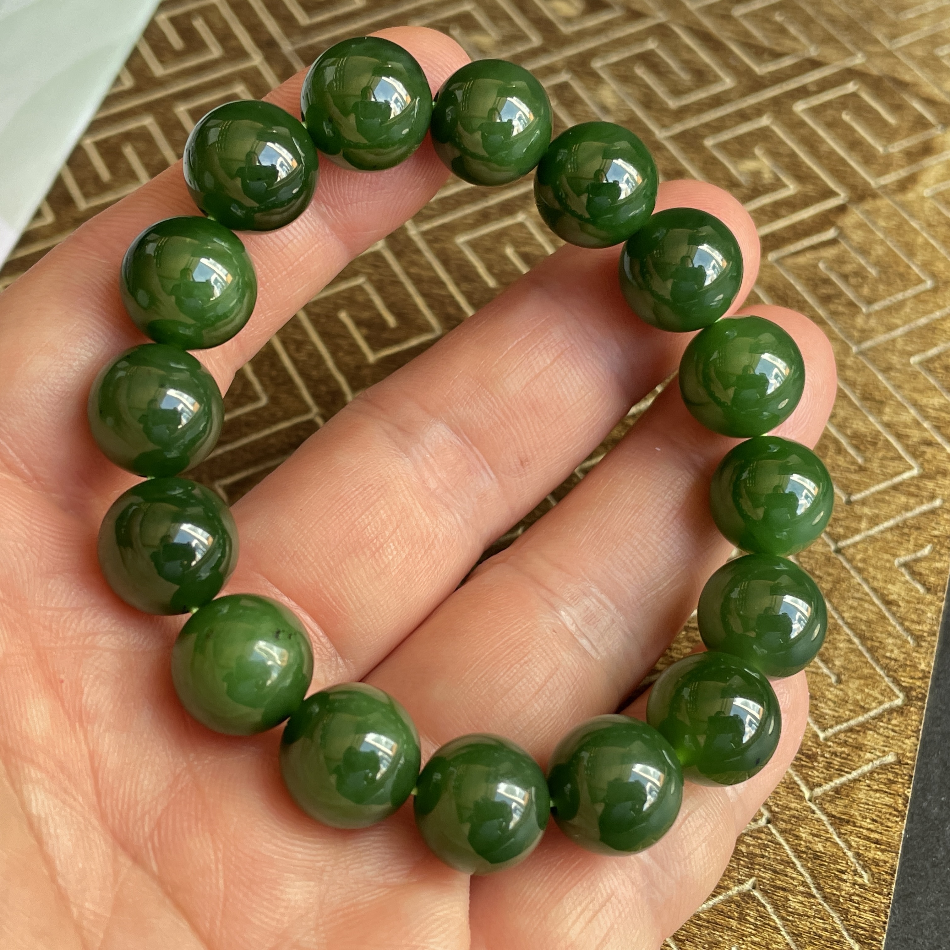 • 和田玉碧玉手串 (12mm直徑),天然和田玉軟玉