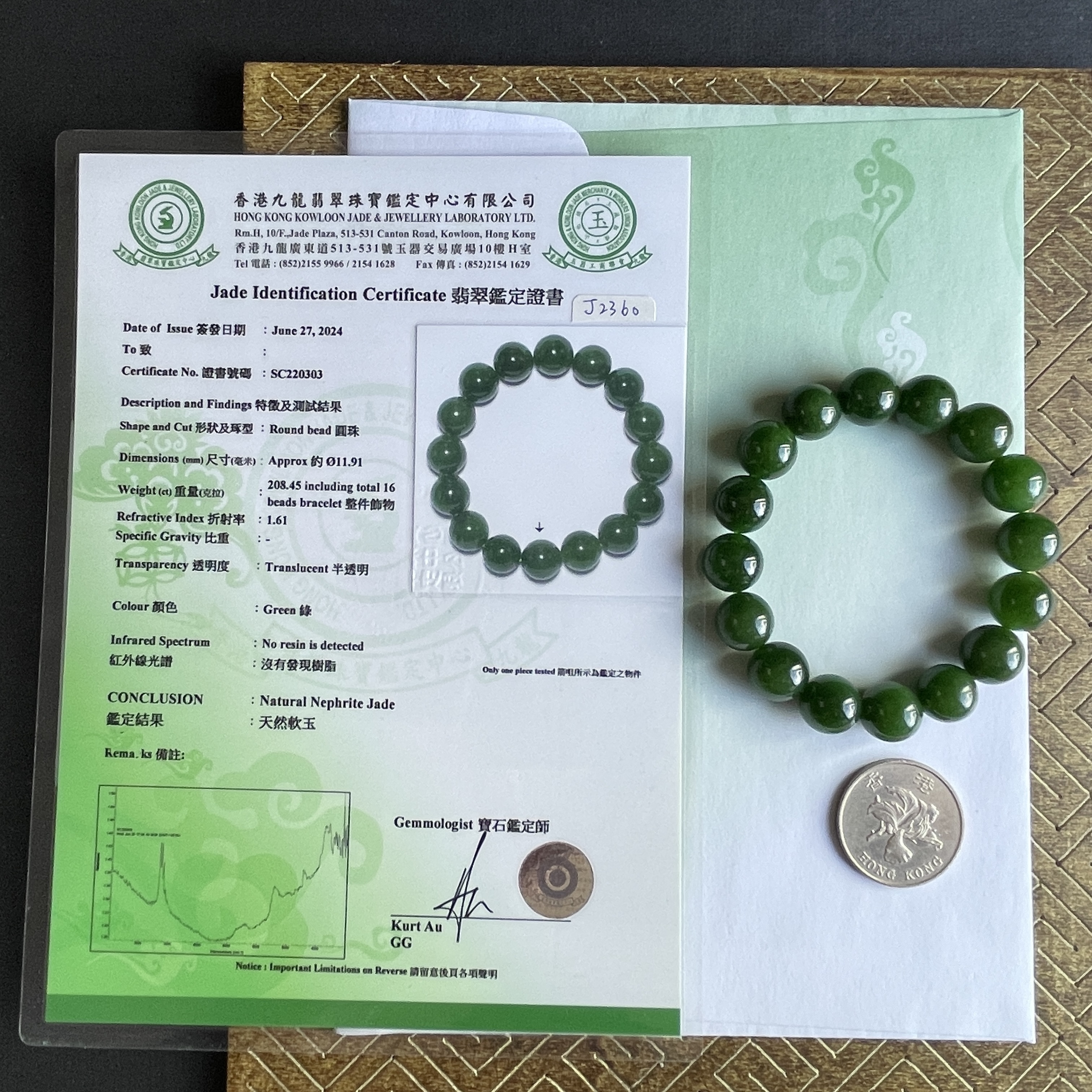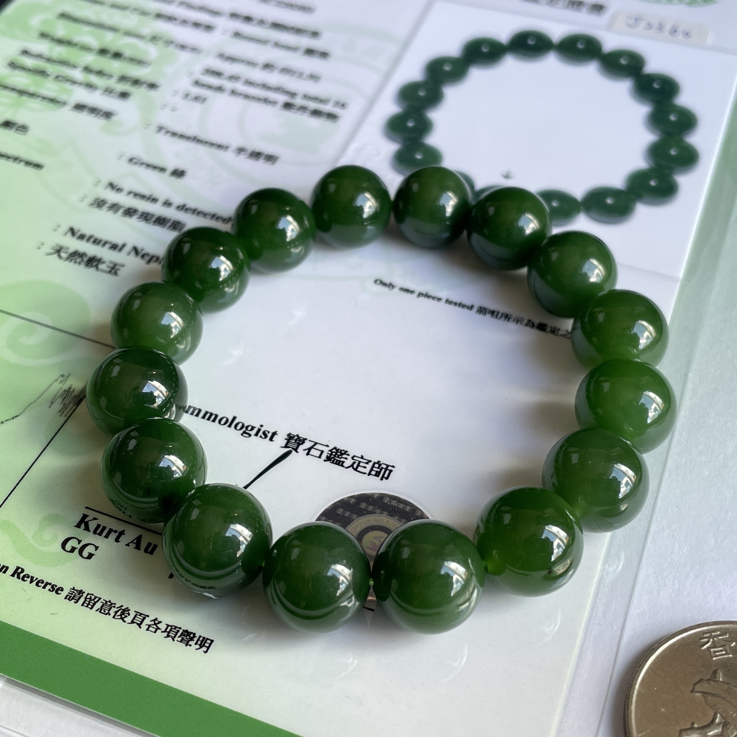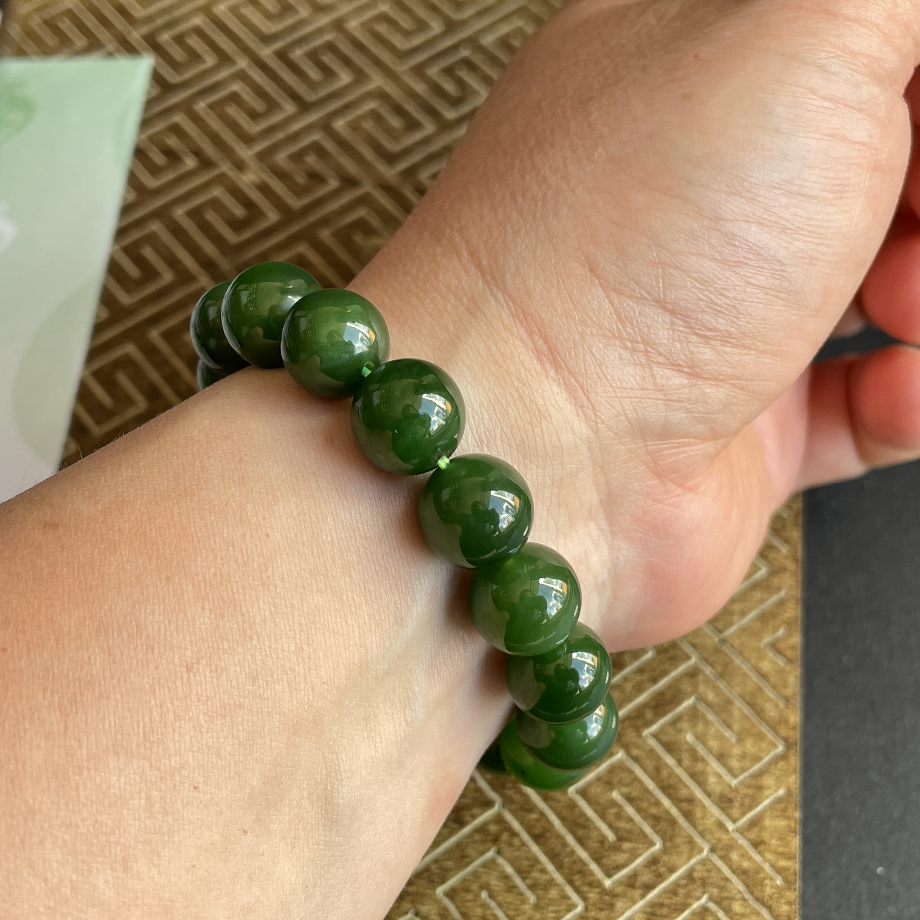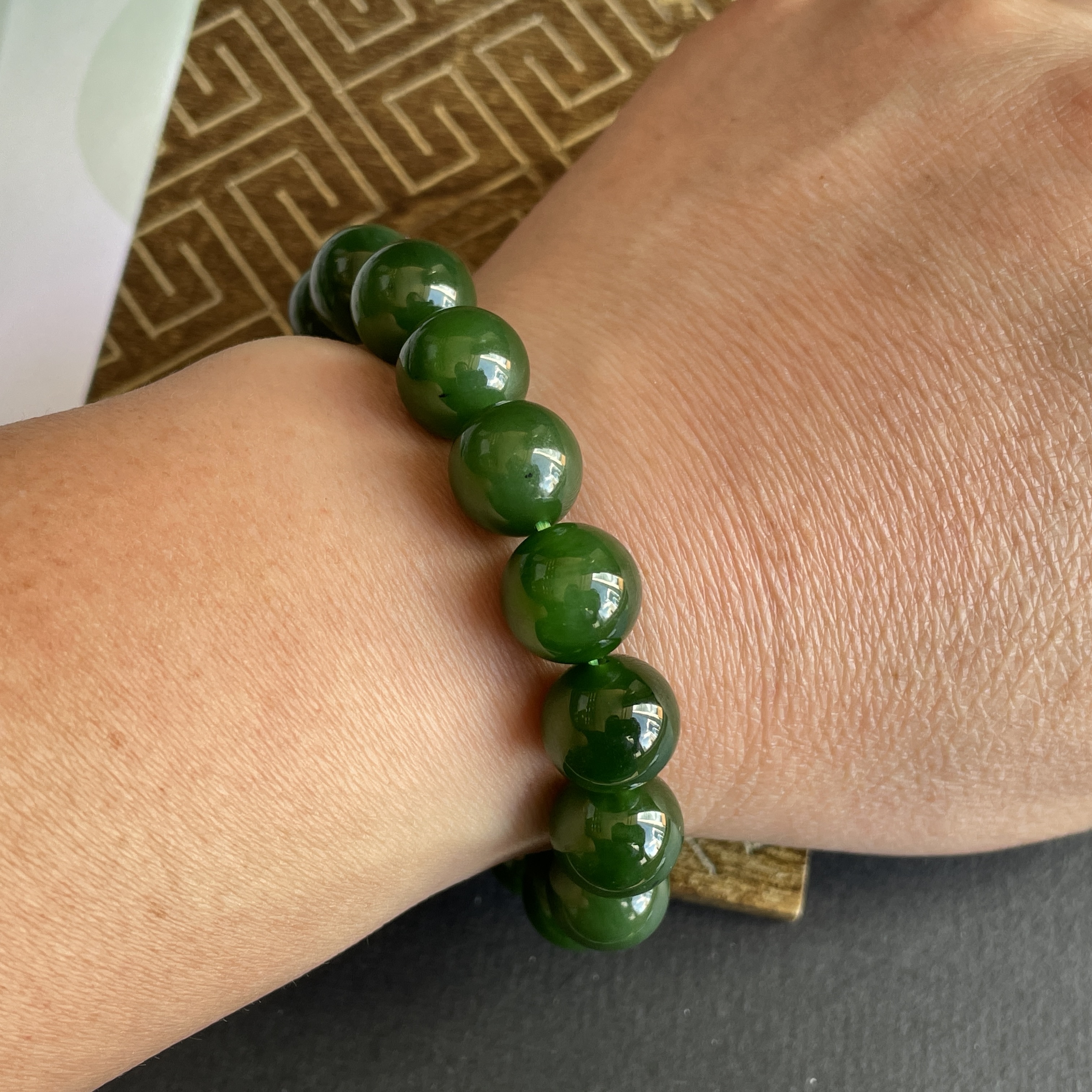 • 和田玉碧玉手串 (12mm直徑),天然和田玉軟玉