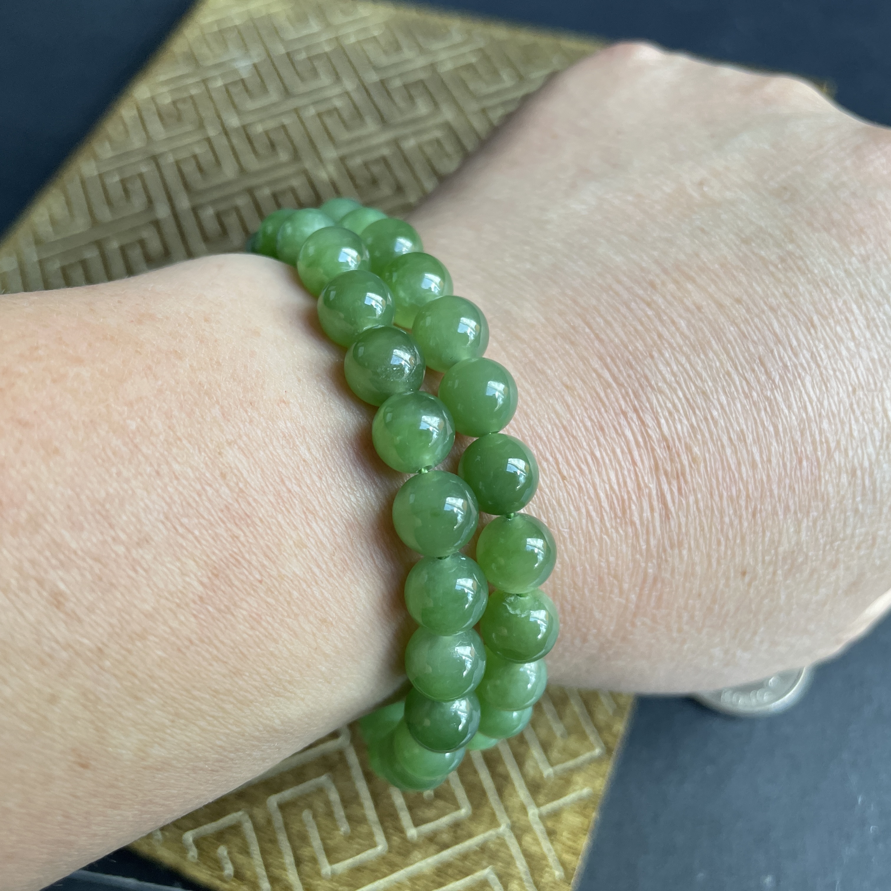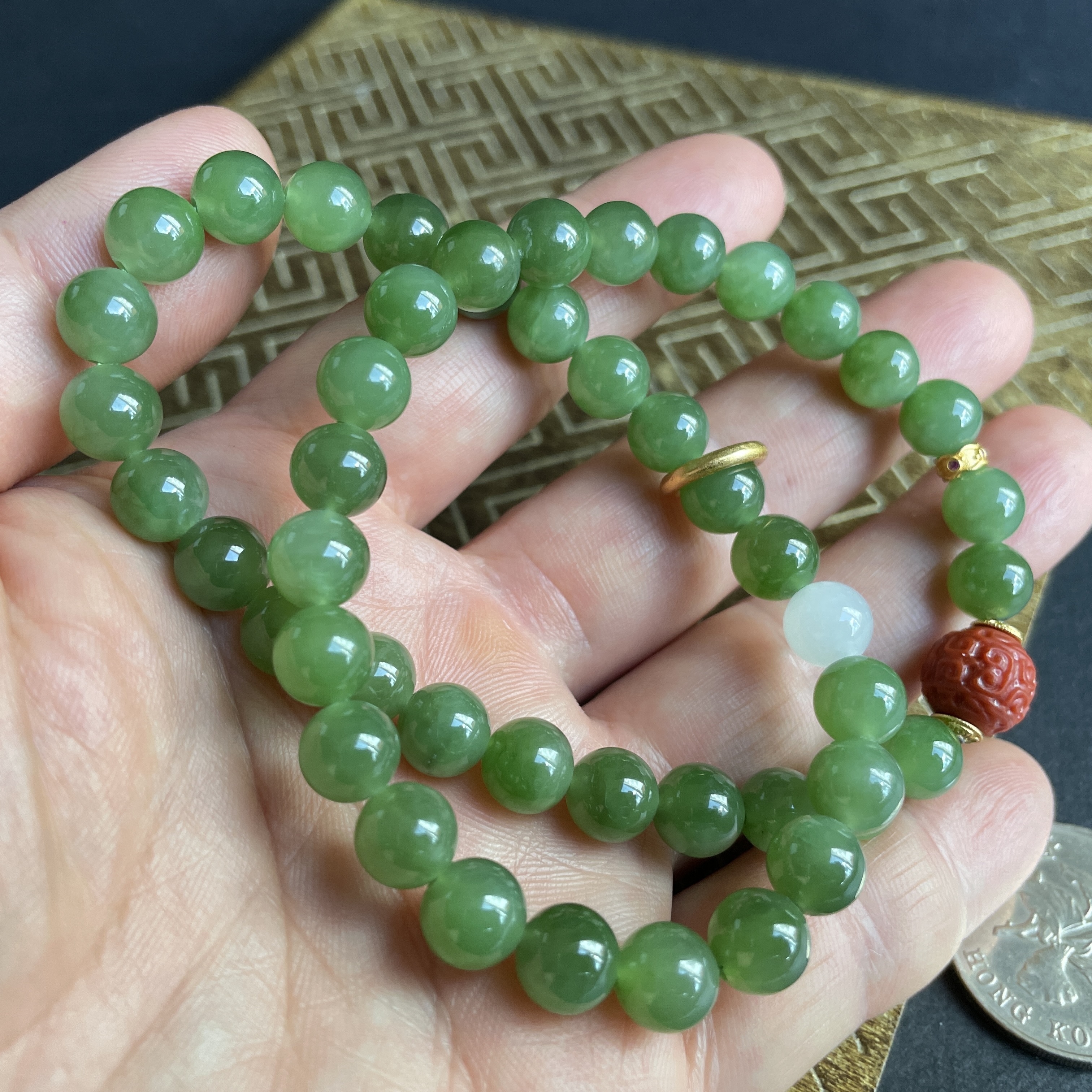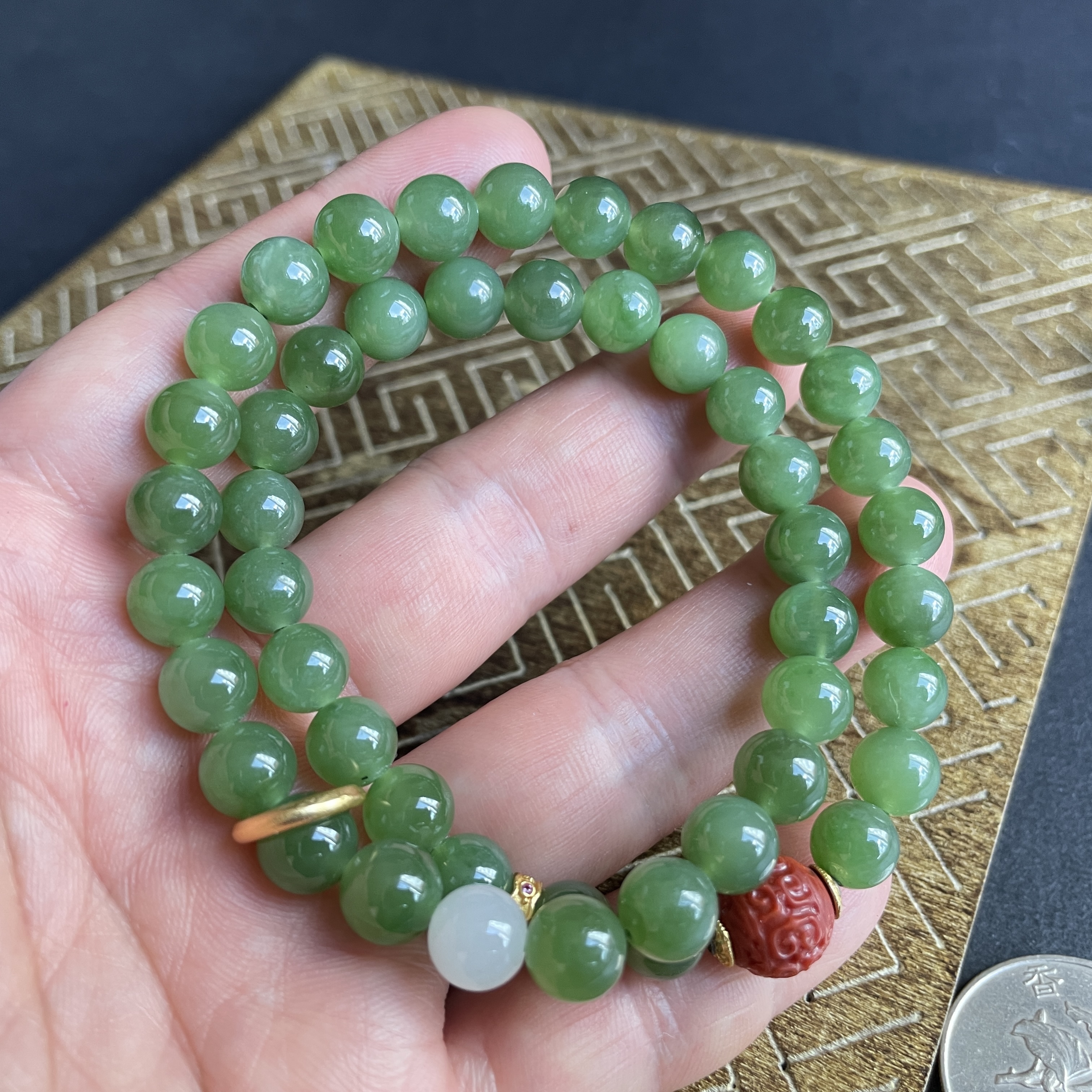 • 和田玉碧玉珠串 (8mm直徑),天然和田玉軟玉