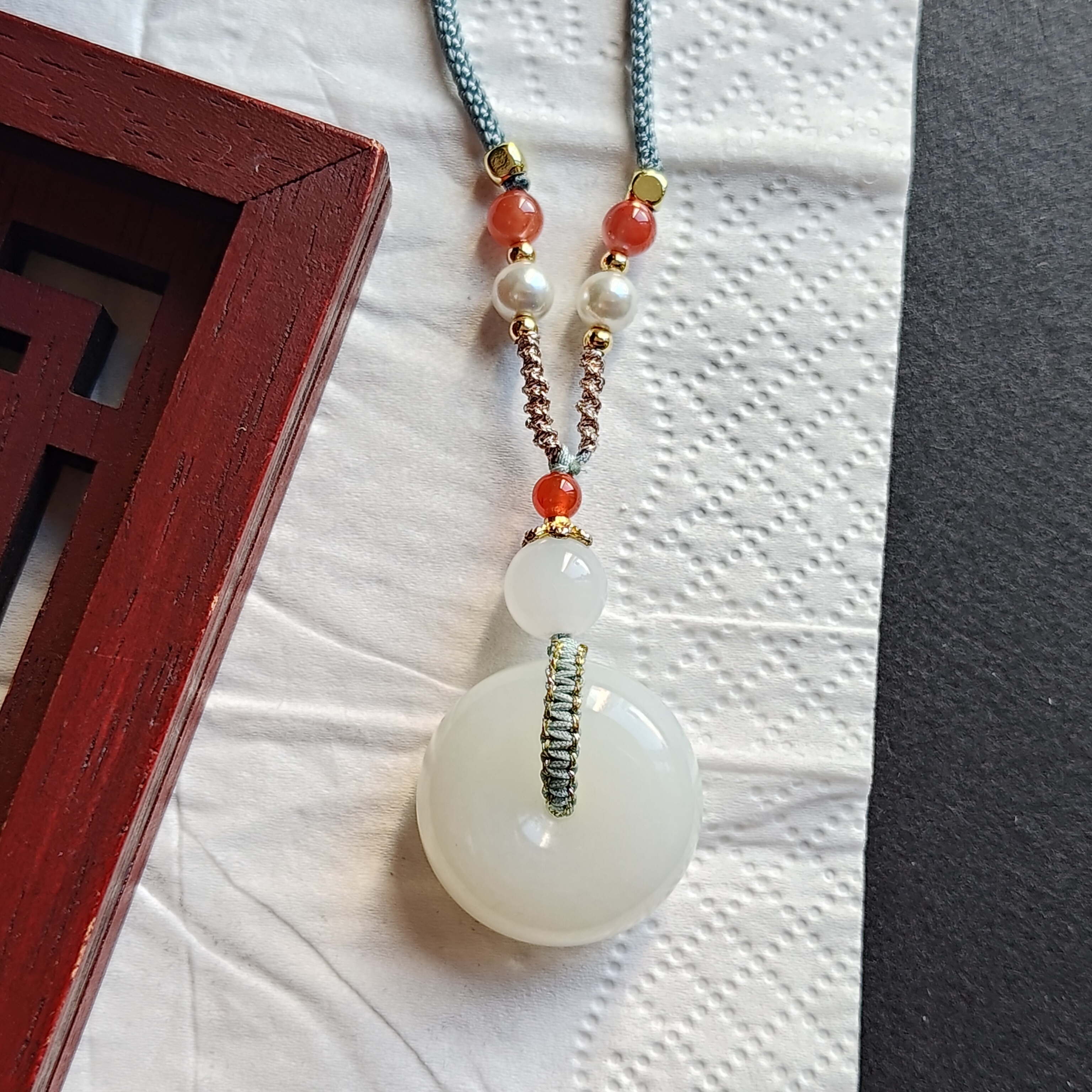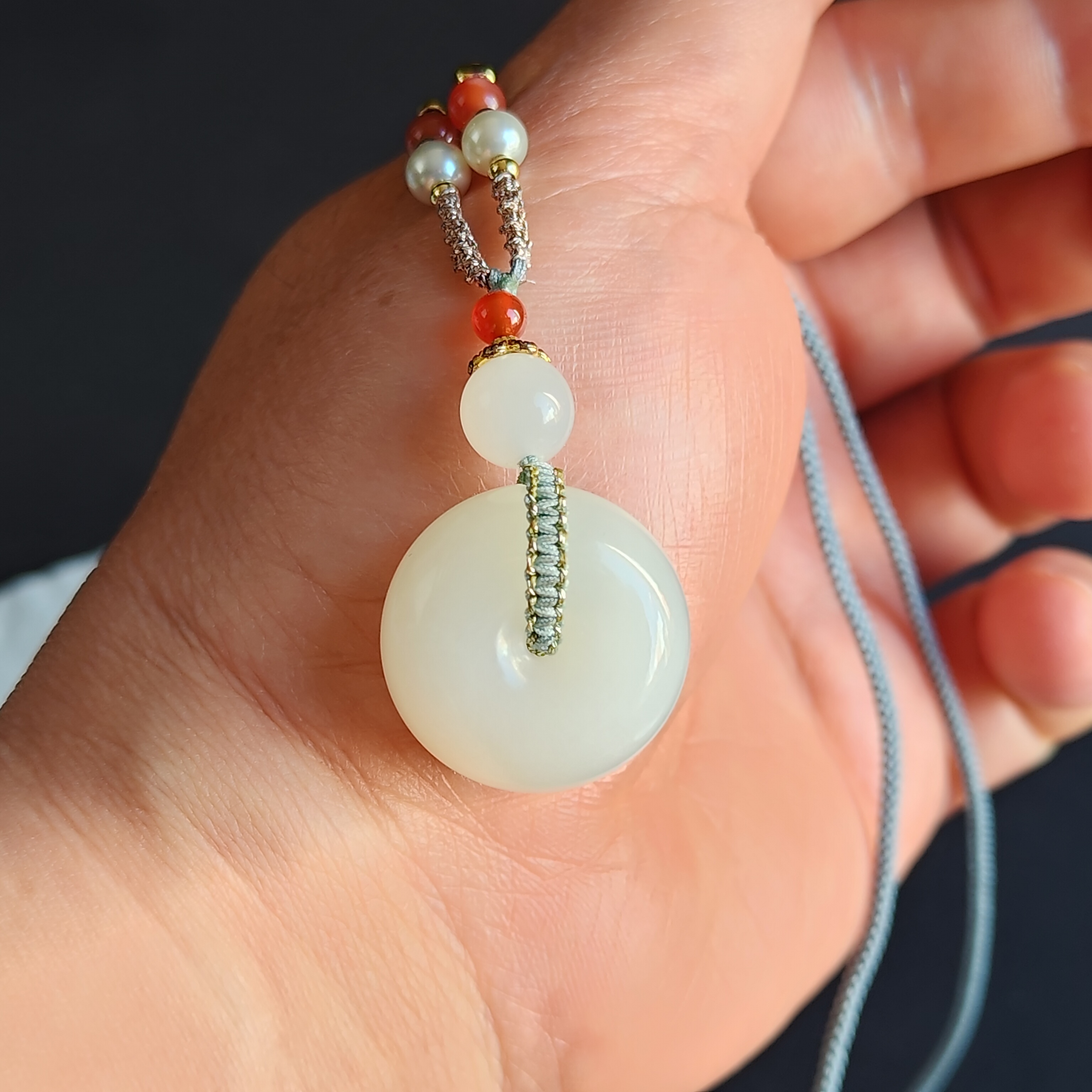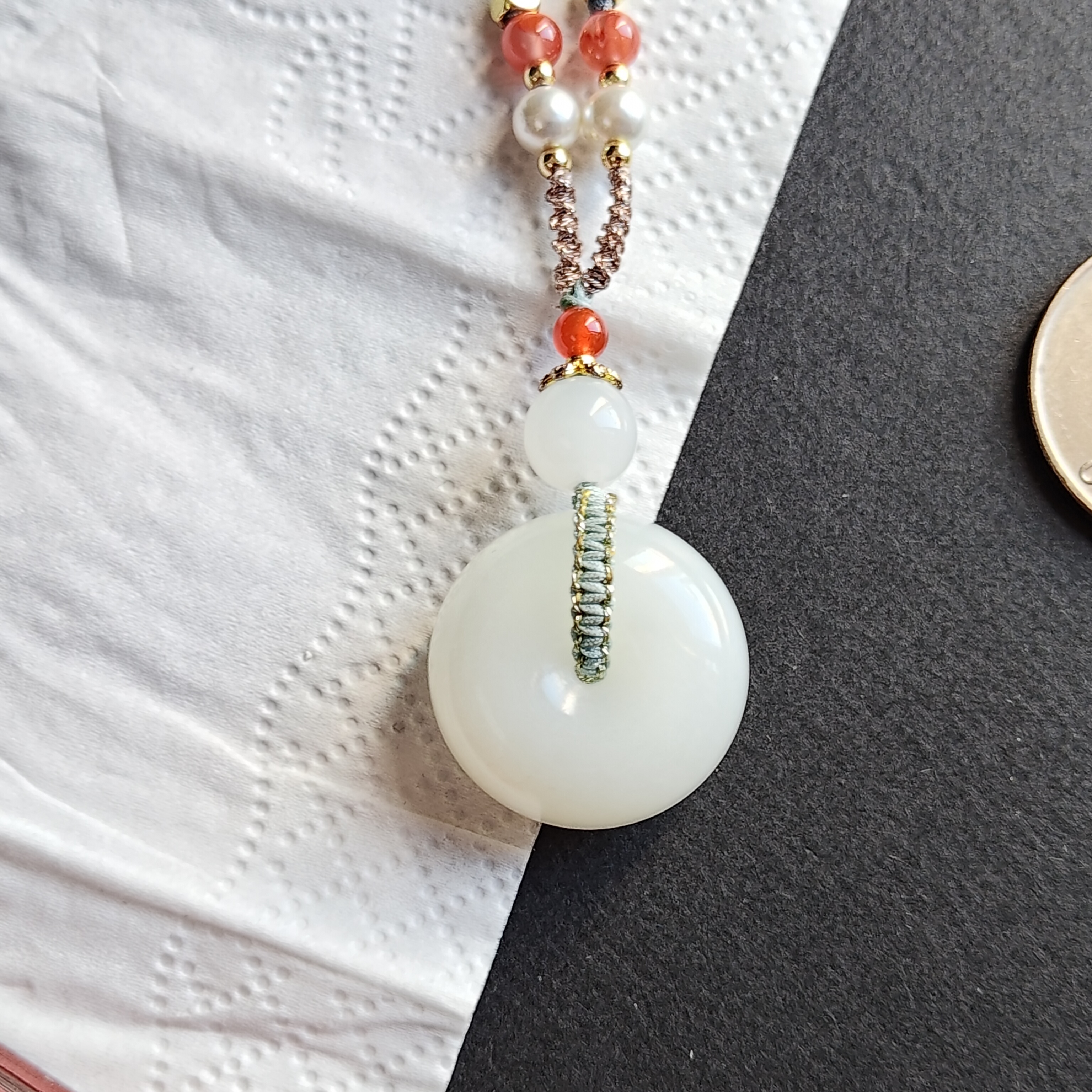 • 和田玉玉白平安扣 (20mm直徑),天然和田玉軟玉