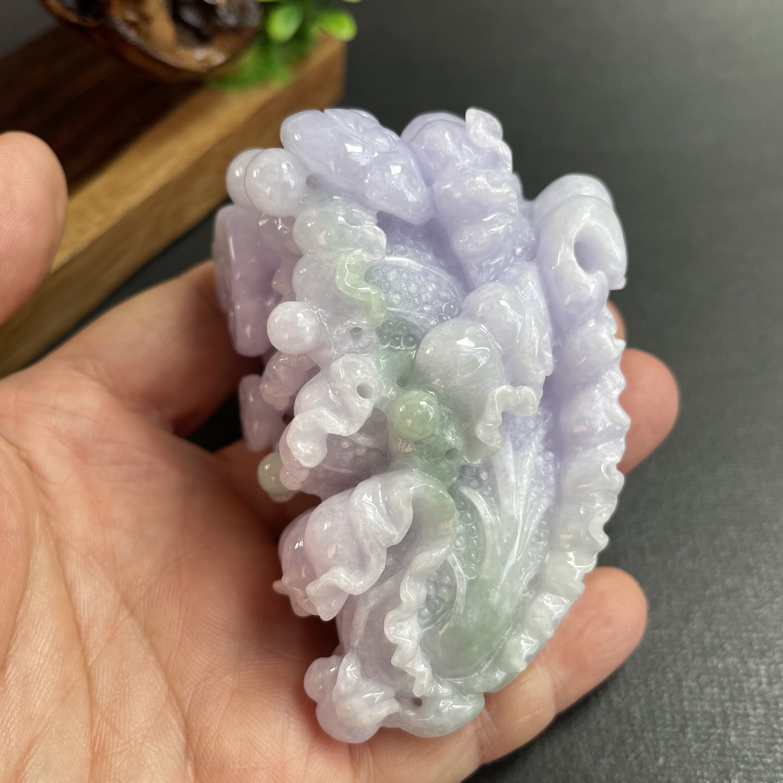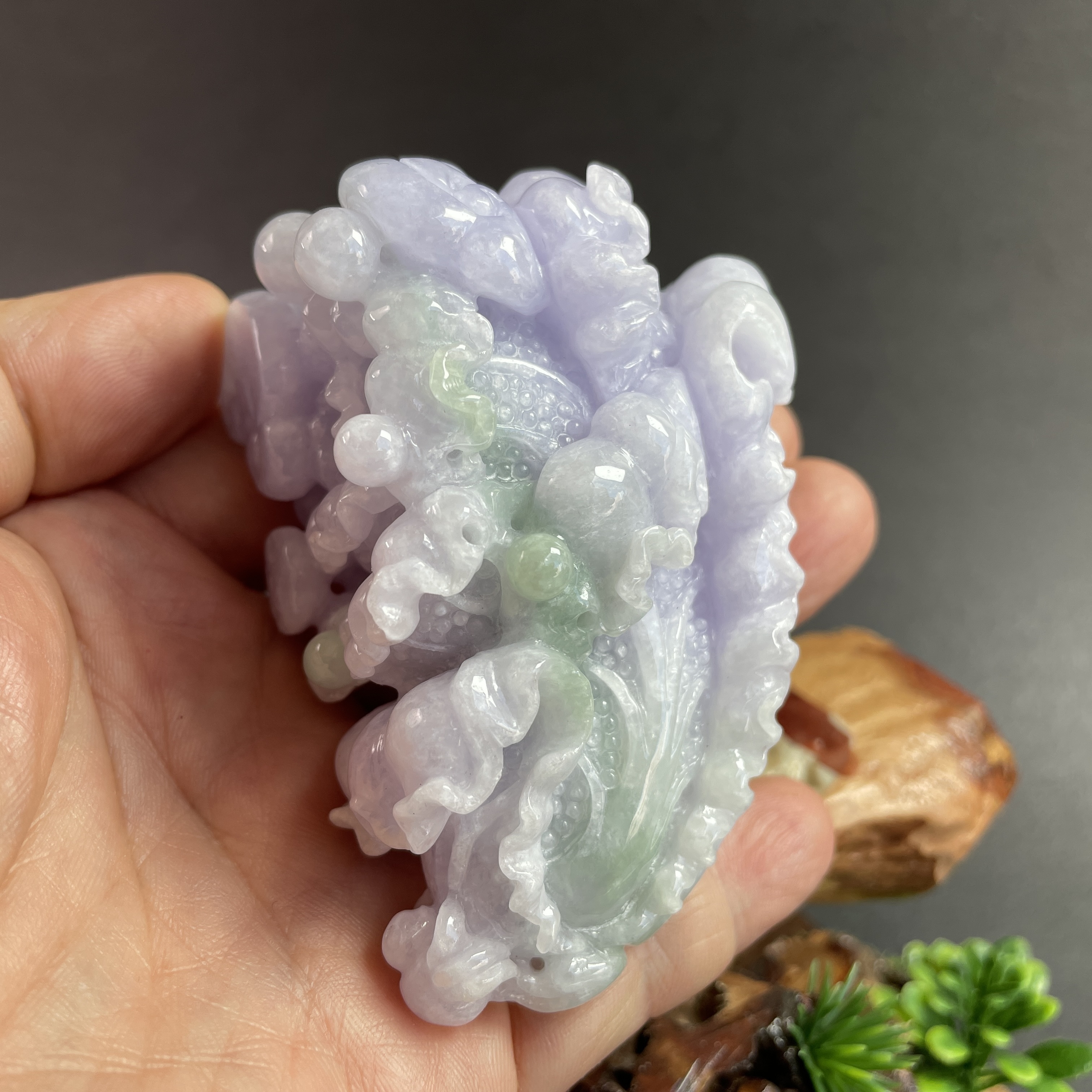 匠人精心手工雕出葉緣蟲蝕痕、露凝紋理。