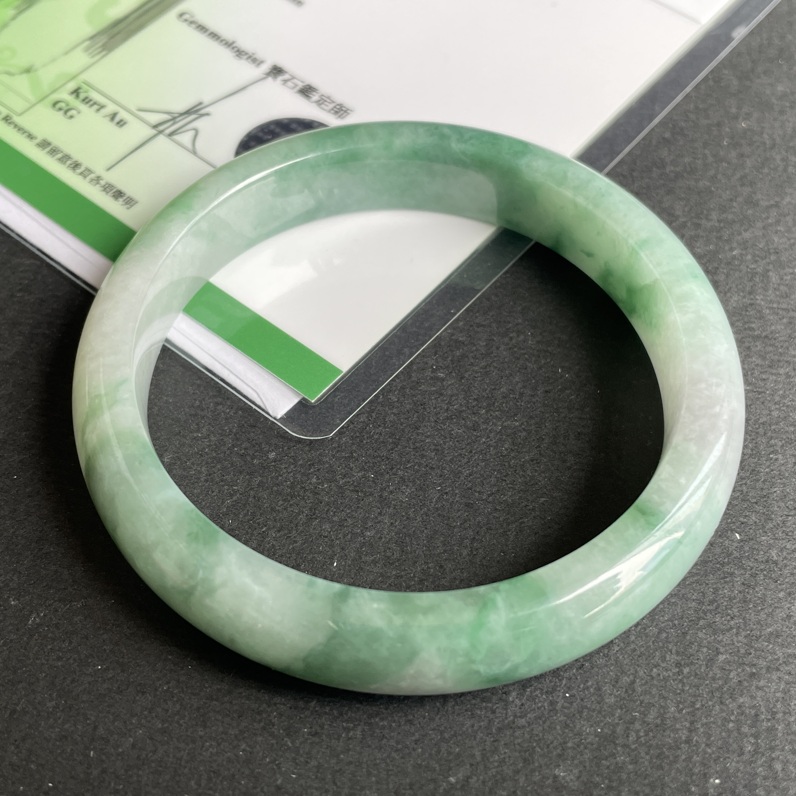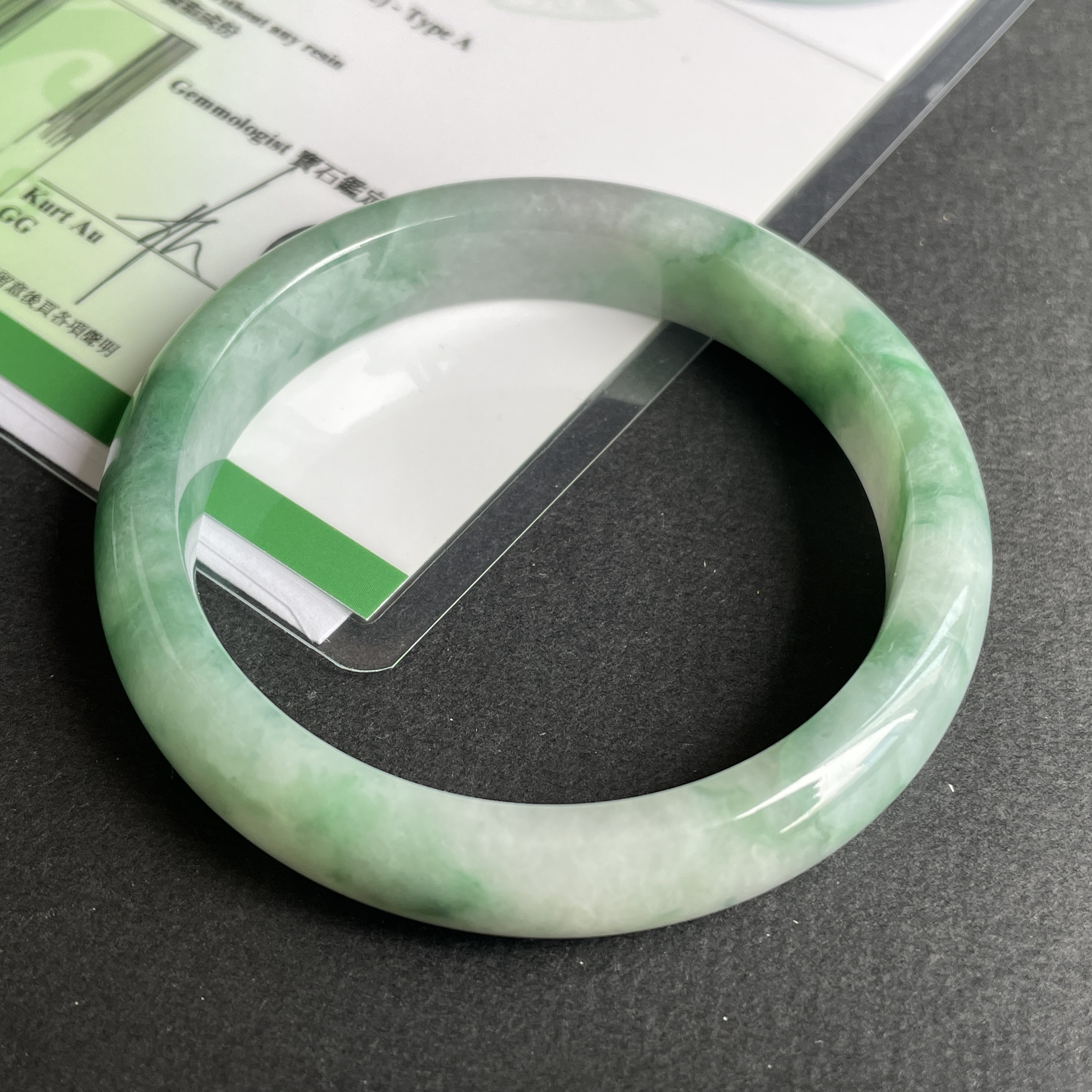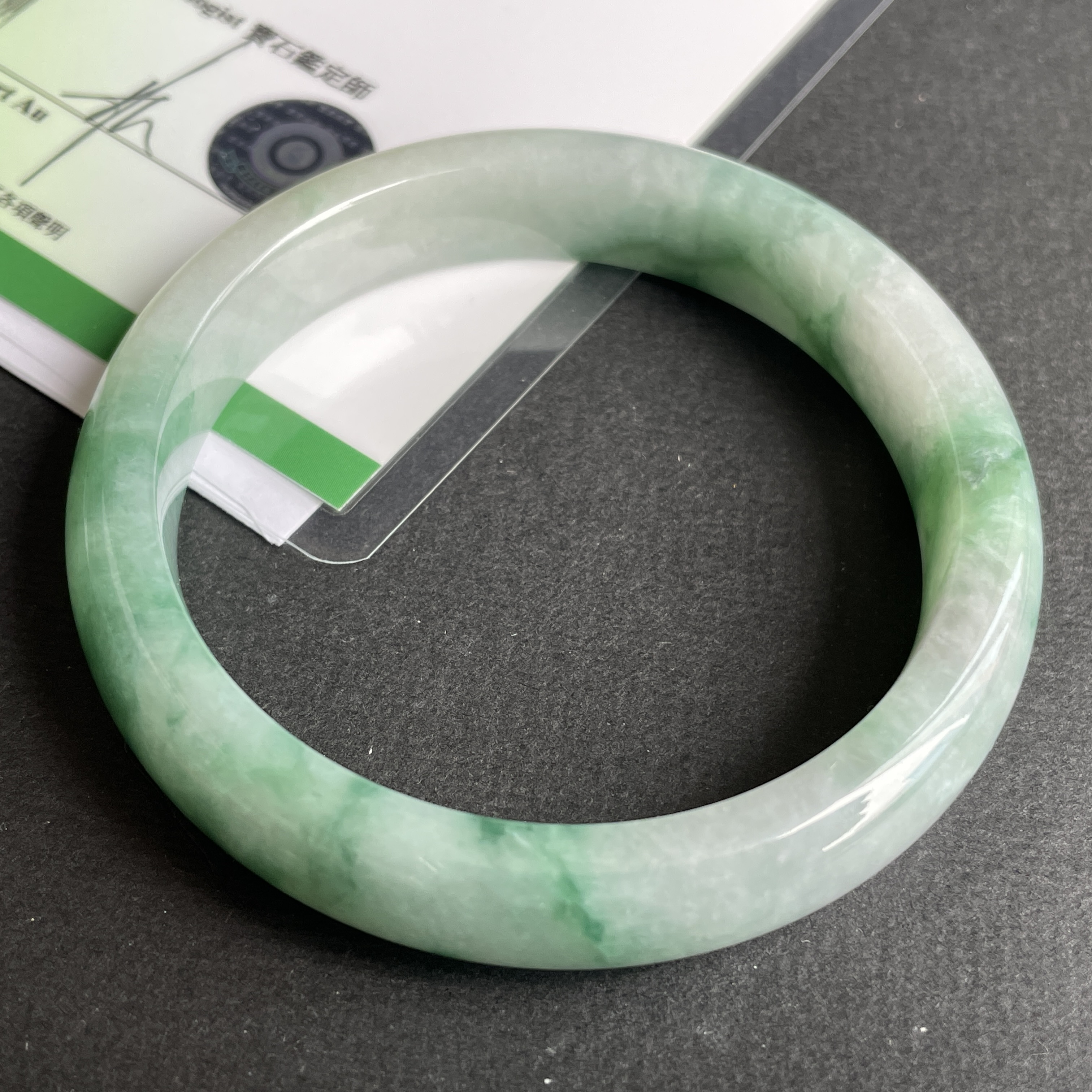 • 翡翠飄花玉鐲,天然翡翠A玉, 緬甸玉, Jade, Jadeite