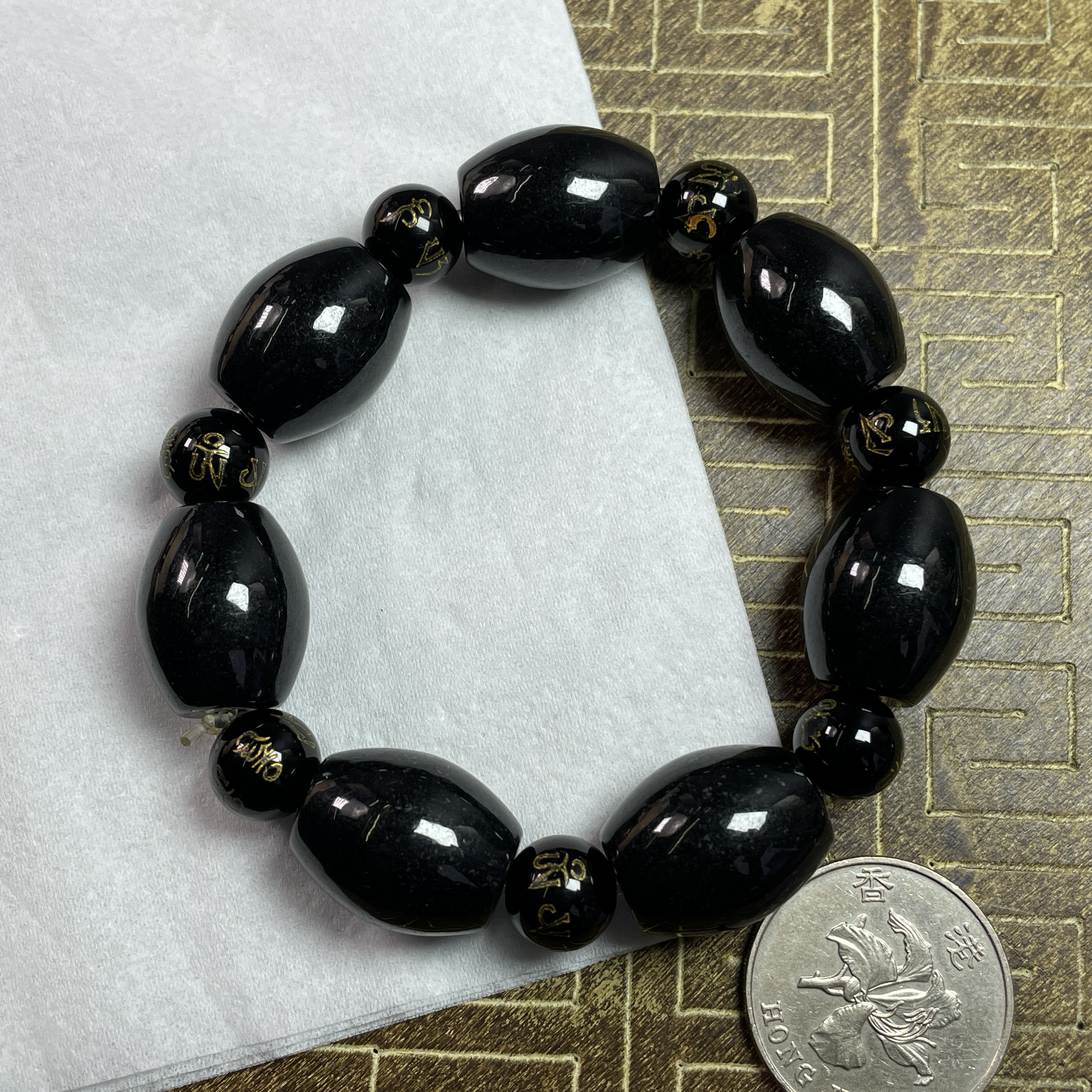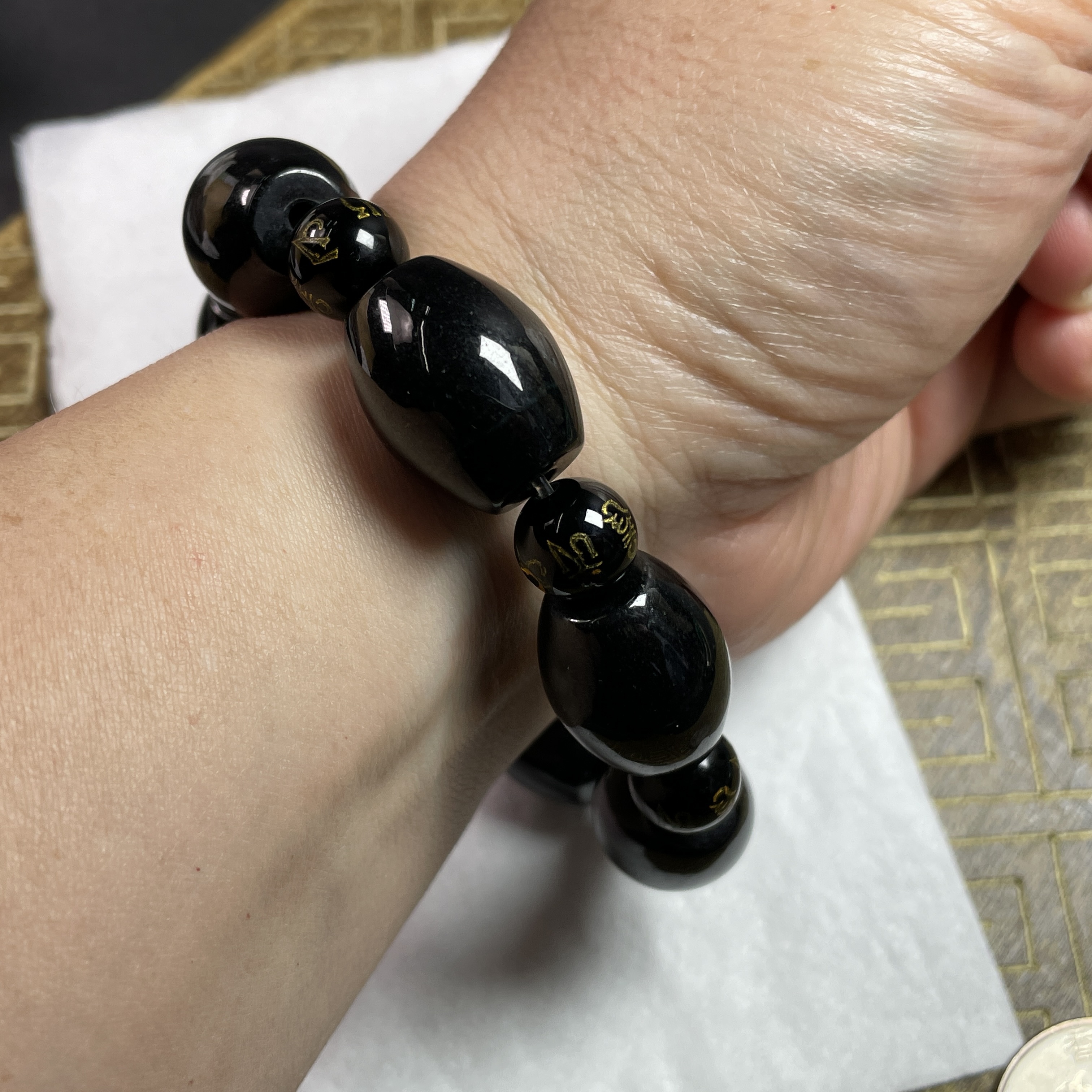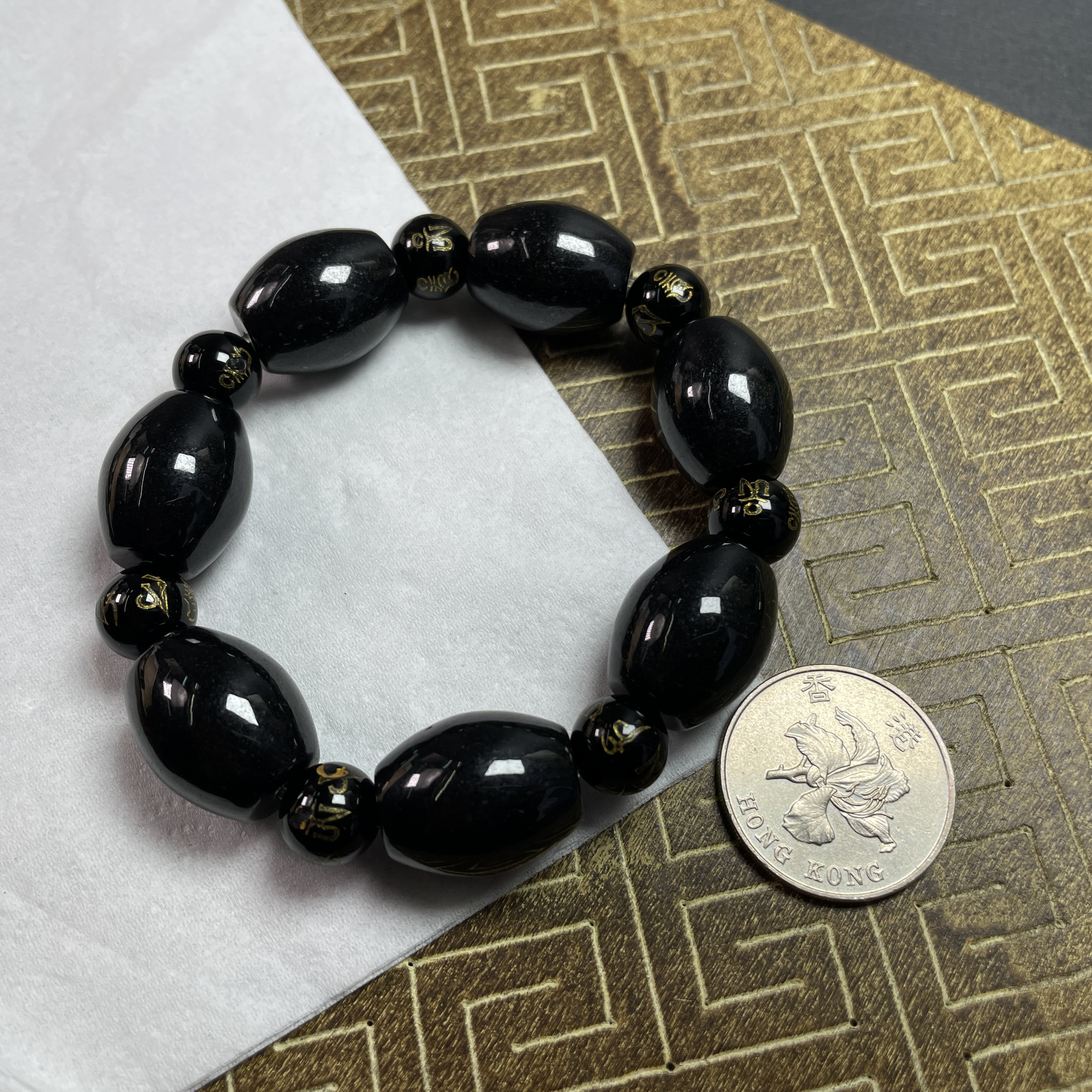 • 墨翠路路通手串,天然翡翠A玉, 緬甸玉, Jade, Jadeite