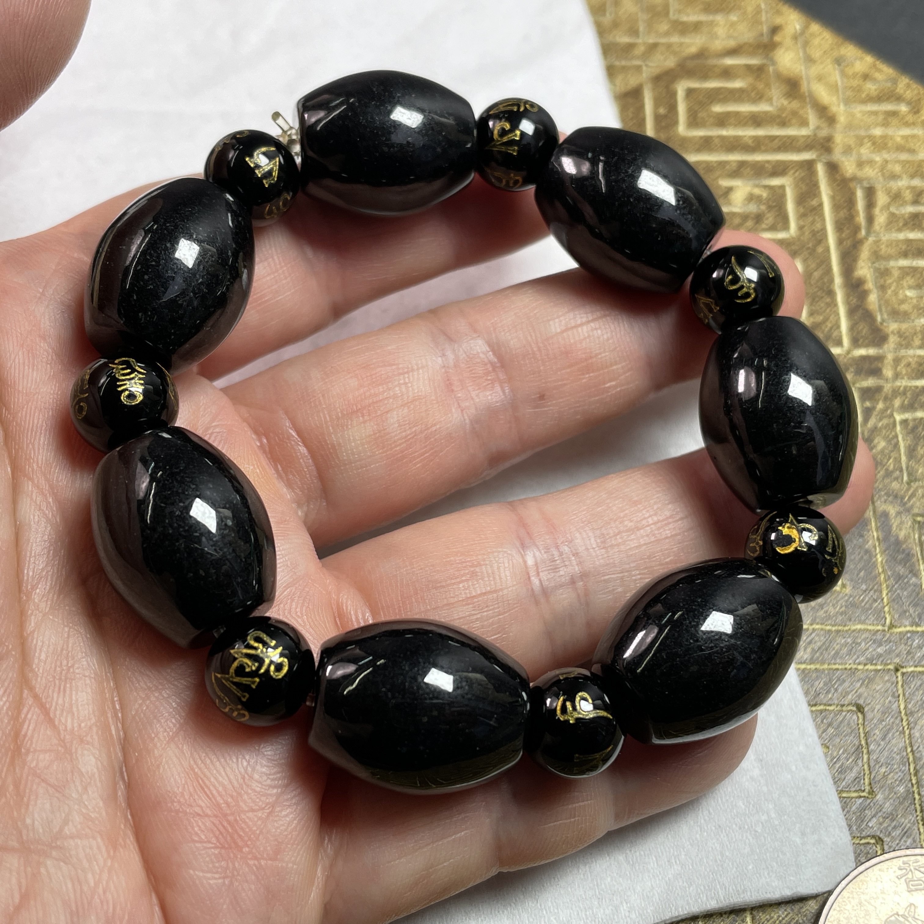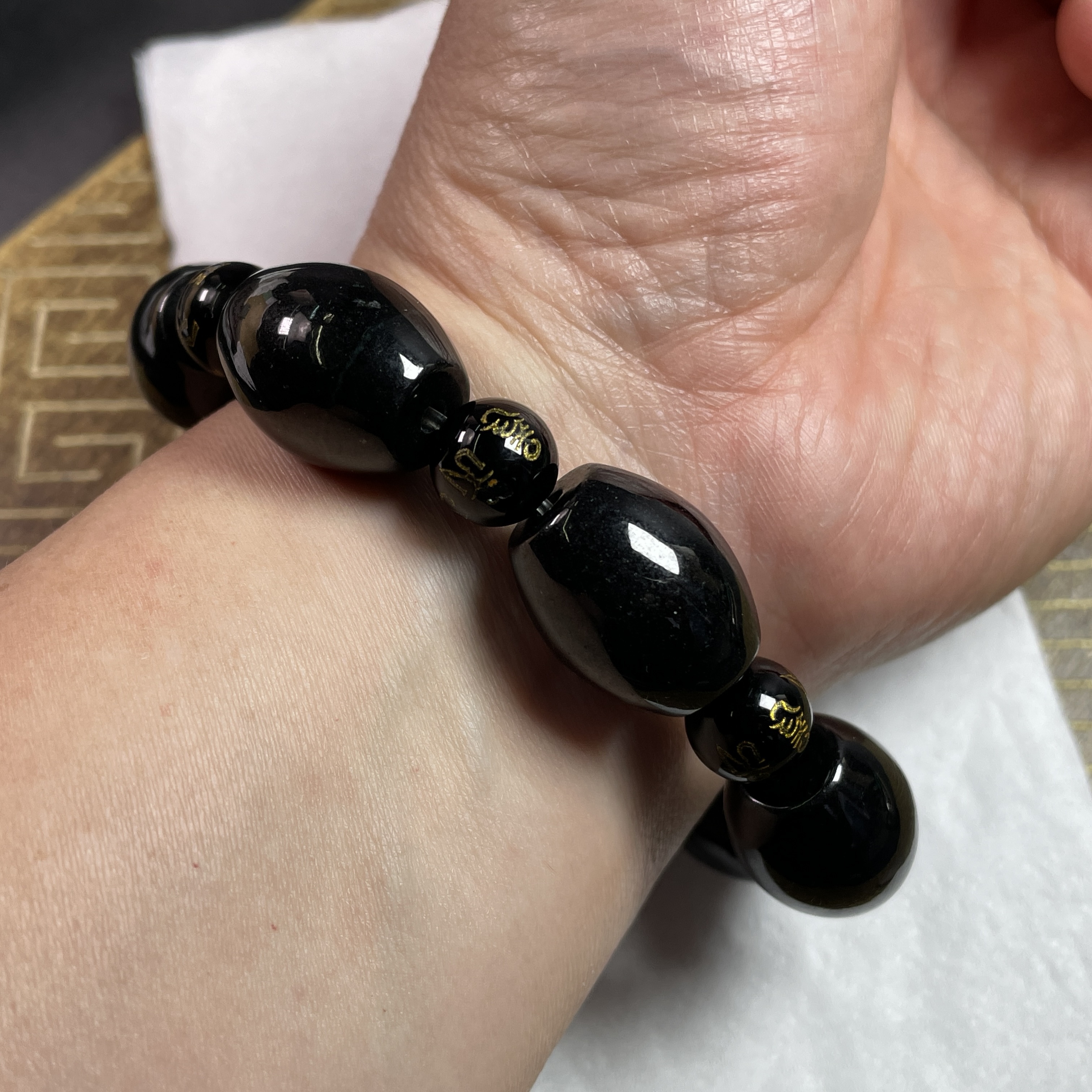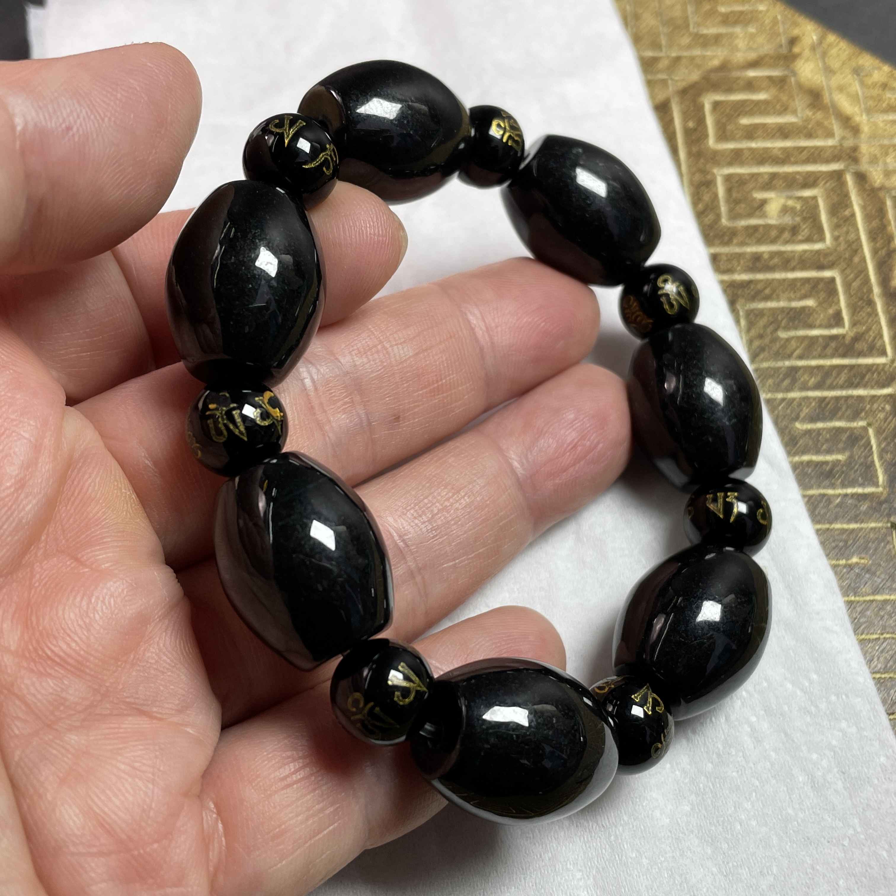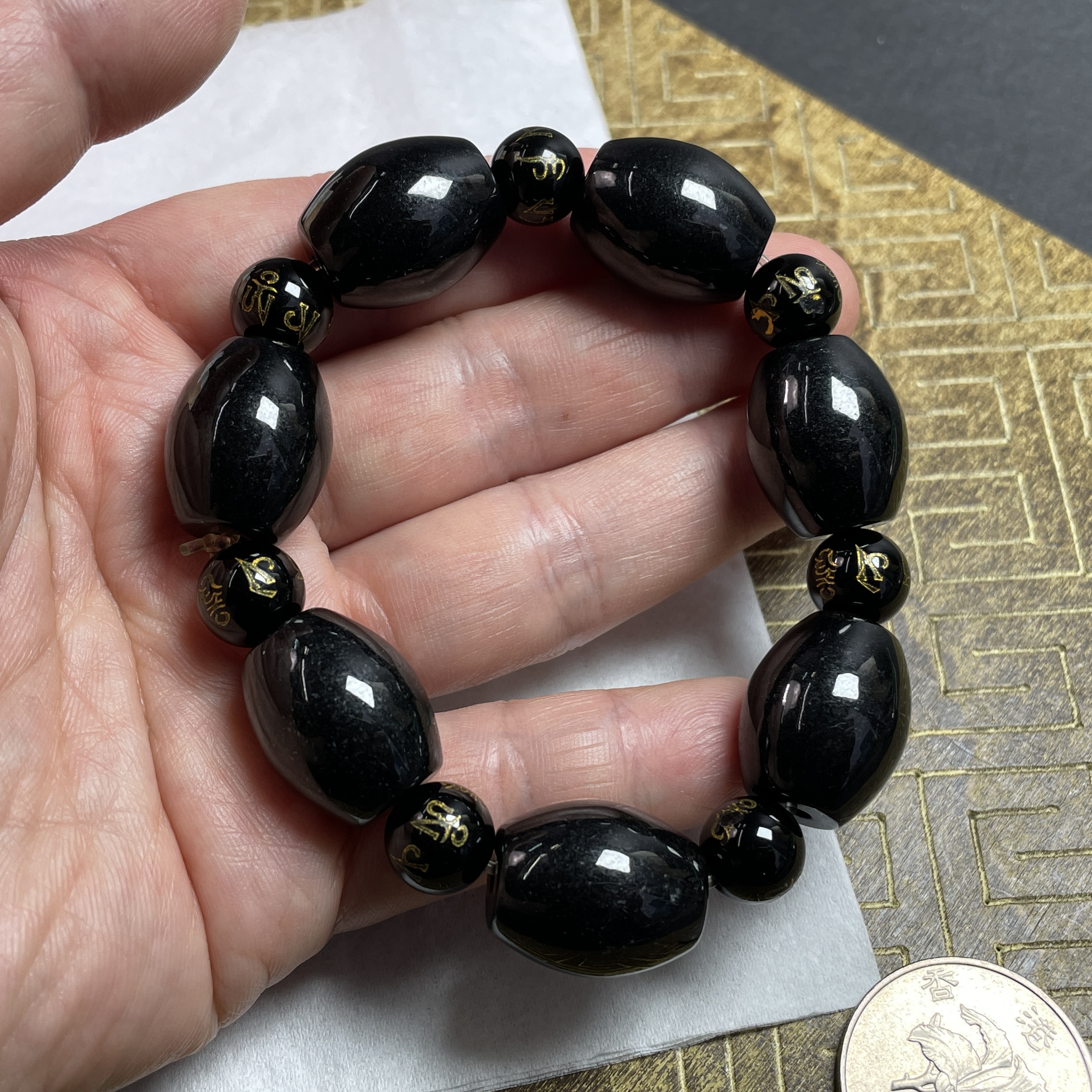 • 墨翠路路通手串,天然翡翠A玉, 緬甸玉, Jade, Jadeite