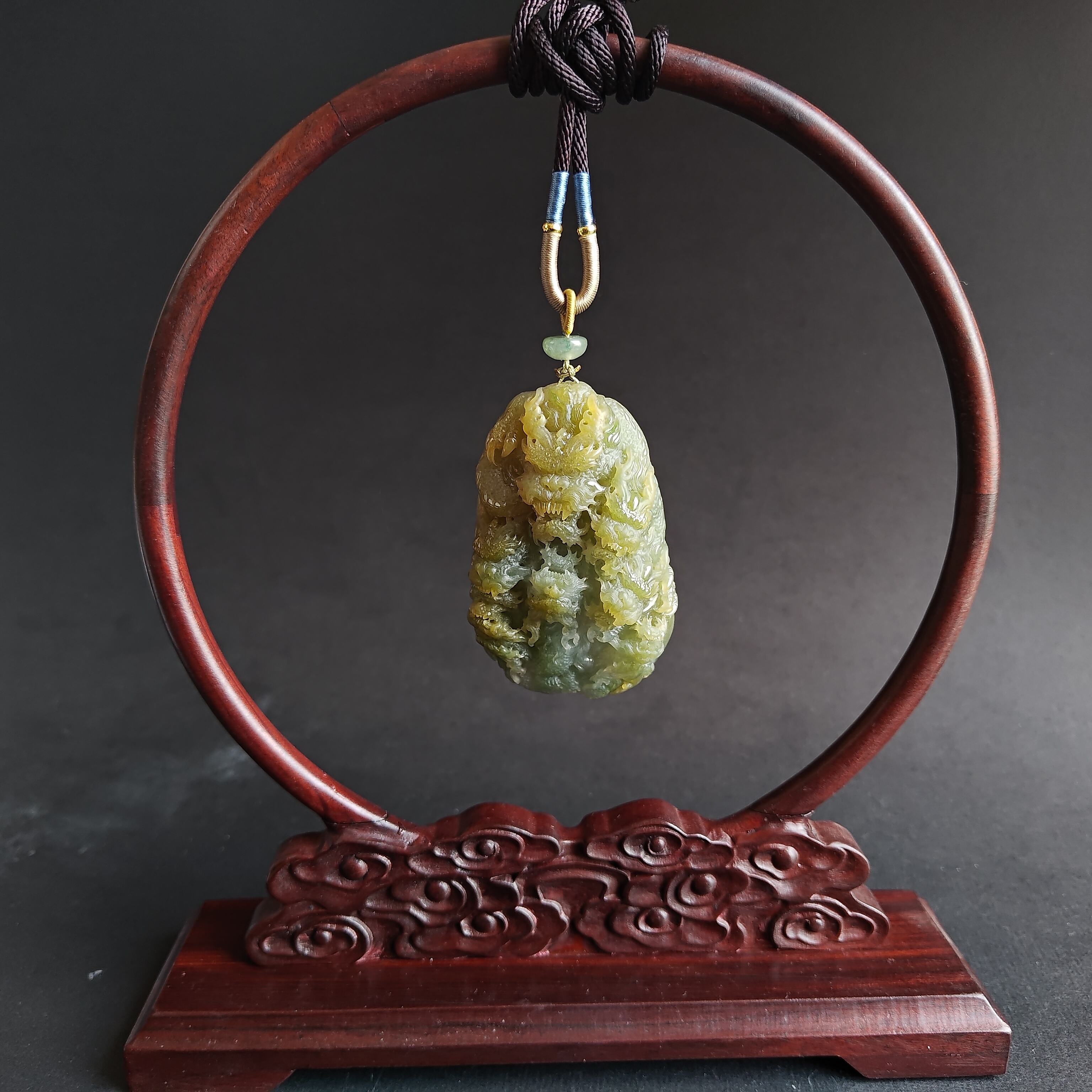 此掛件可佩於胸前,貼身養玉,靈氣隨身;亦可配上木掛座,懸於廳堂,鎮宅聚氣,彰顯尊榮氣度。
