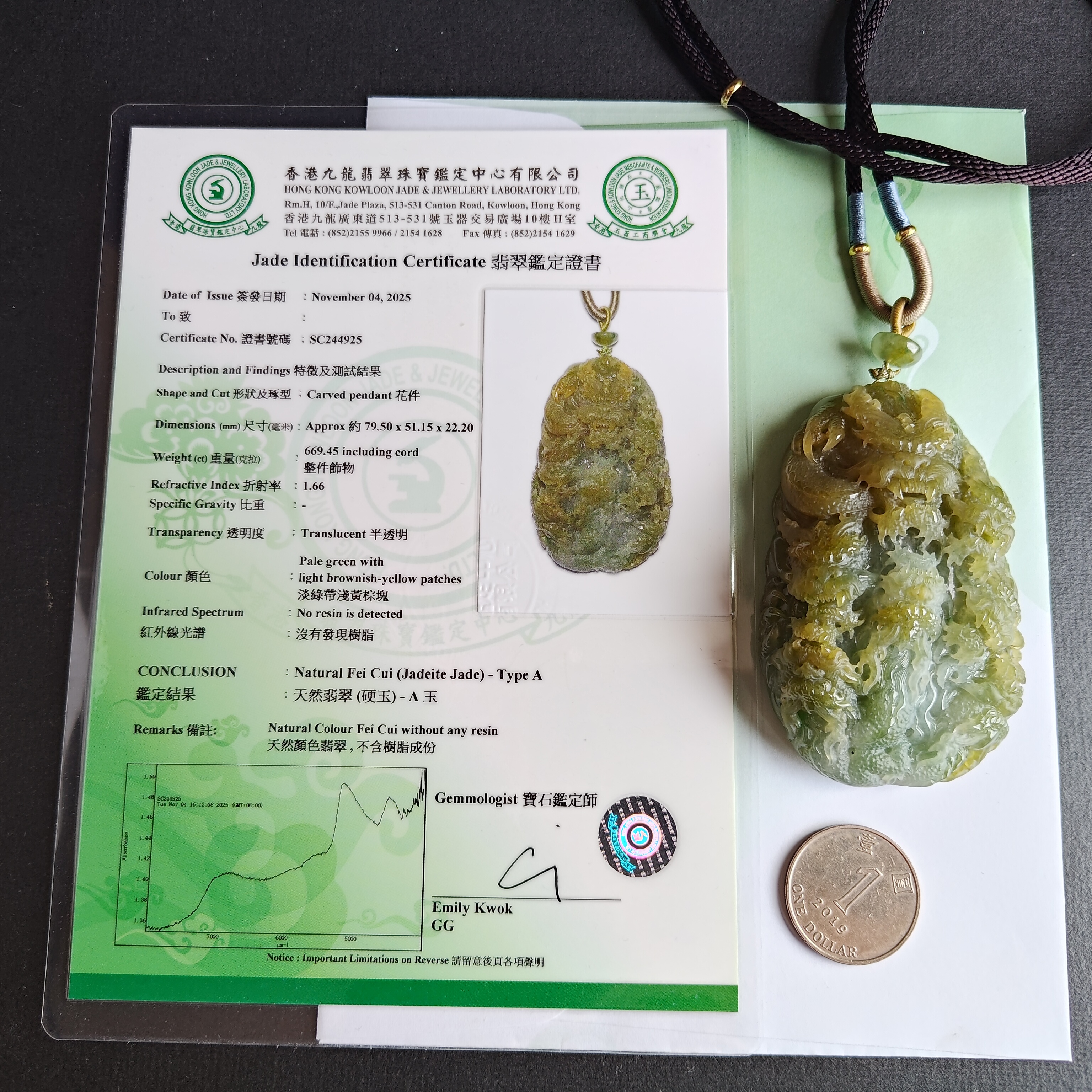 隨件附上香港翡翠鑑証書,及大師收藏證書。