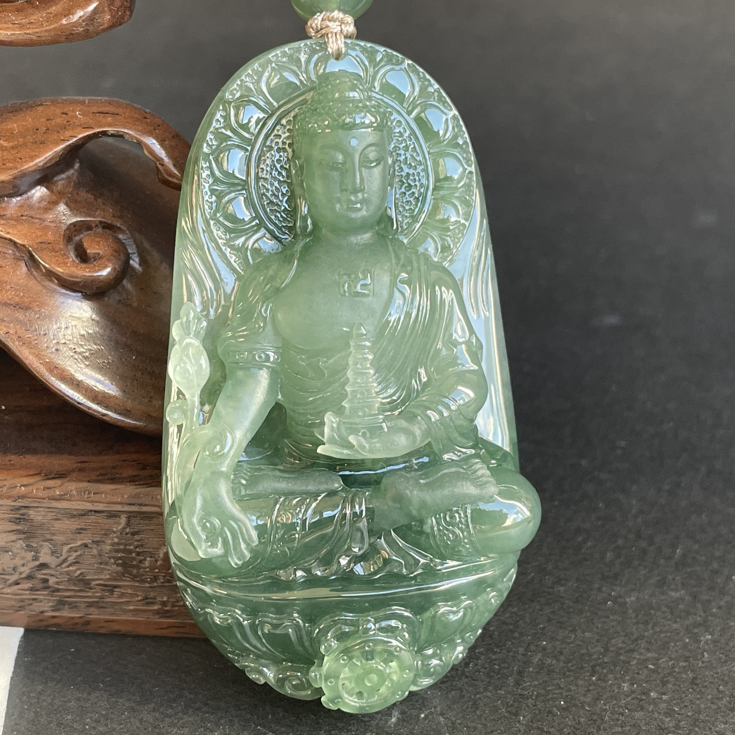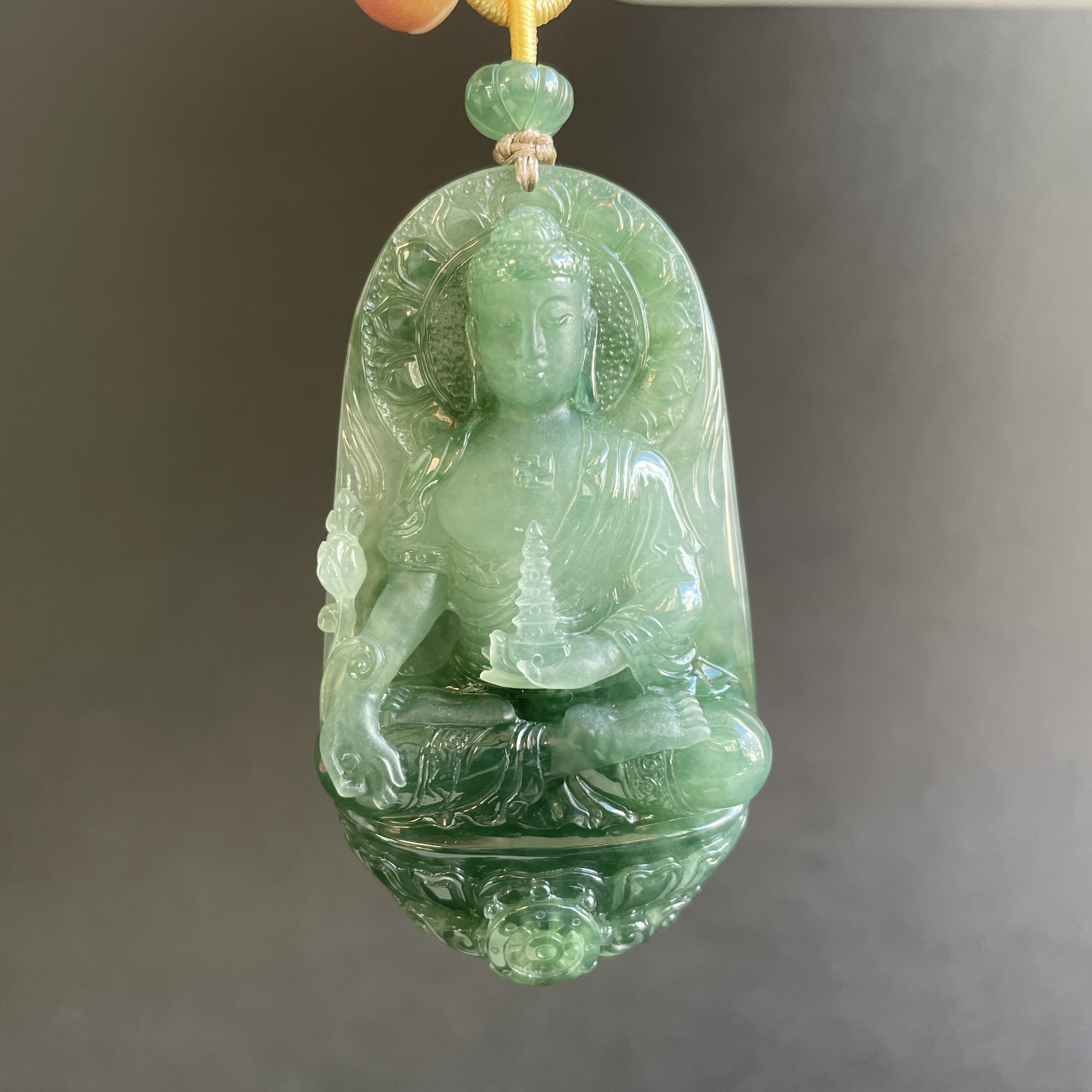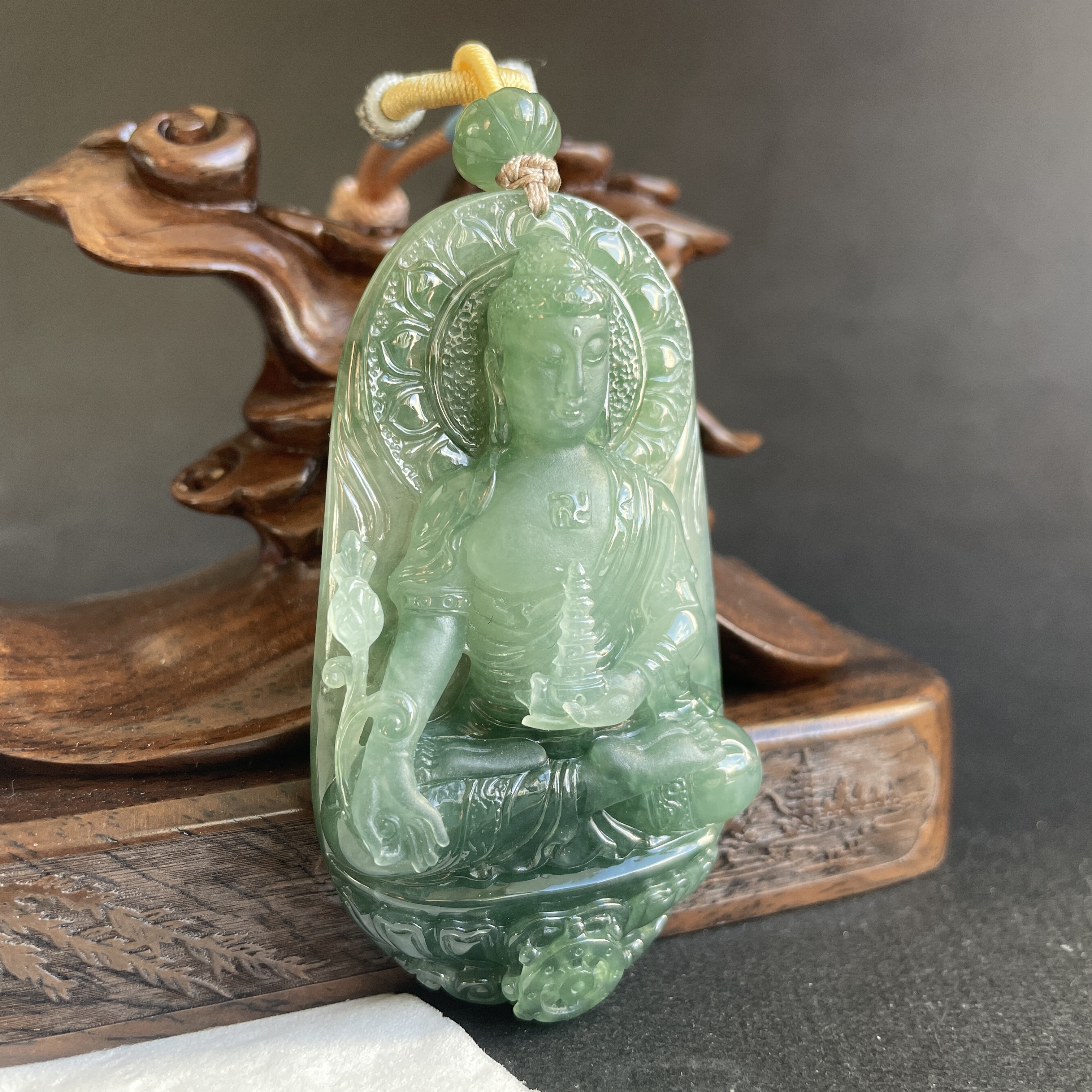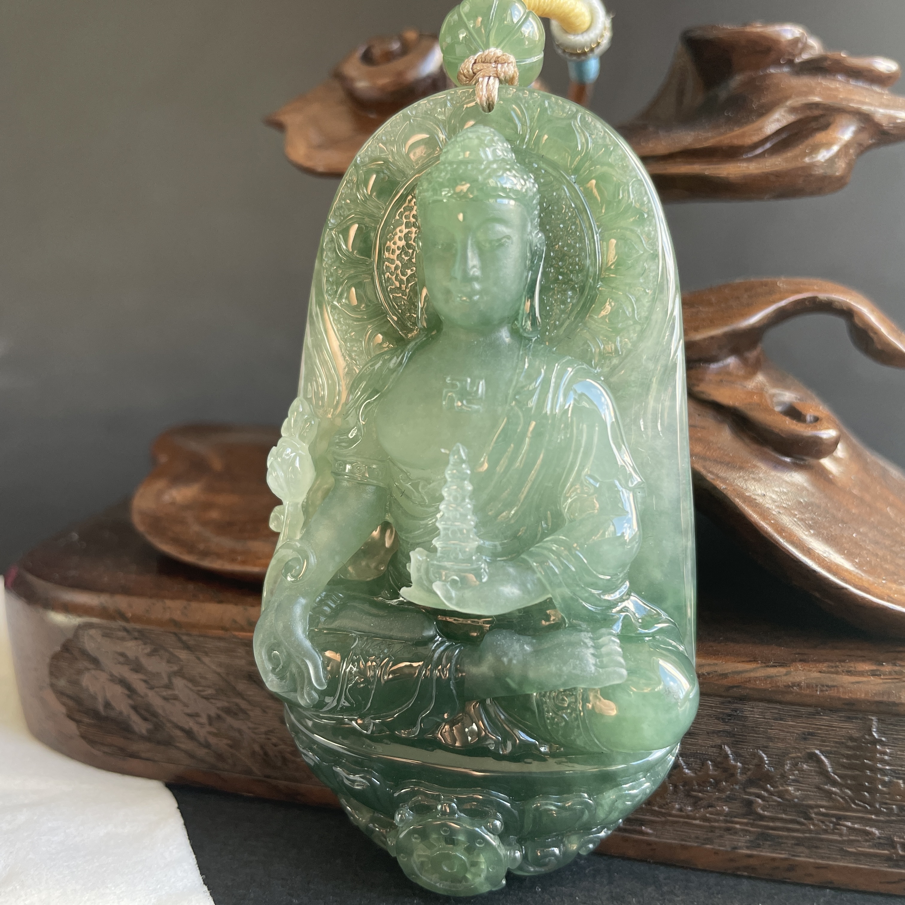 大師精雕作品!稀世翡翠雕琢 —— 藥師佛護身掛件。庇佑安康,淨化心靈,一眼萬年,凝翠於心。