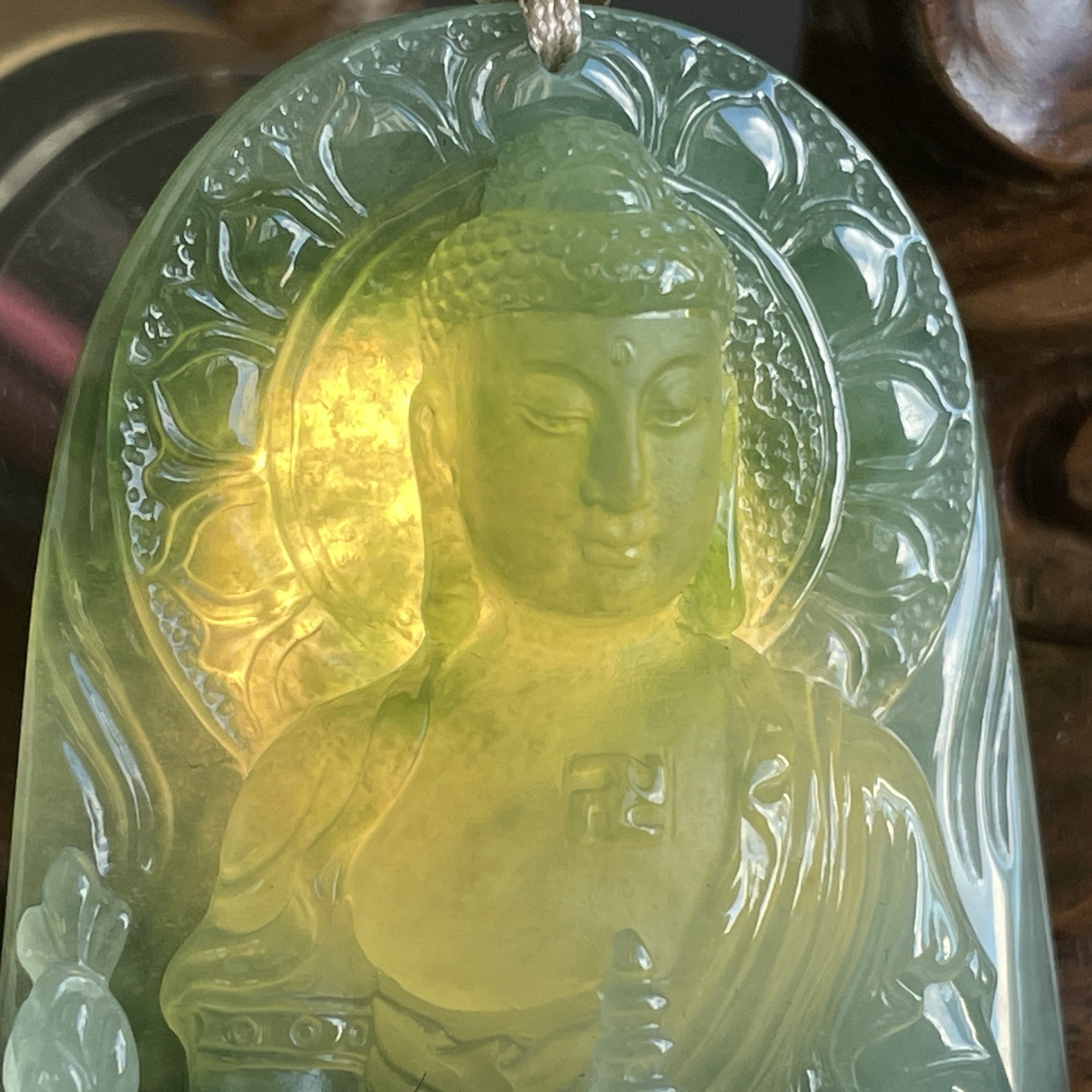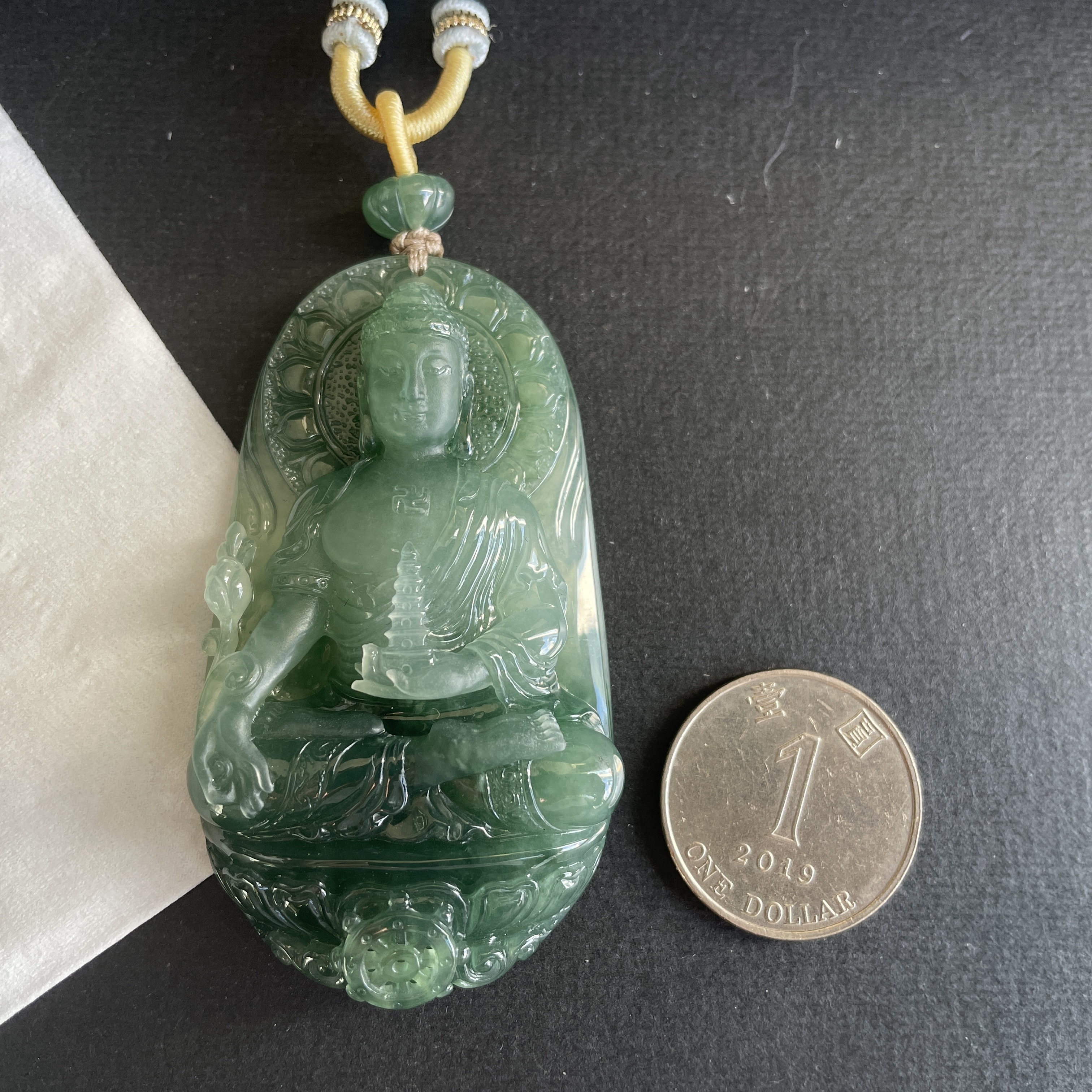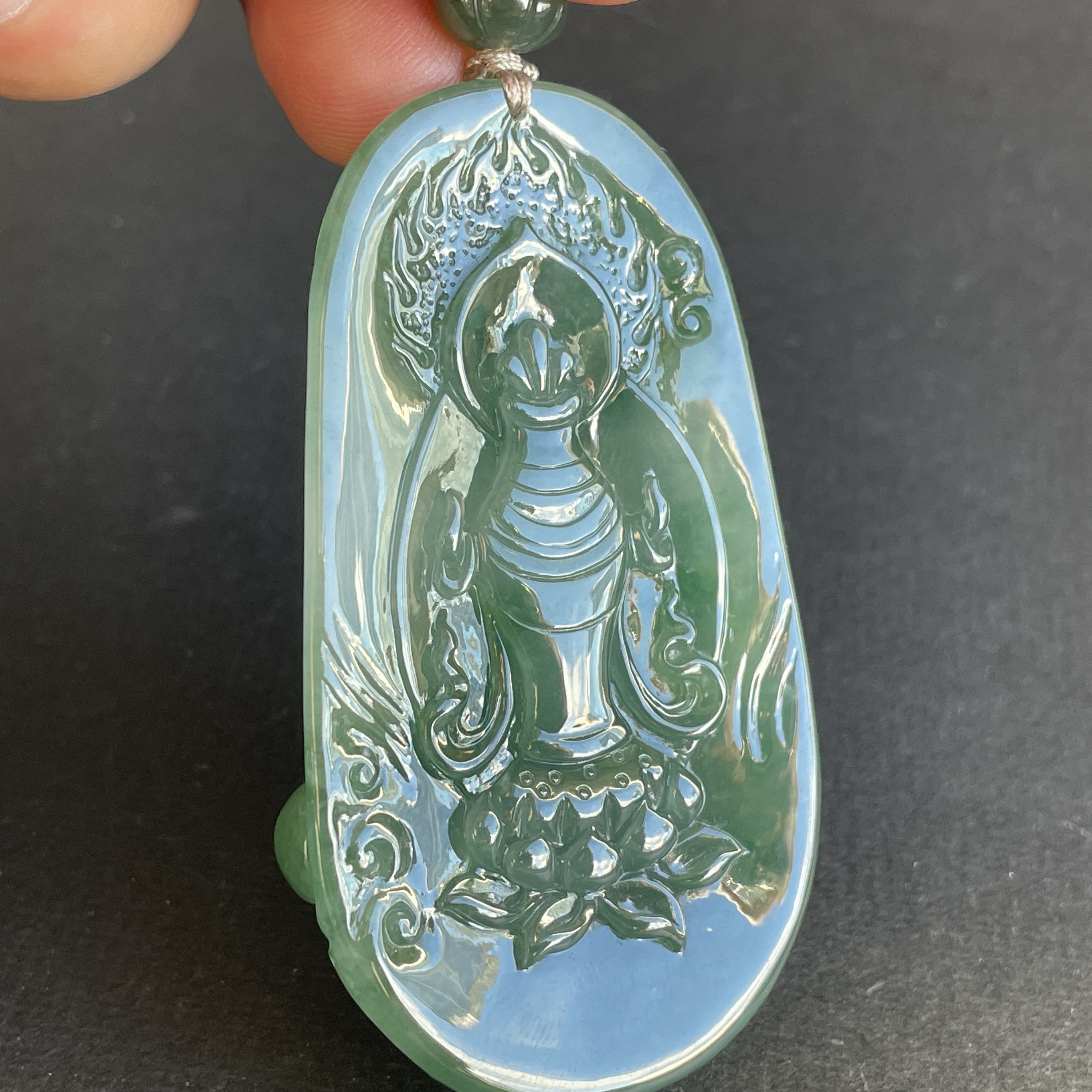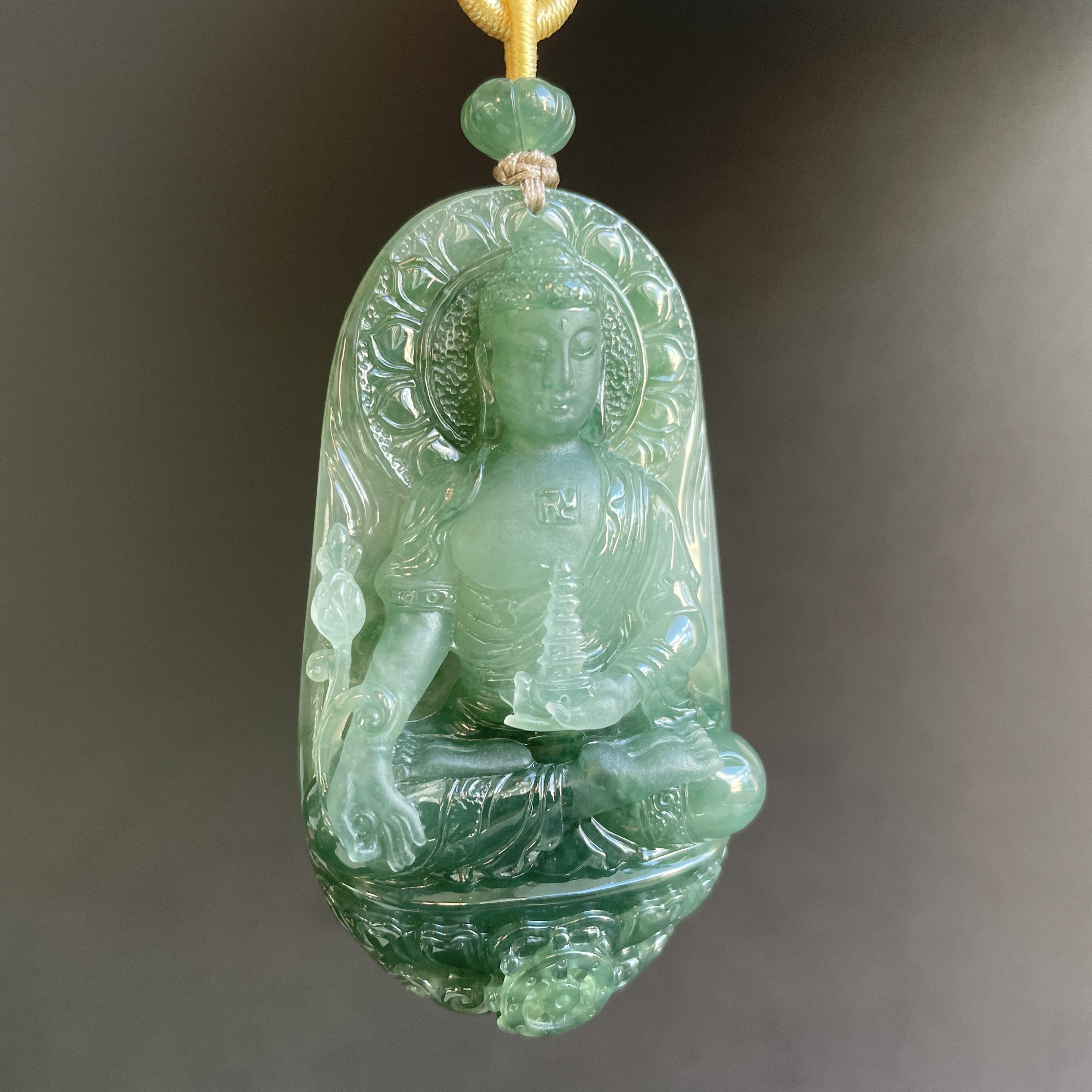 大師精雕作品!稀世翡翠雕琢 —— 藥師佛護身掛件。庇佑安康,淨化心靈,一眼萬年,凝翠於心。