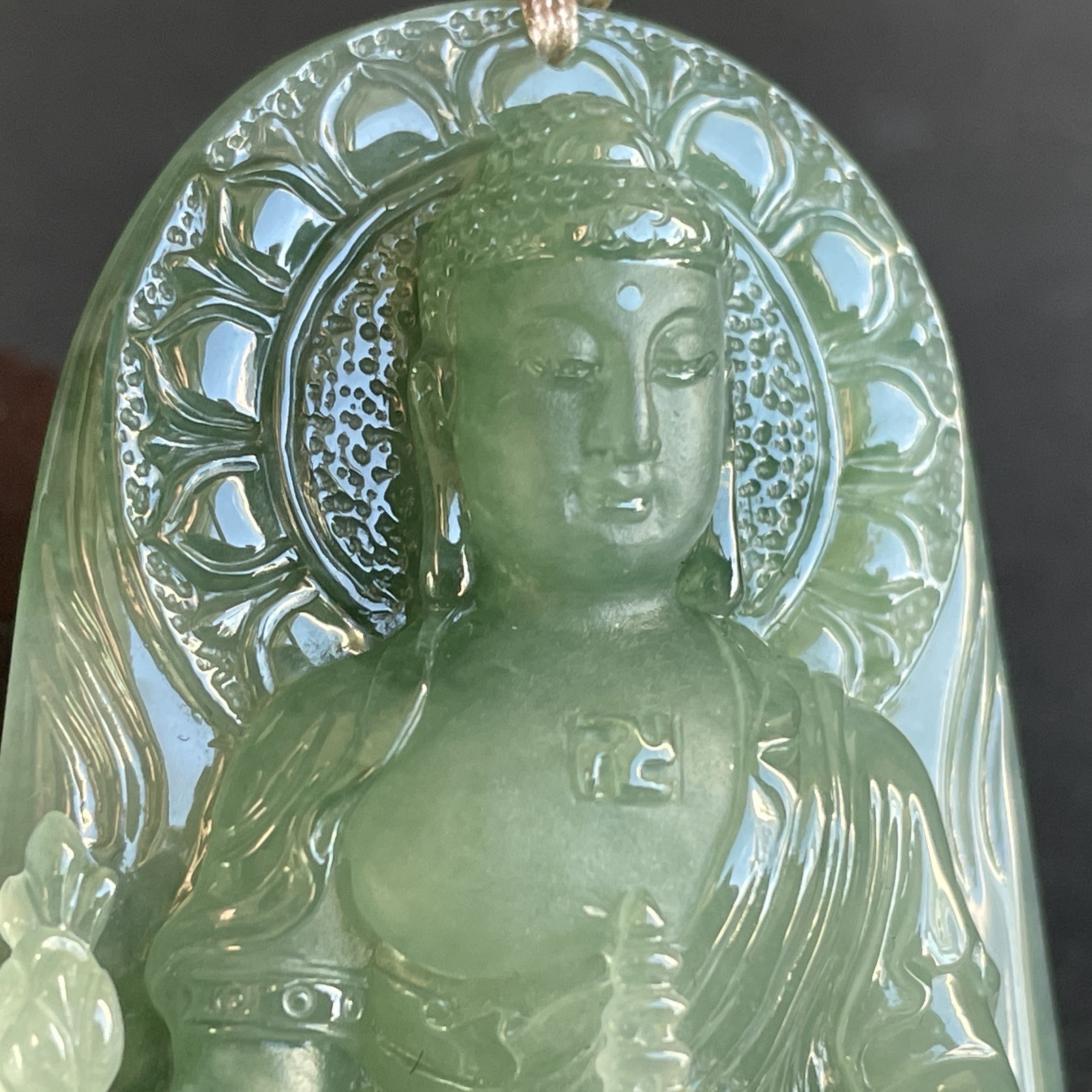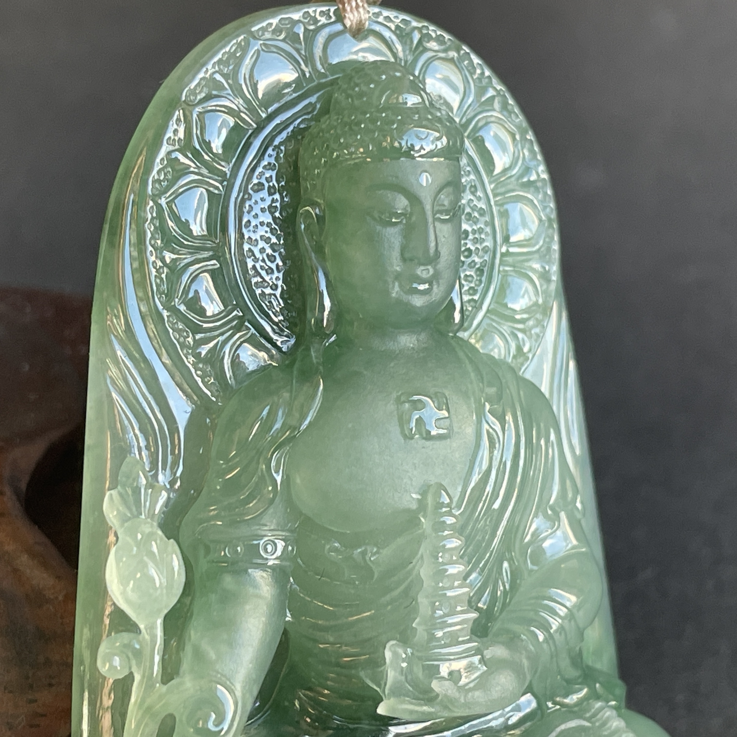 此件翡翠藥師佛掛件,不僅是材質與工藝的結晶,更是一份殊勝的信仰與精神寄託。願有緣人得之,蒙佛光注照,從此生,業障消除,福慧增長,平安喜樂,圓滿吉祥。