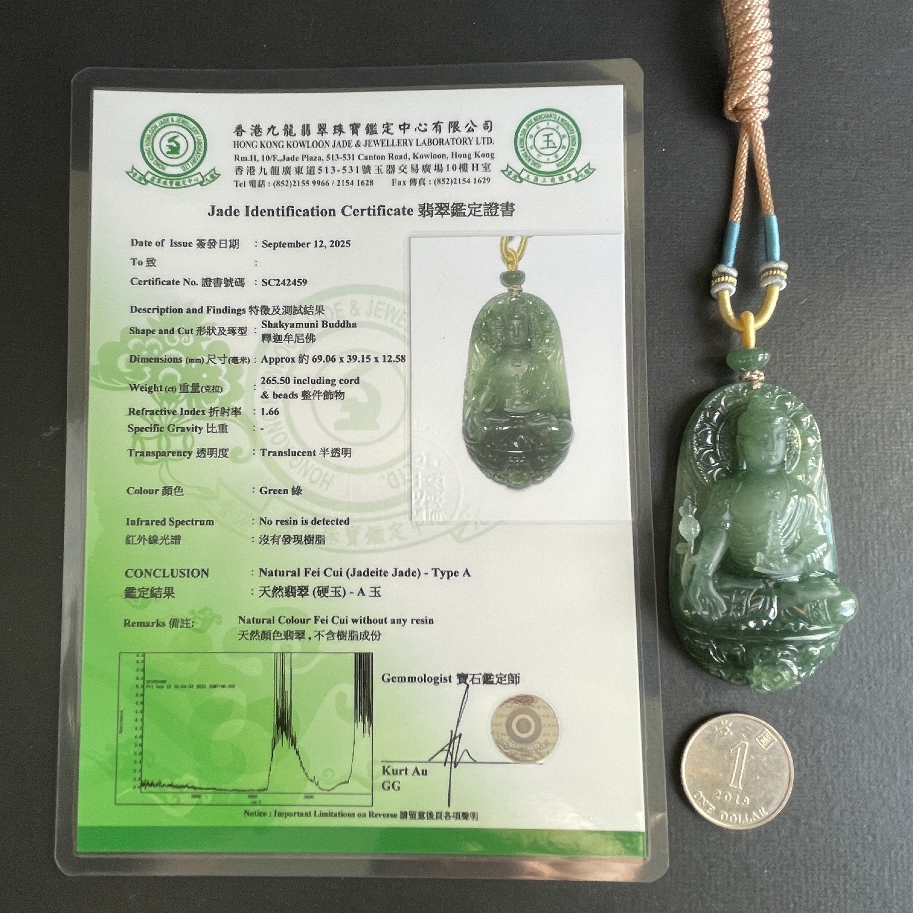 完美無紋裂。已辦香港翡翠鑑証書。
