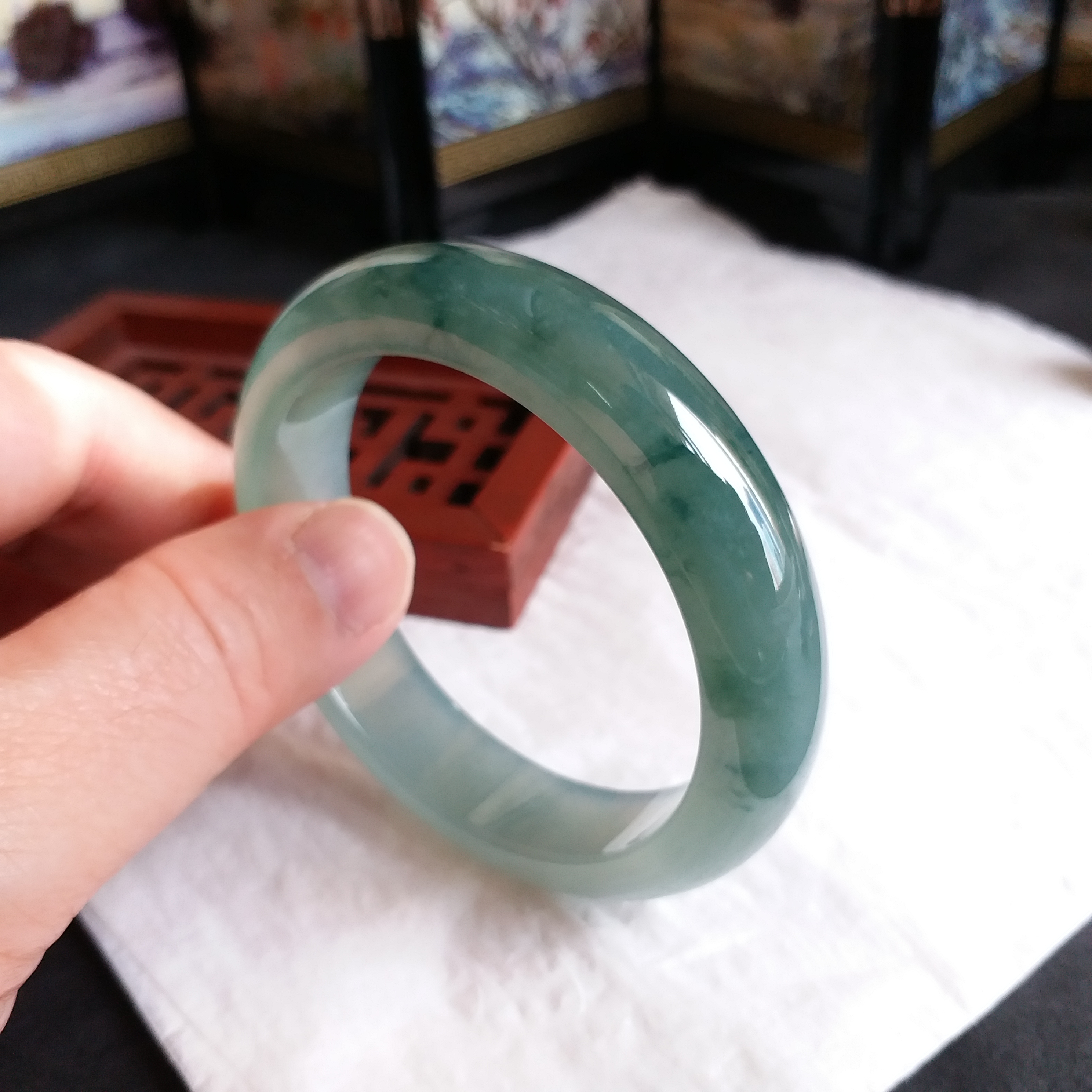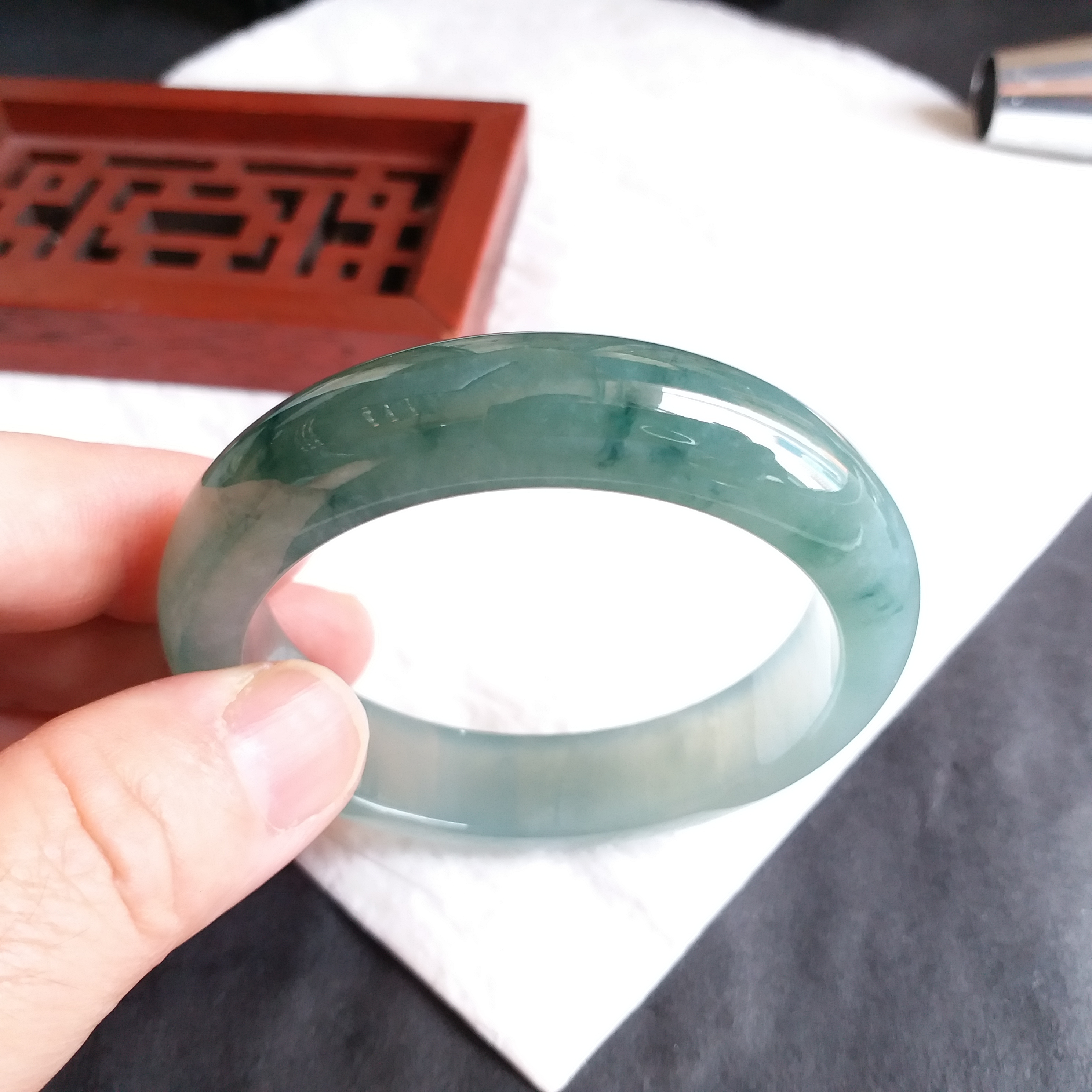 - 天然玉石在不同光線下,會呈現出不同的顏色變化;