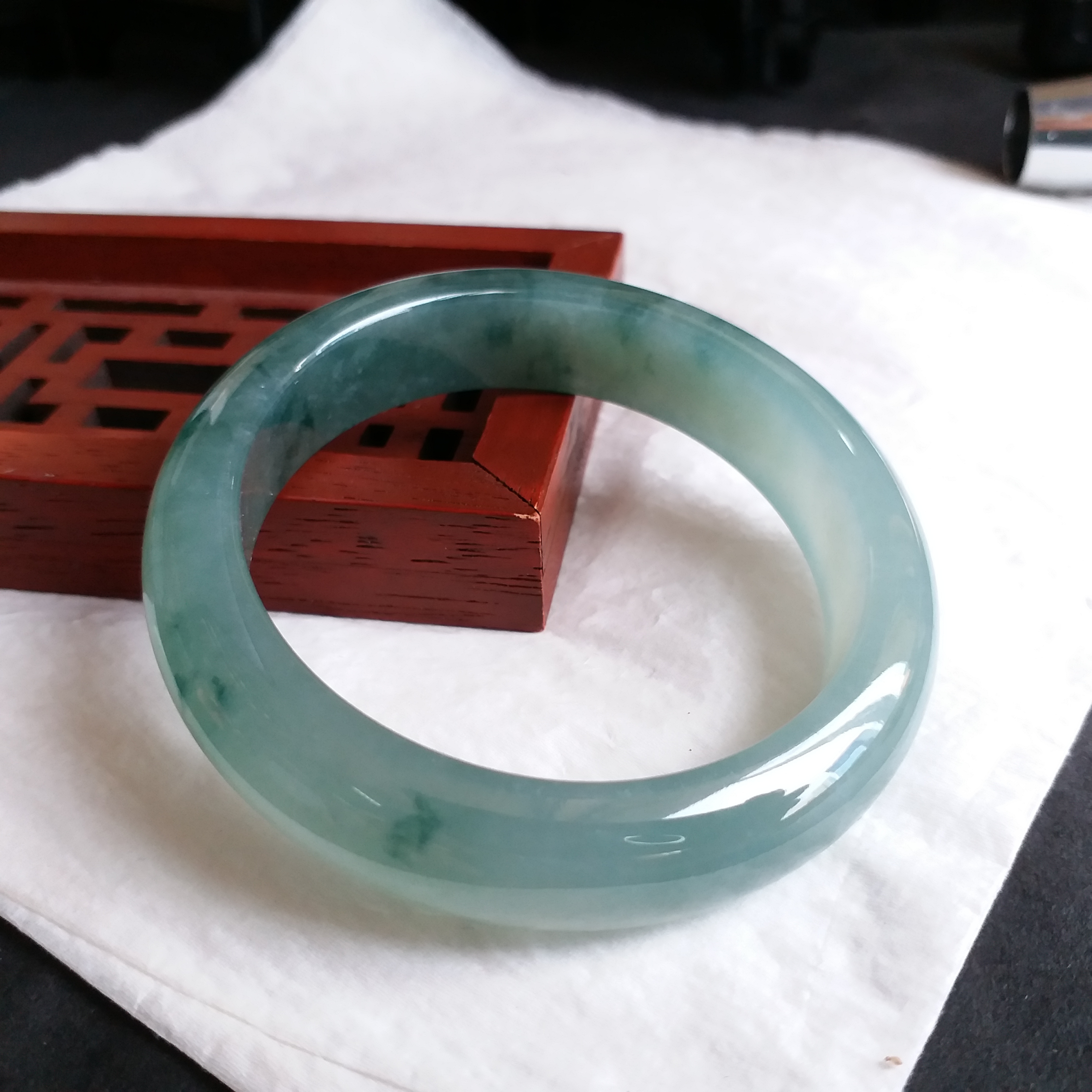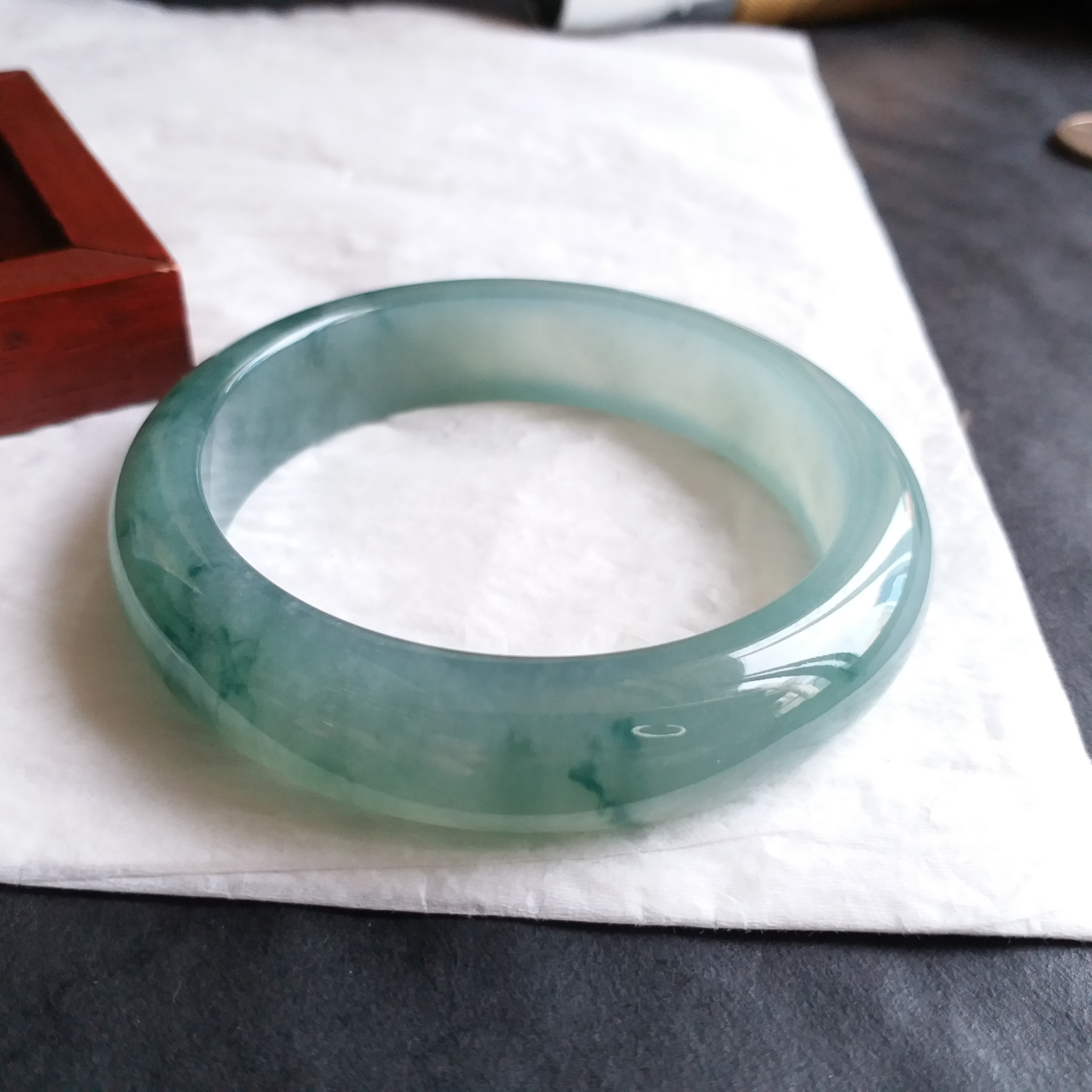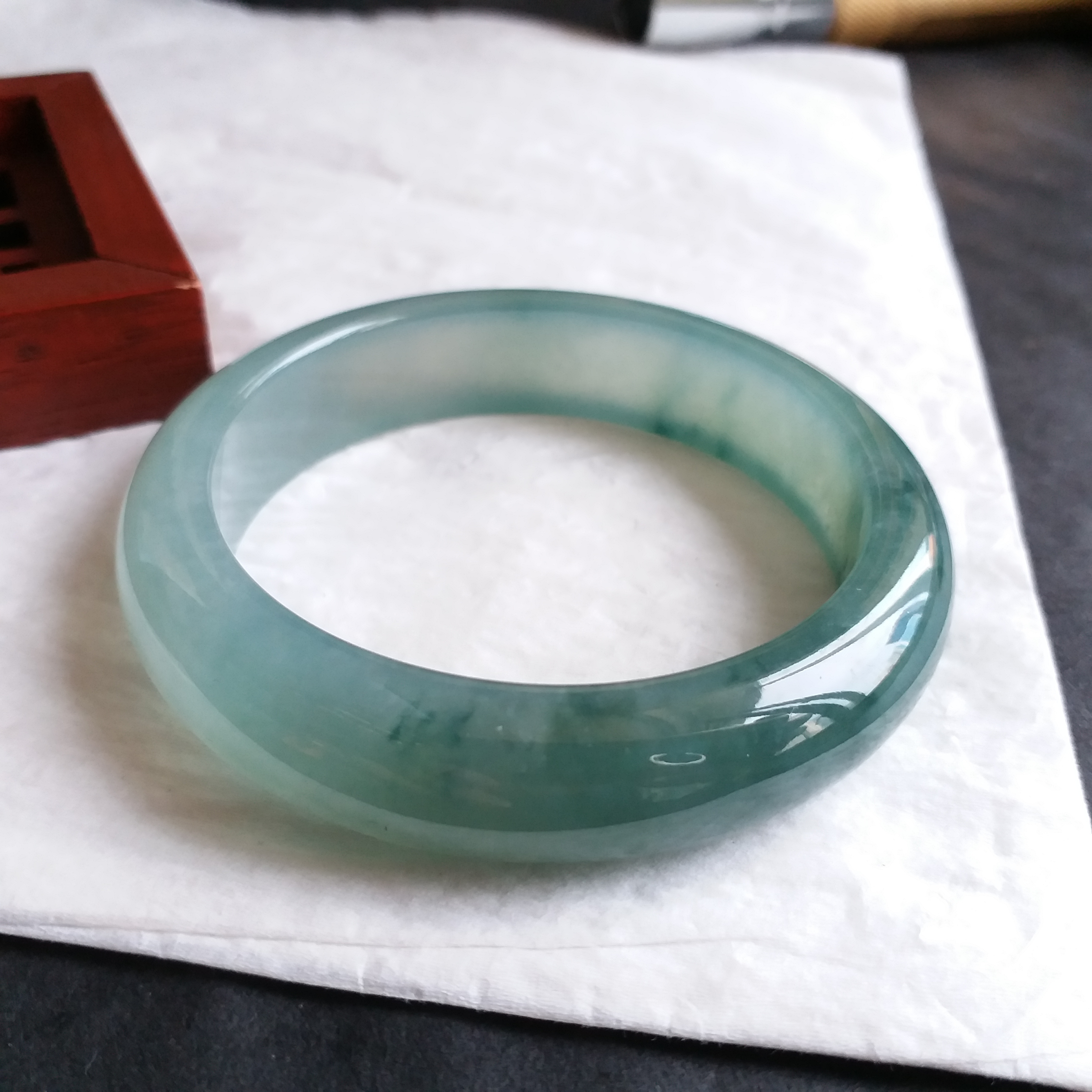 • 冰種綠飄花福鐲 53.7mm, 天然翡翠A玉, 緬甸玉, Jade, Jadeite