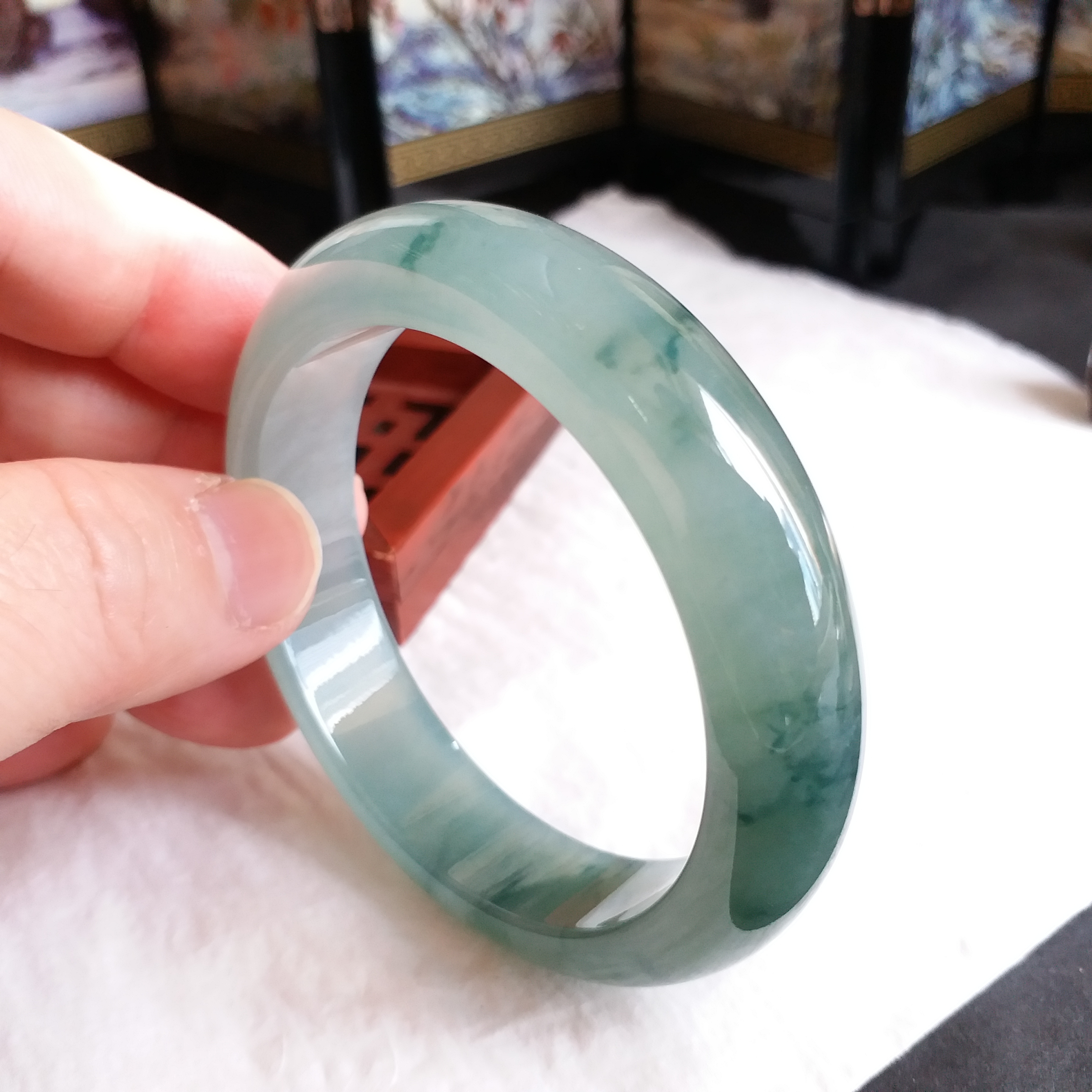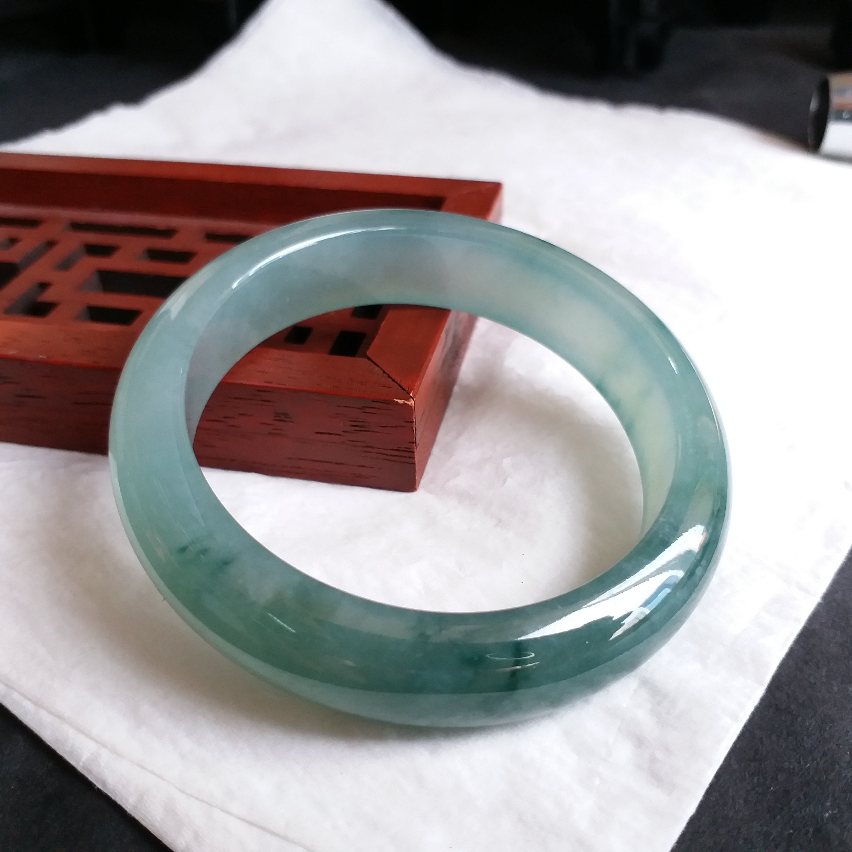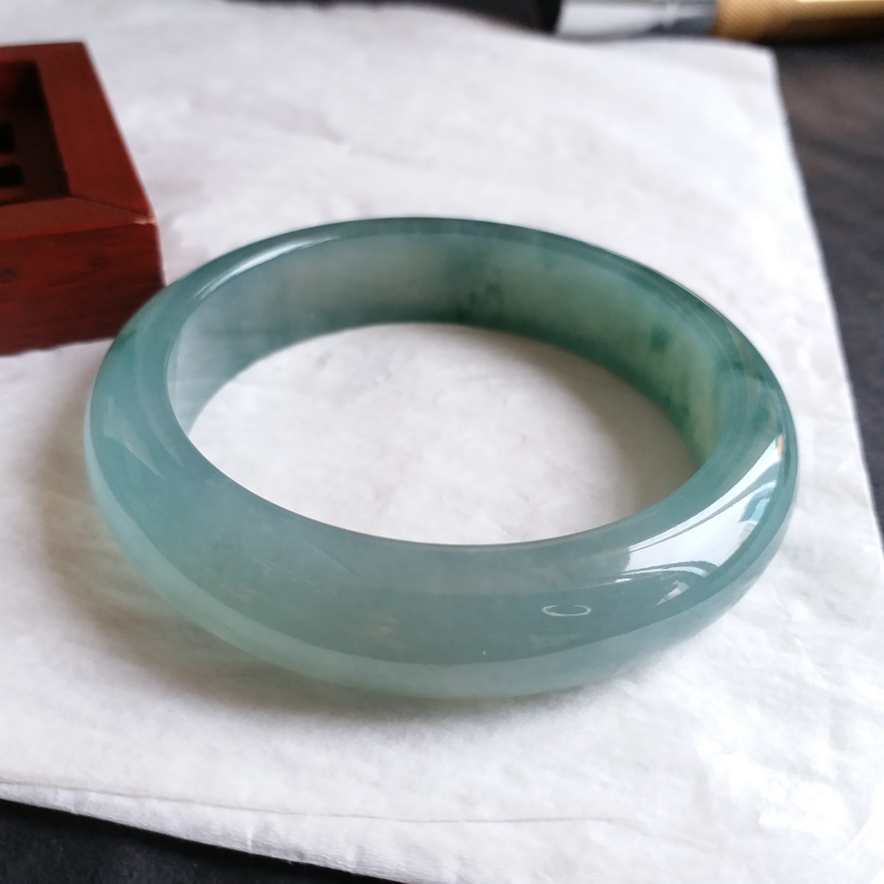 • 冰種綠飄花福鐲 53.7mm, 天然翡翠A玉, 緬甸玉, Jade, Jadeite