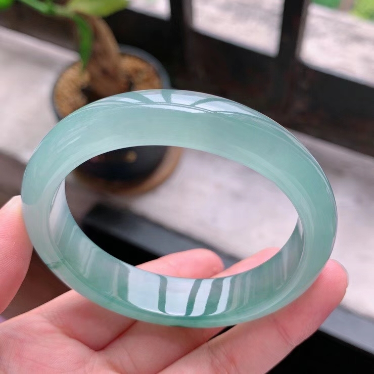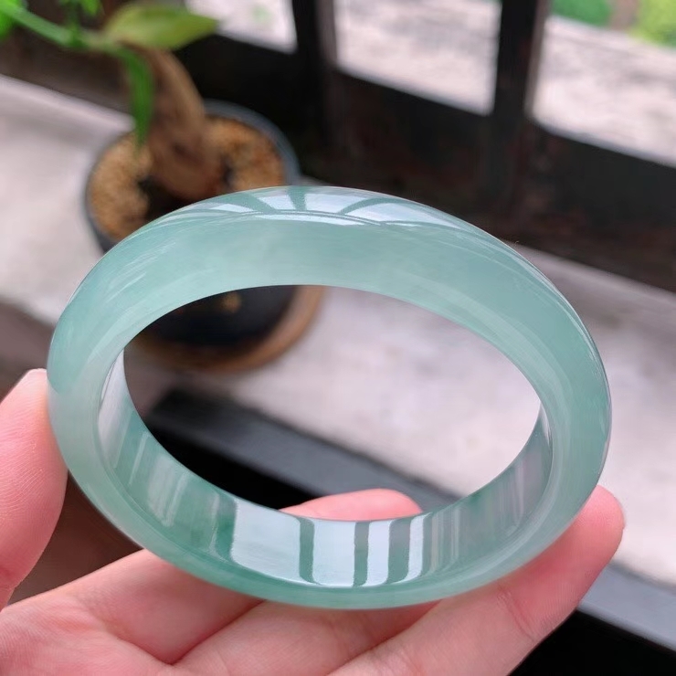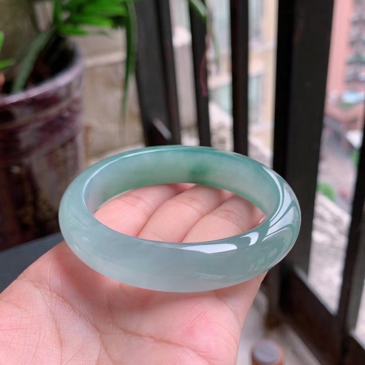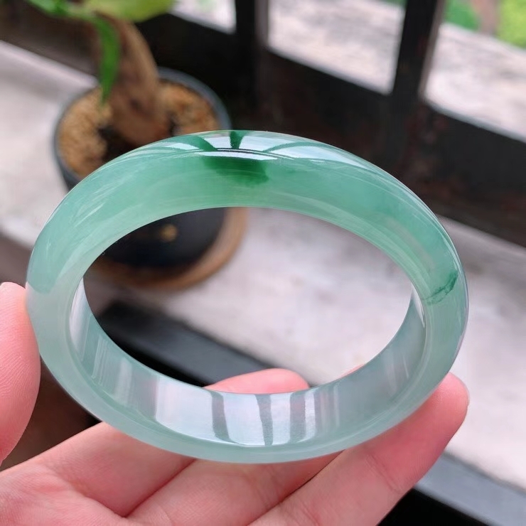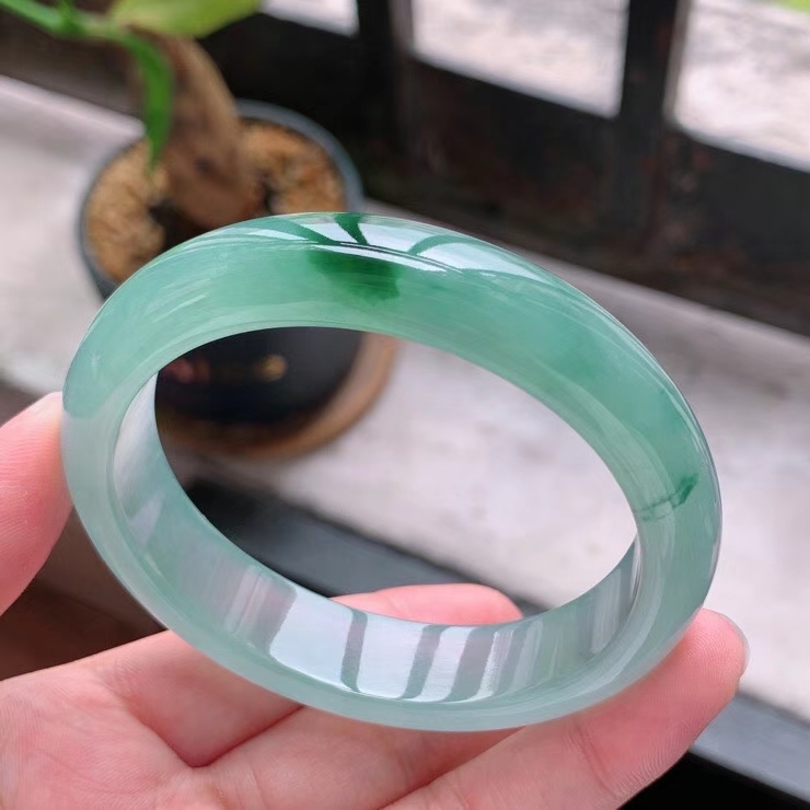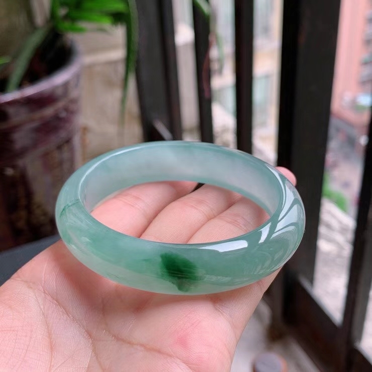 J328454 冰種綠飄花費妃玉鐲 53mm (1.43)