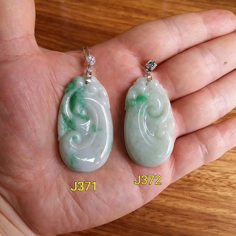 J371 冰糯白底青玉如意吊墜