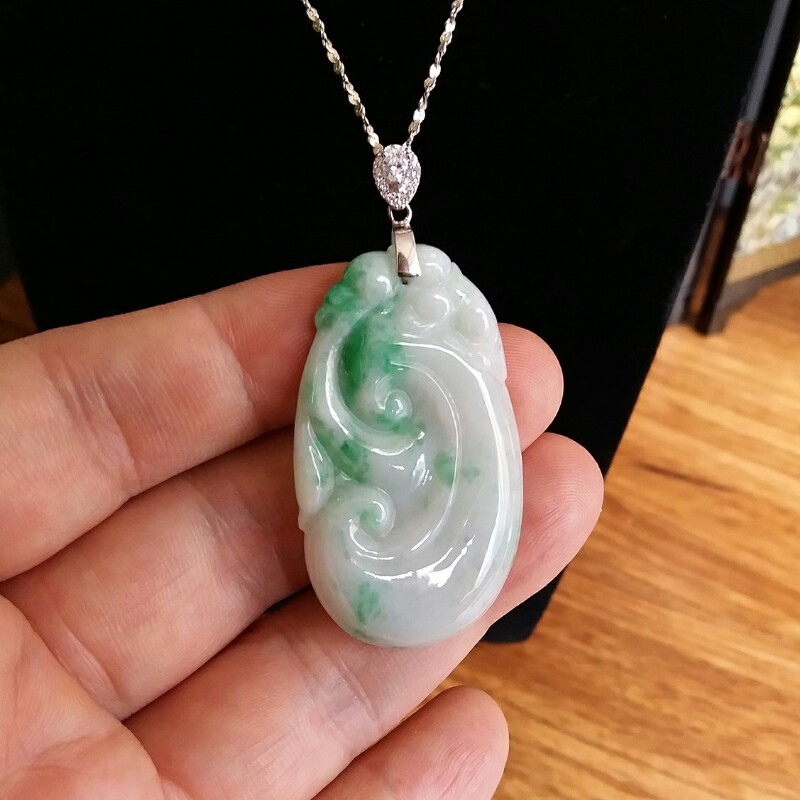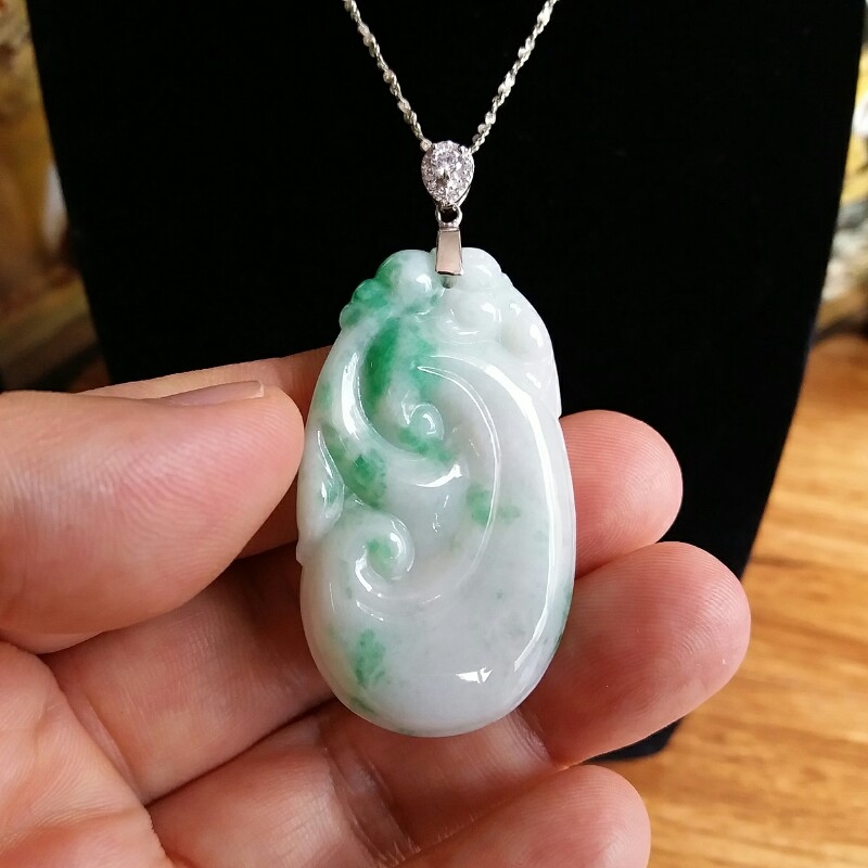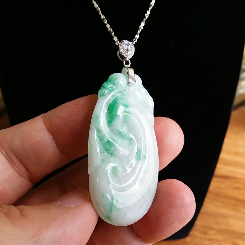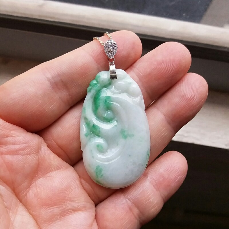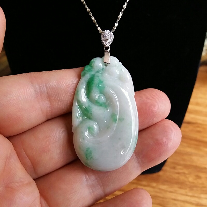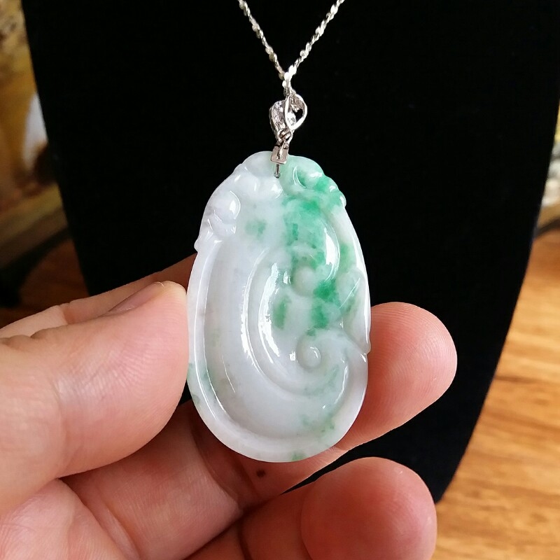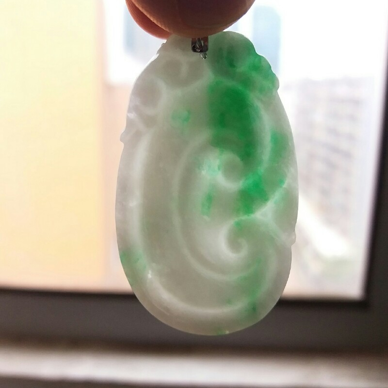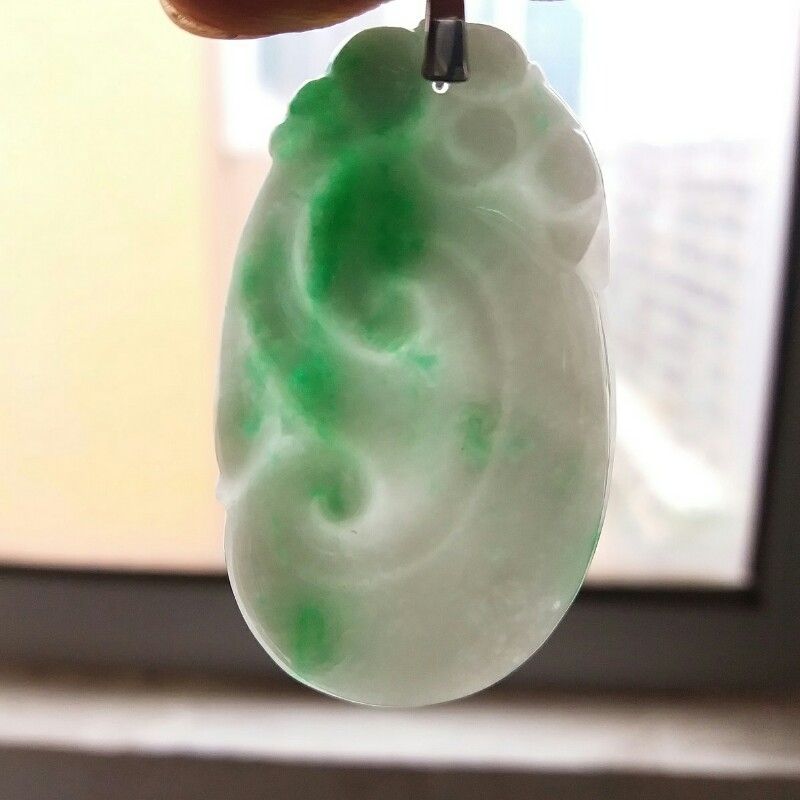 • 冰糯白底青玉如意吊墜, 天然翡翠A玉, 緬甸玉, Jade, Jadeite