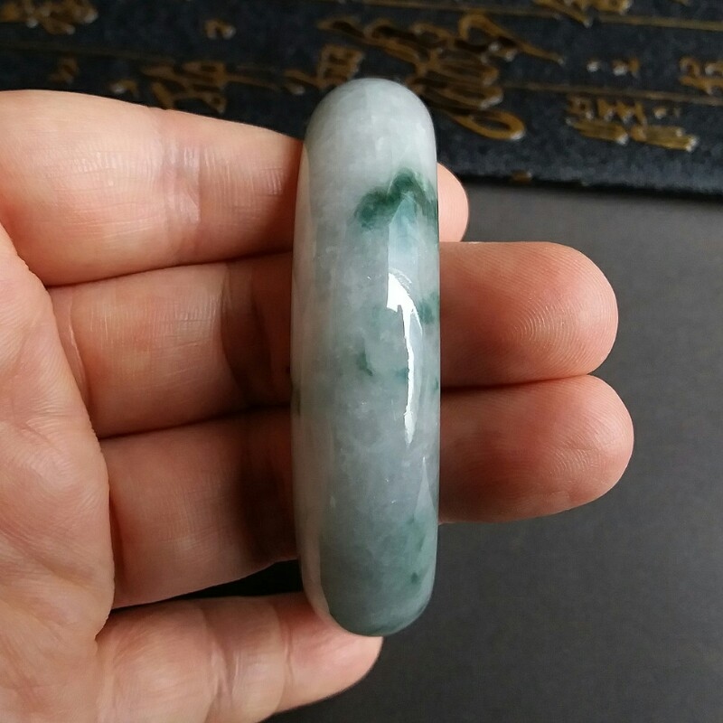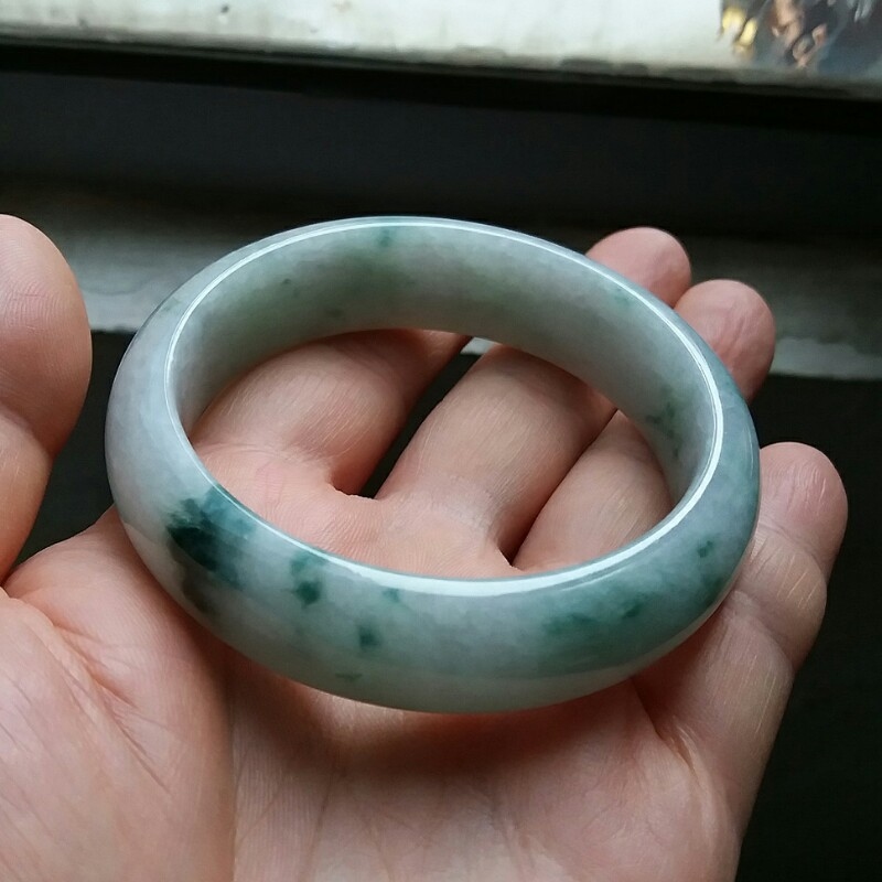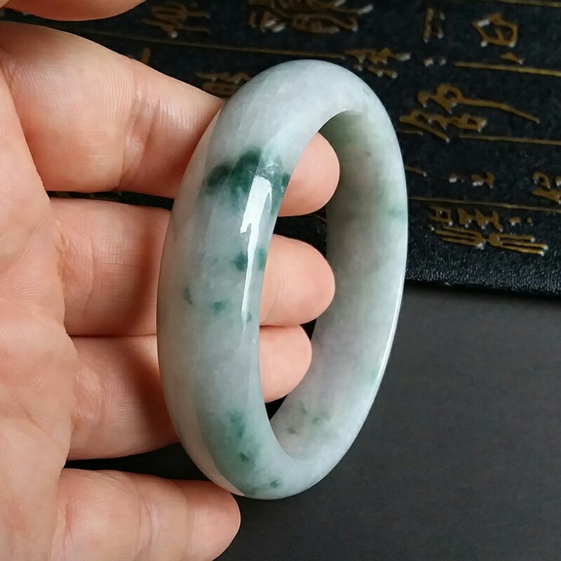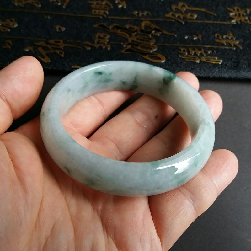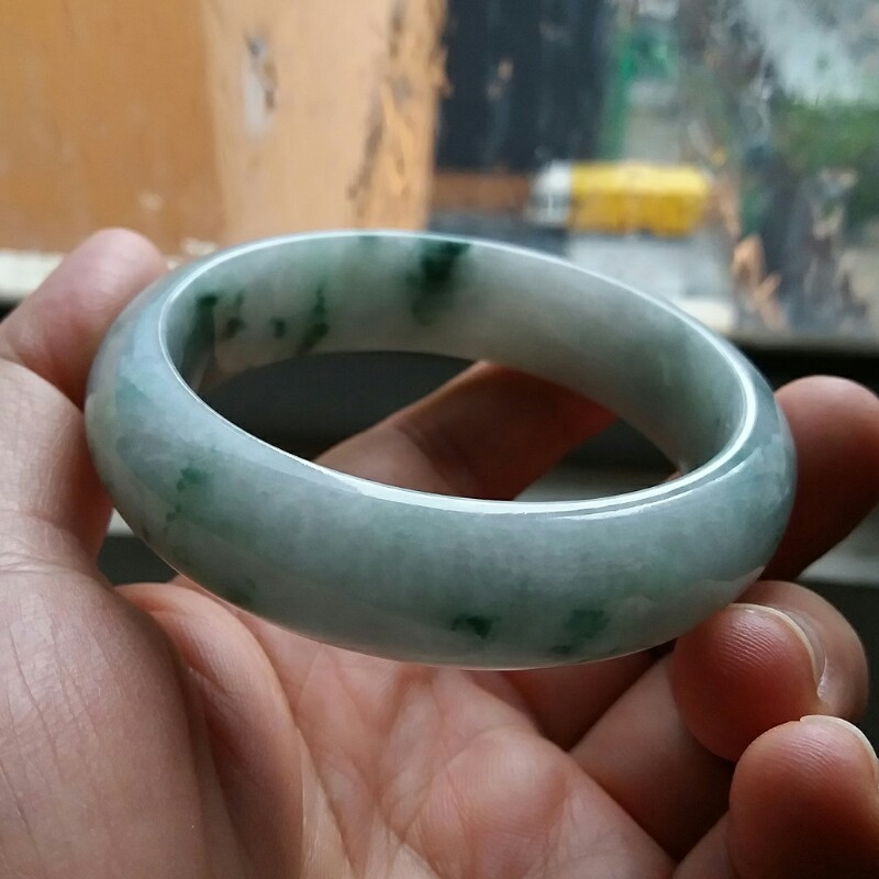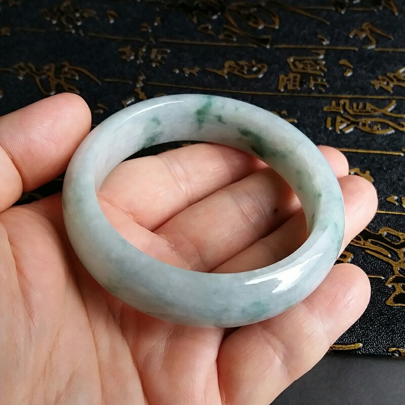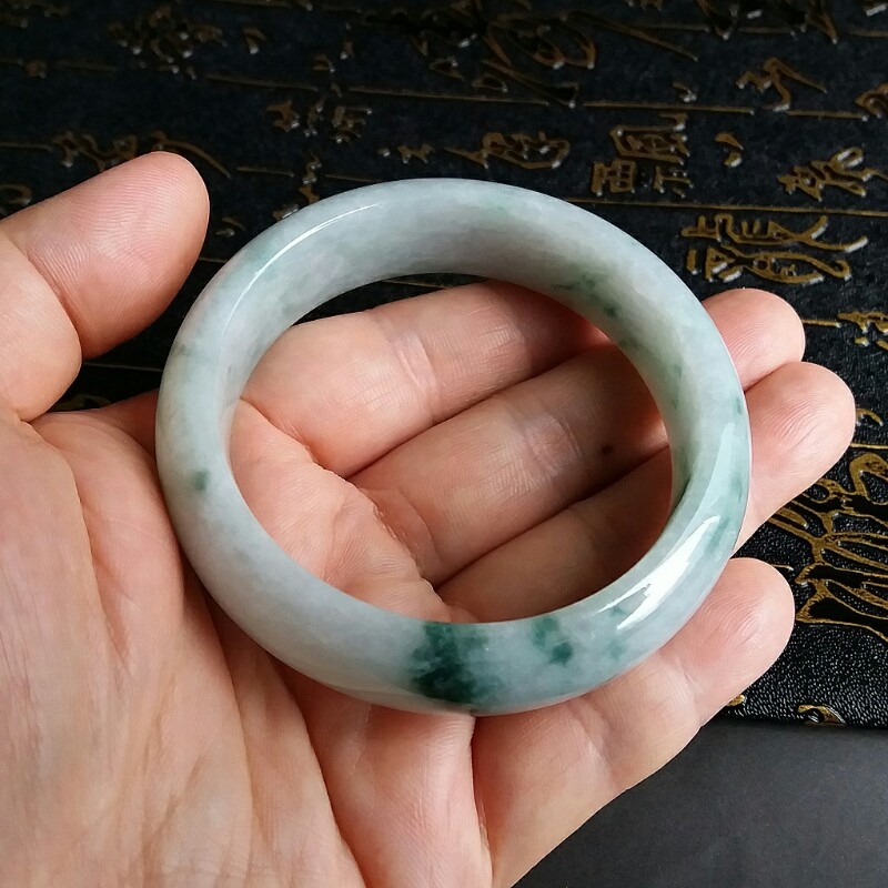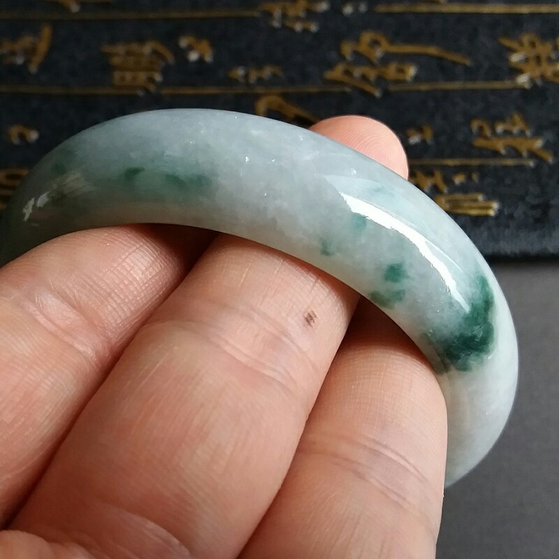 • 冰糯飄綠花玉鐲 57mm, 天然翡翠A玉, 緬甸玉, Jade, Jadeite