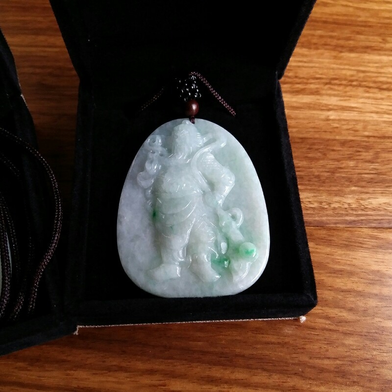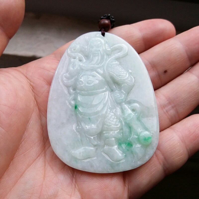 • 冰糯飄綠關公(武財神)吊墜, 天然翡翠A玉, 緬甸玉, Jade, Jadeite