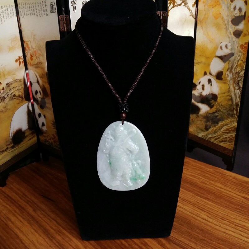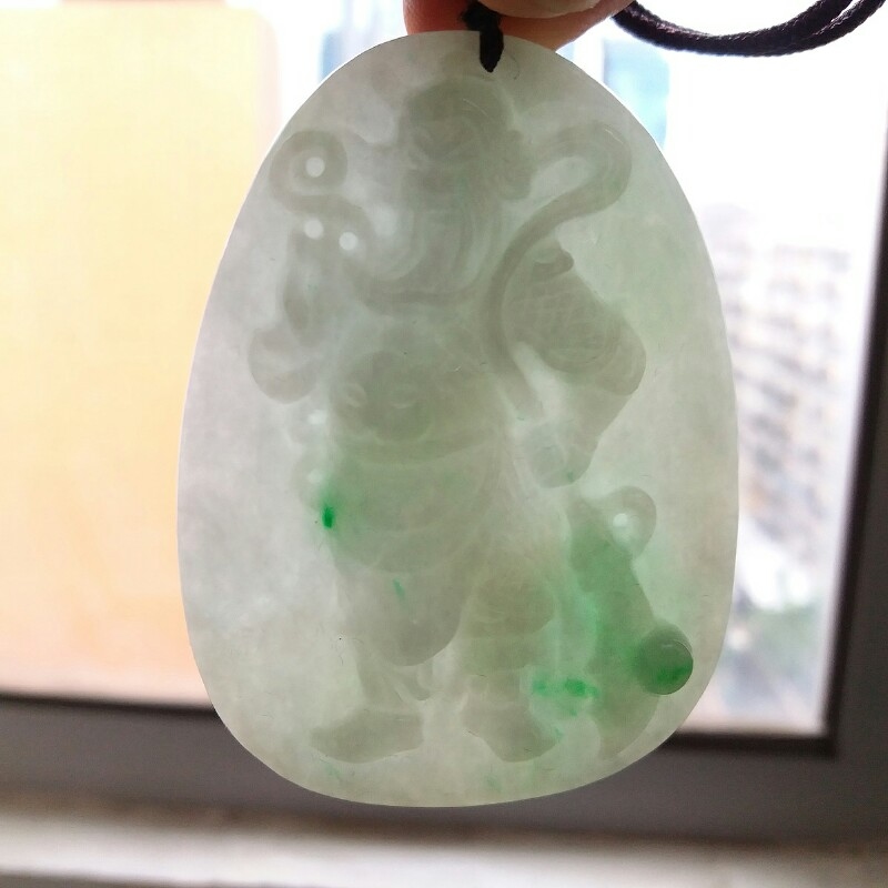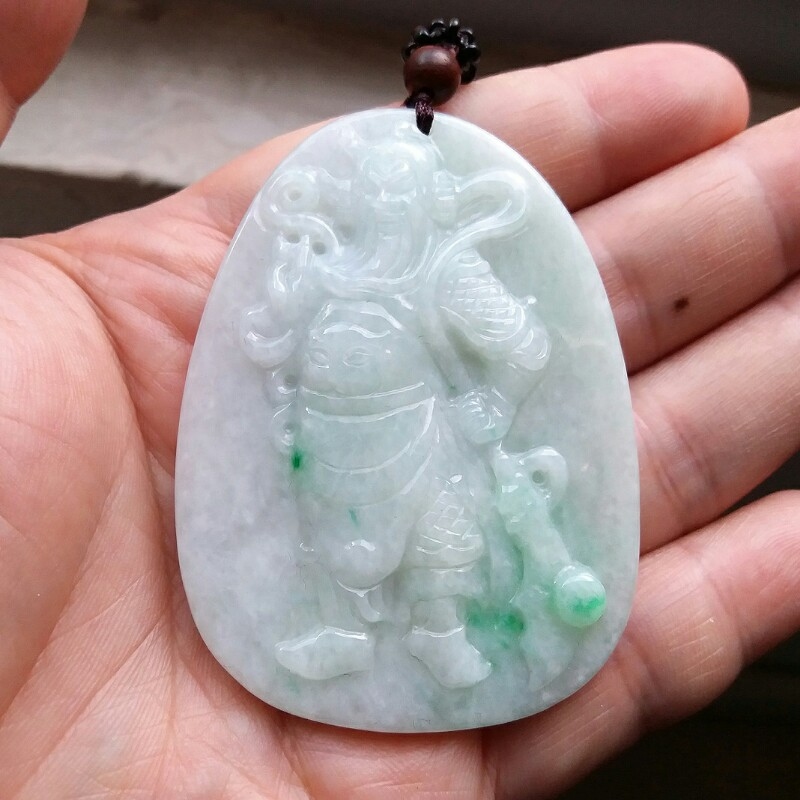 J469 冰糯飄綠關公(武財神)吊墜