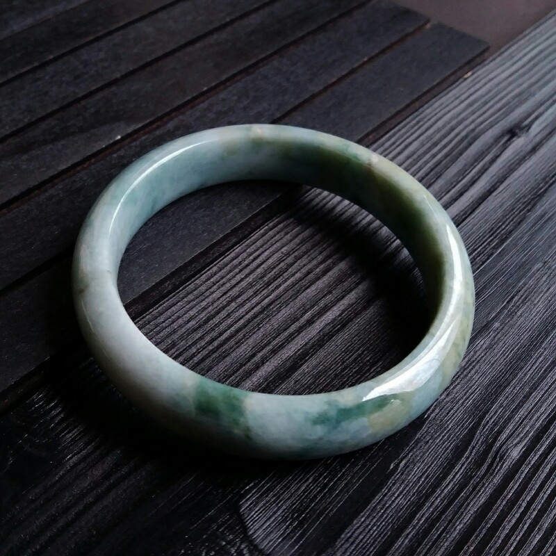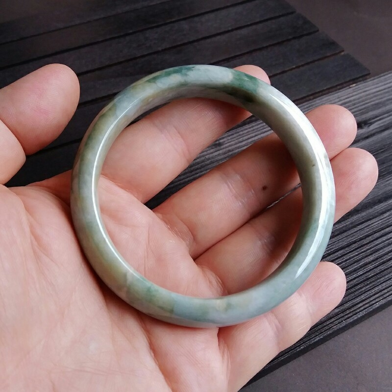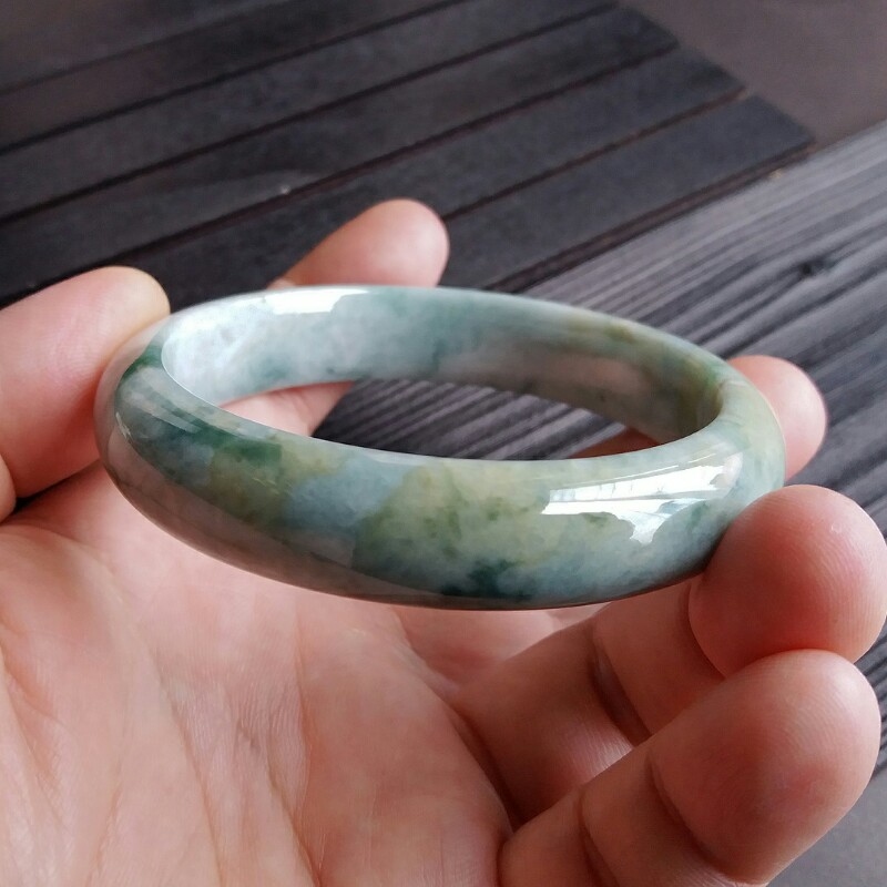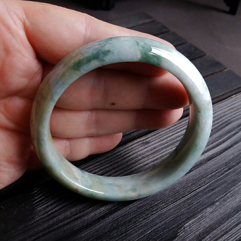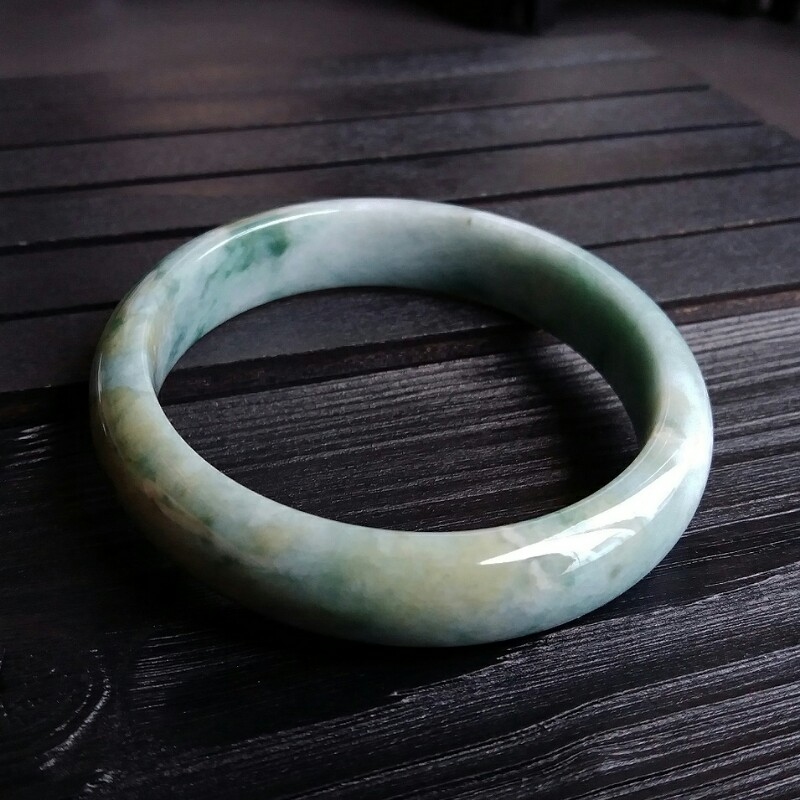• 冰糯花青帶黃翡玉鐲 60mm, 天然翡翠A玉, 緬甸玉, Jade, Jadeite