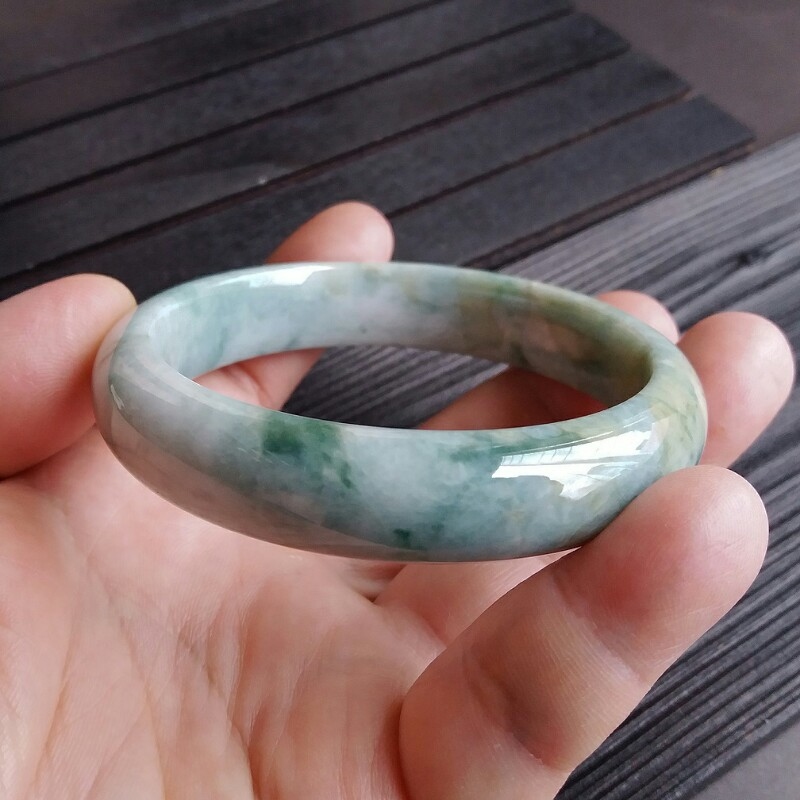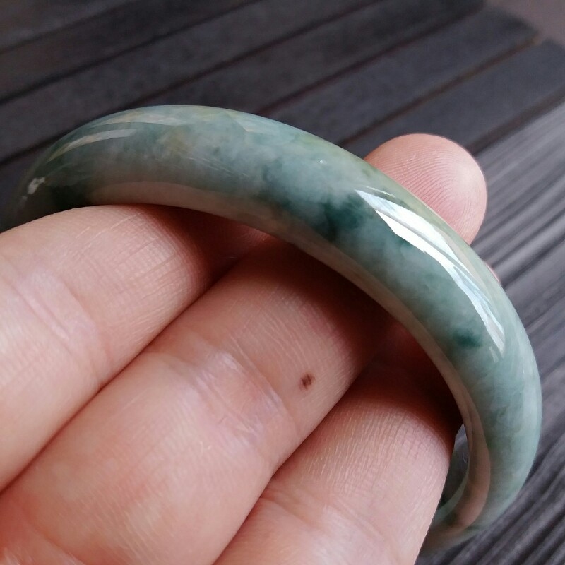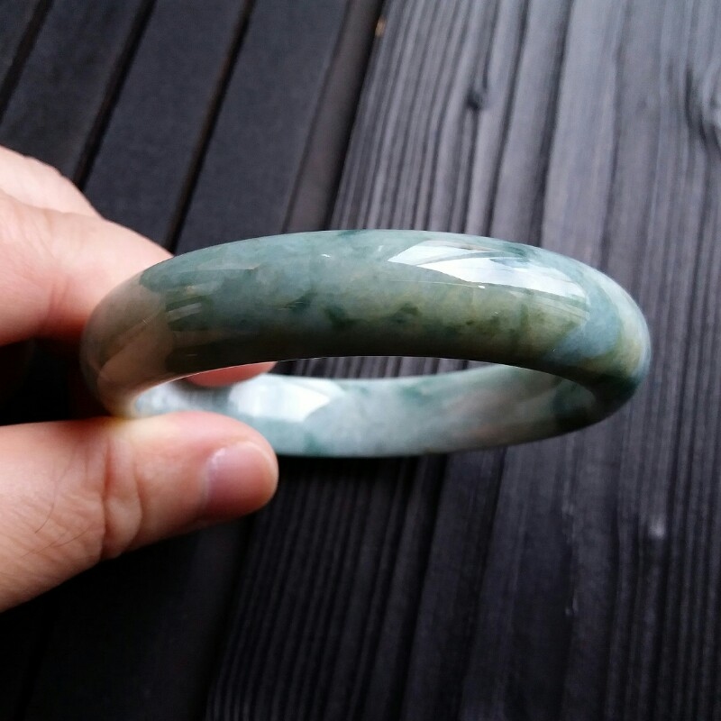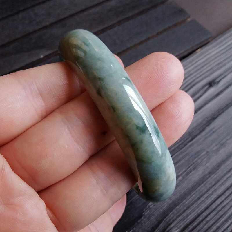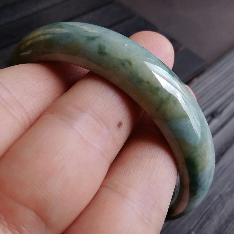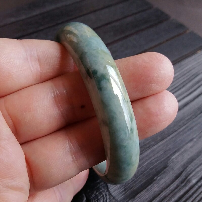 • 冰糯花青帶黃翡玉鐲 60mm, 天然翡翠A玉, 緬甸玉, Jade, Jadeite