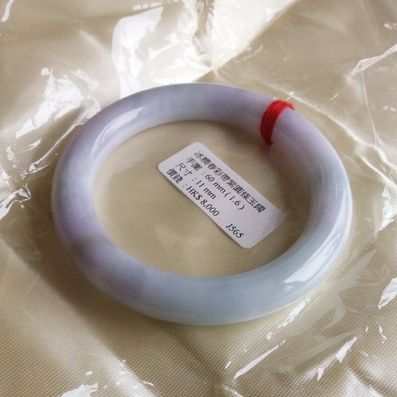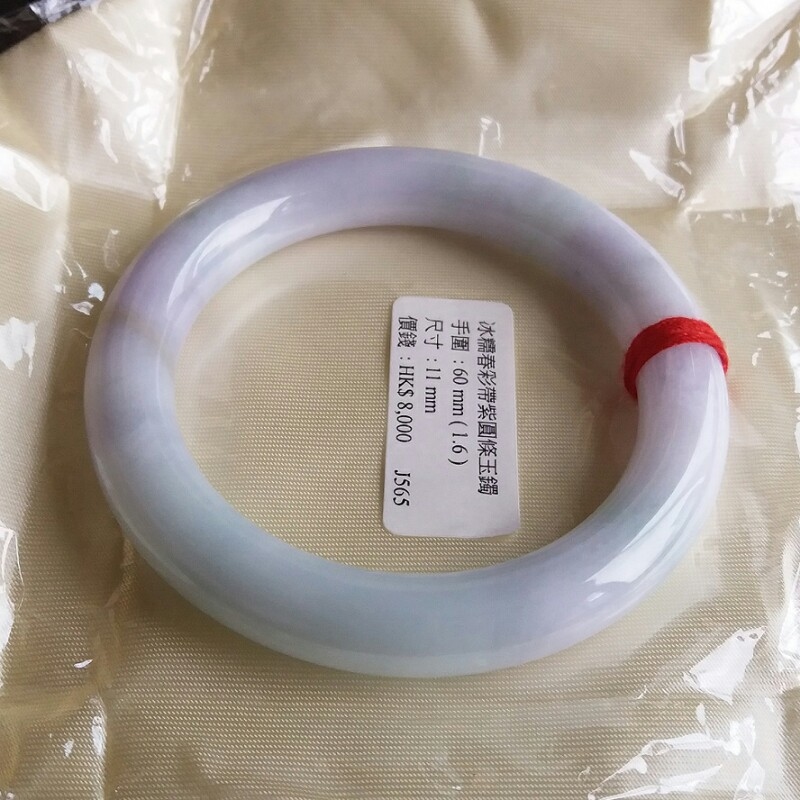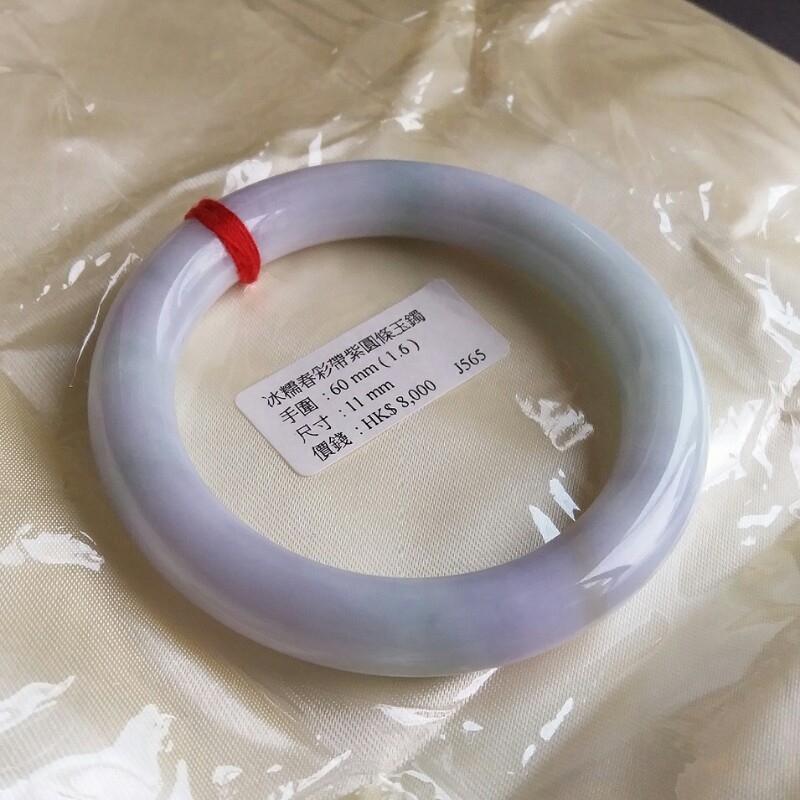 J565 冰糯春彩帶紫圓條玉鐲 60mm (1.6)