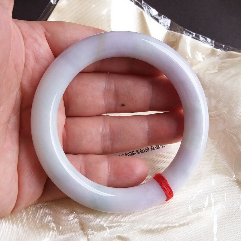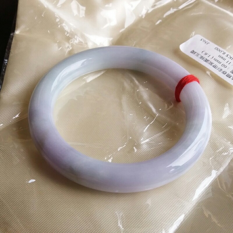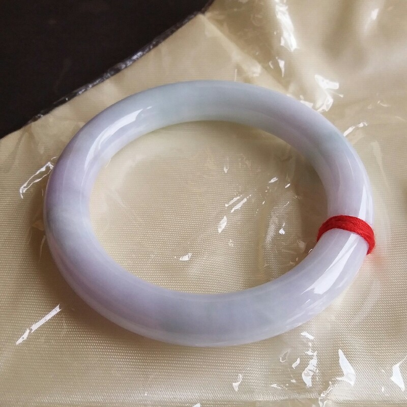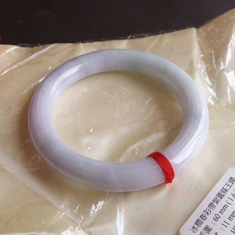 • 冰糯春彩帶紫圓條玉鐲 60mm, 天然翡翠A玉, 緬甸玉, Jade, Jadeite