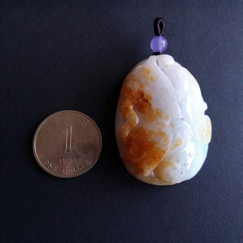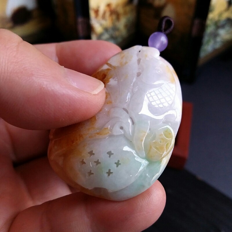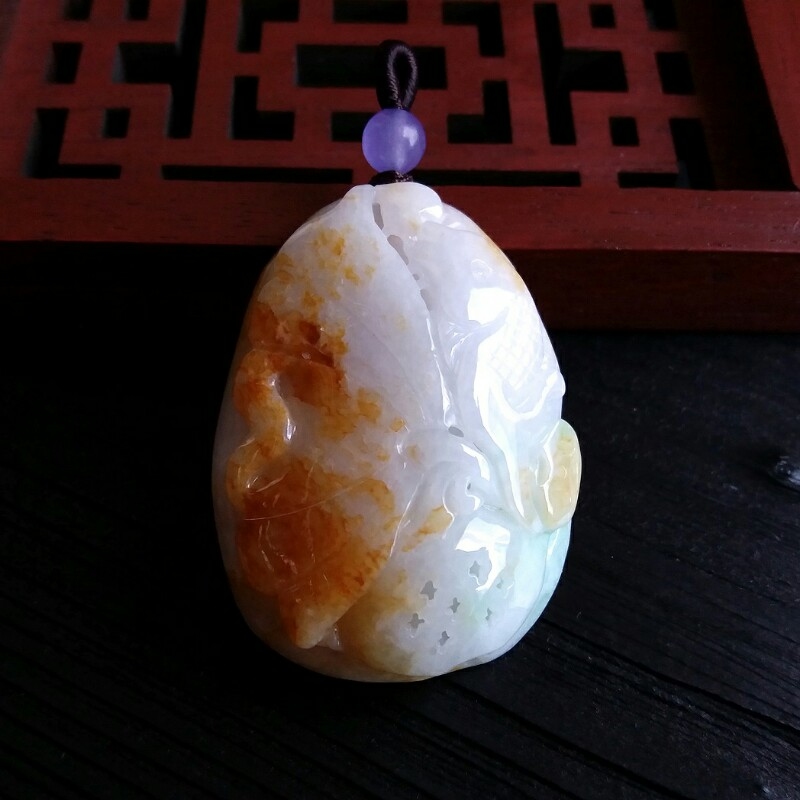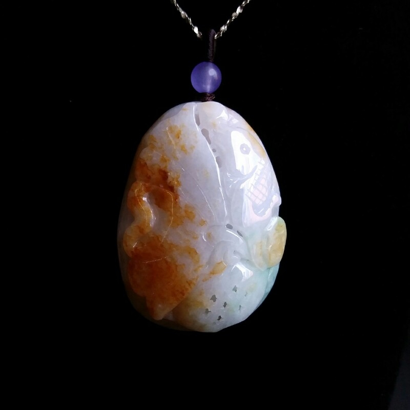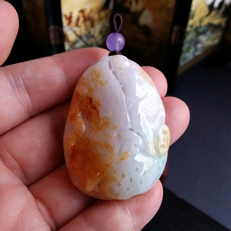 • 冰糯三彩縷空雕年年有魚吊墜, 天然翡翠A玉, 緬甸玉, Jade, Jadeite