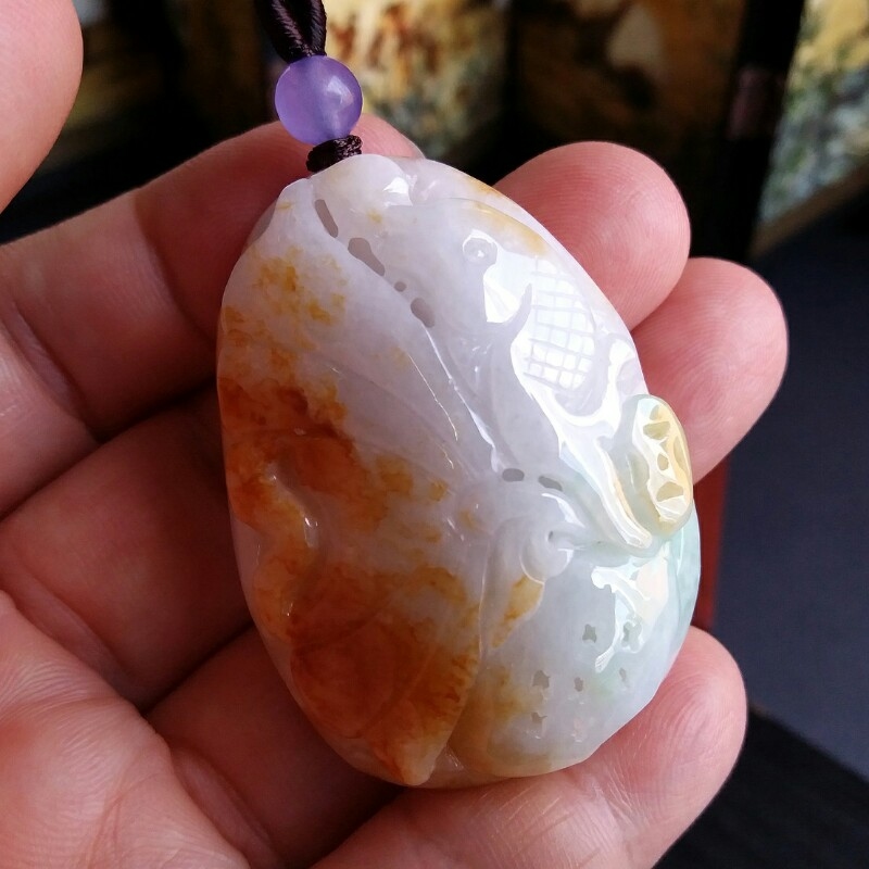 J643F 冰糯三彩縷空雕年年有魚吊墜