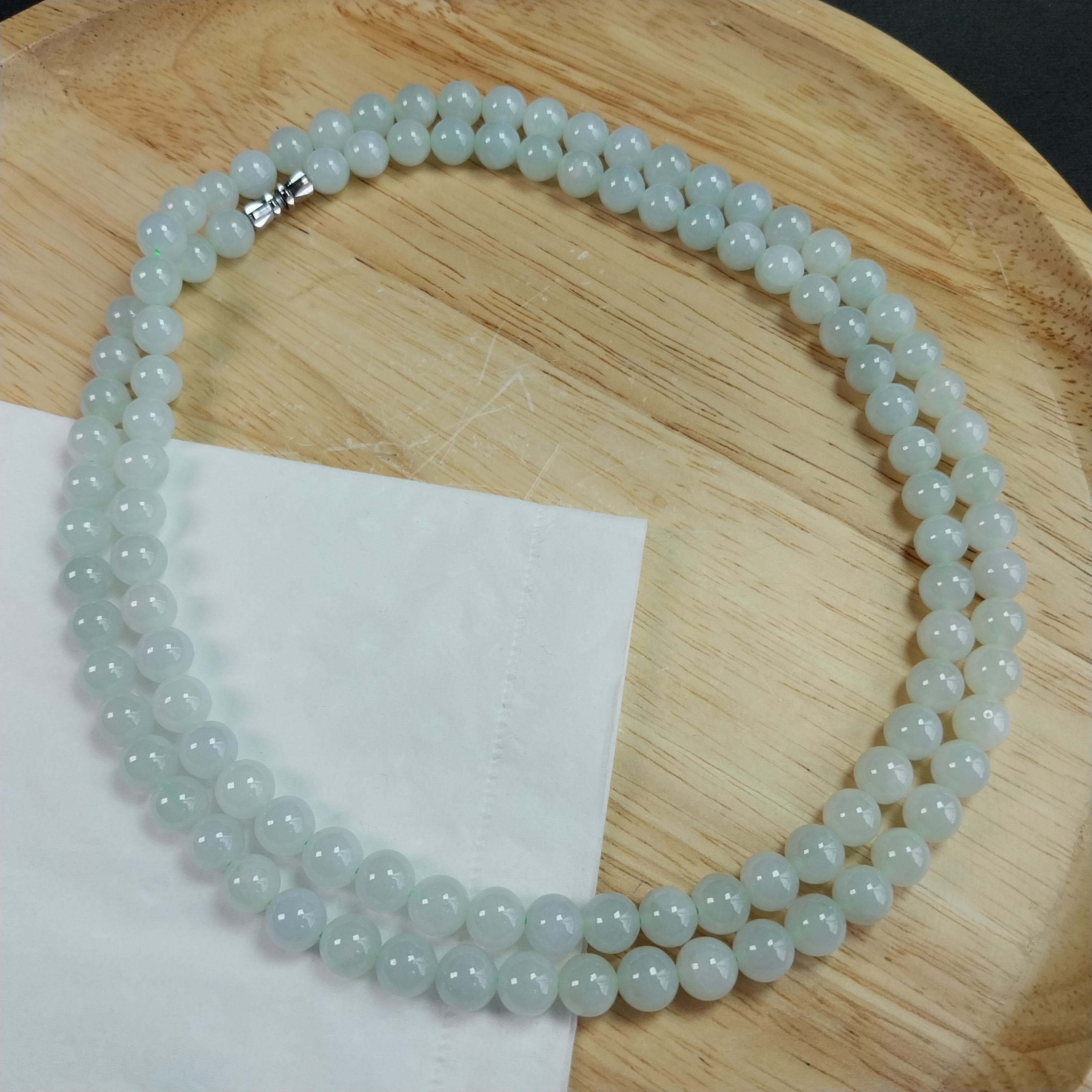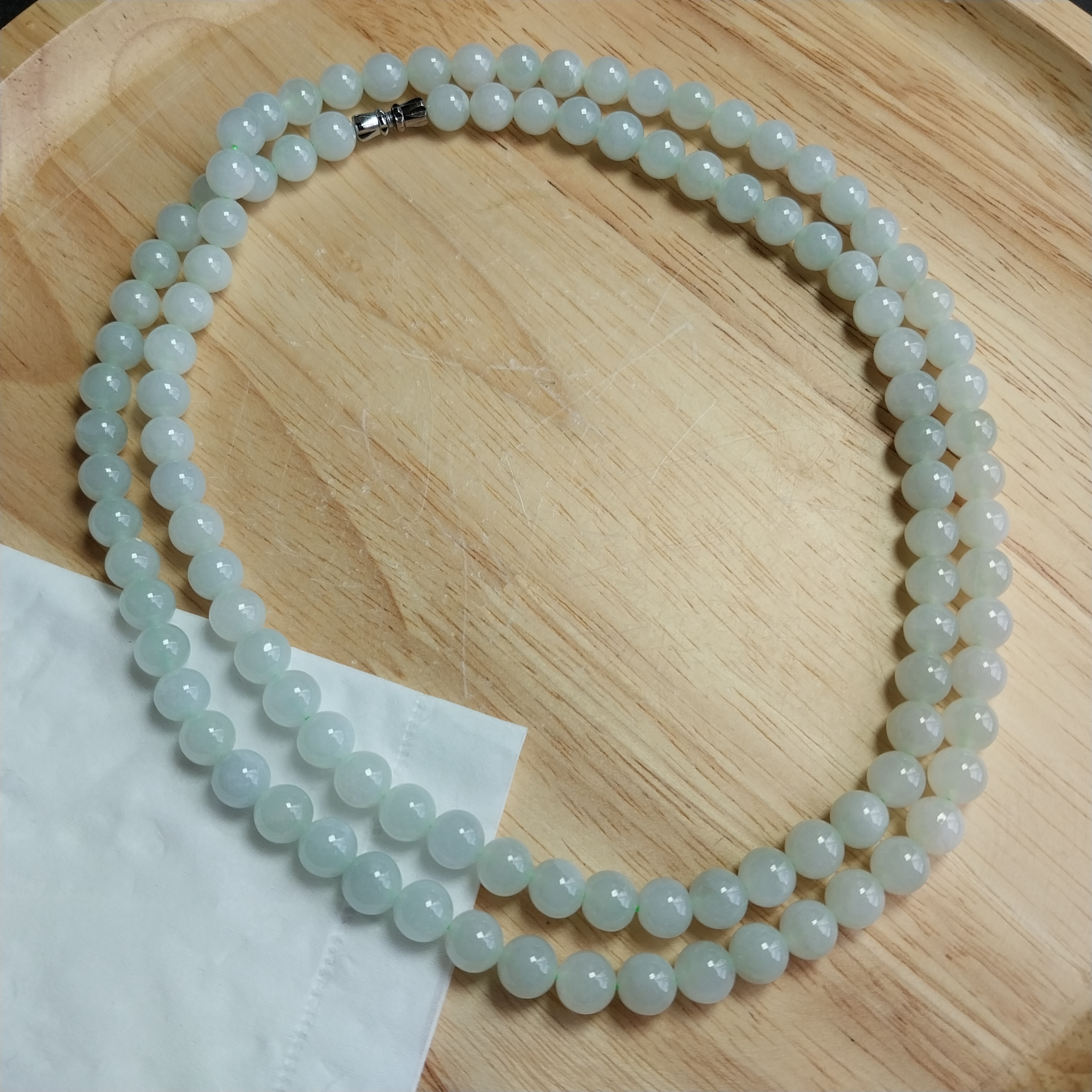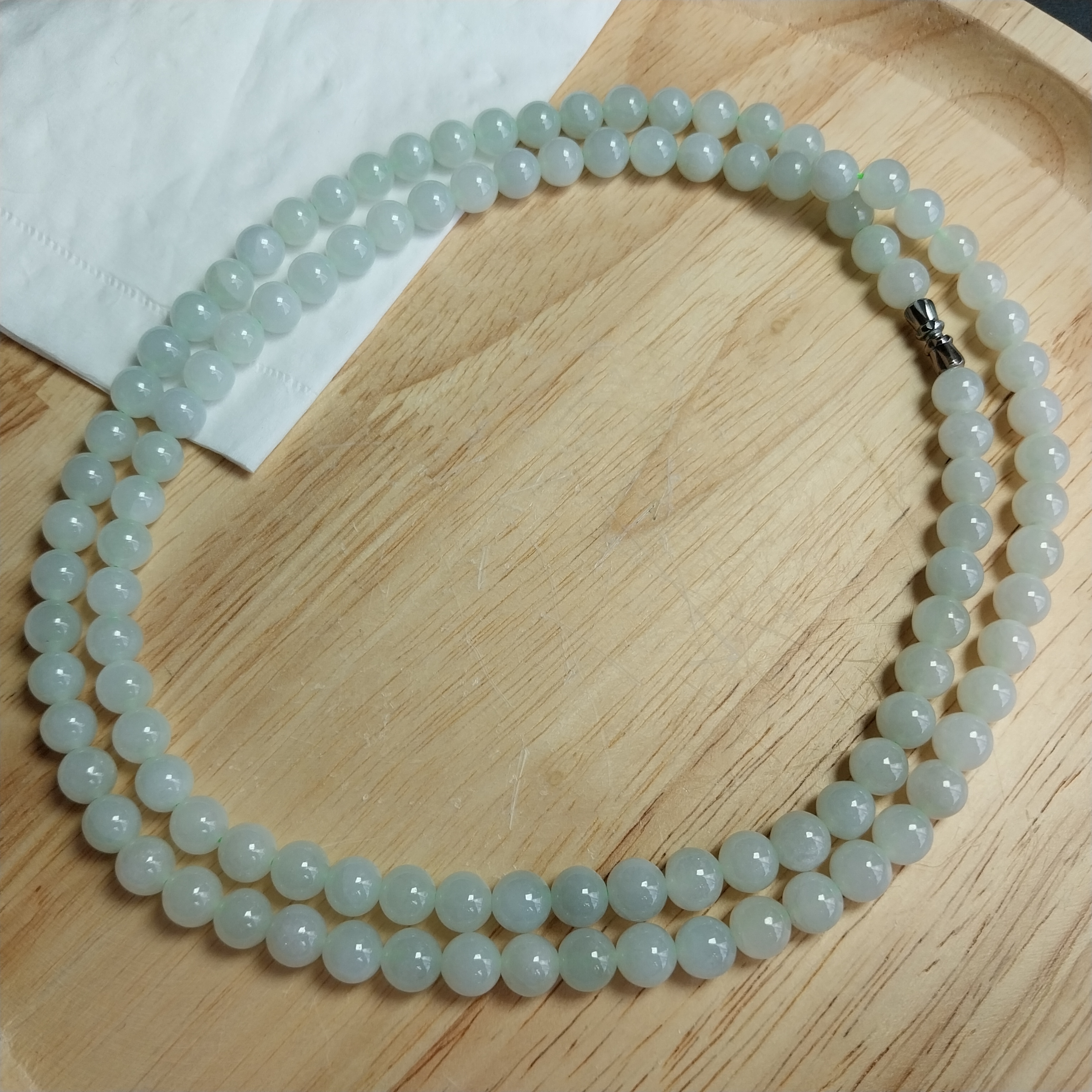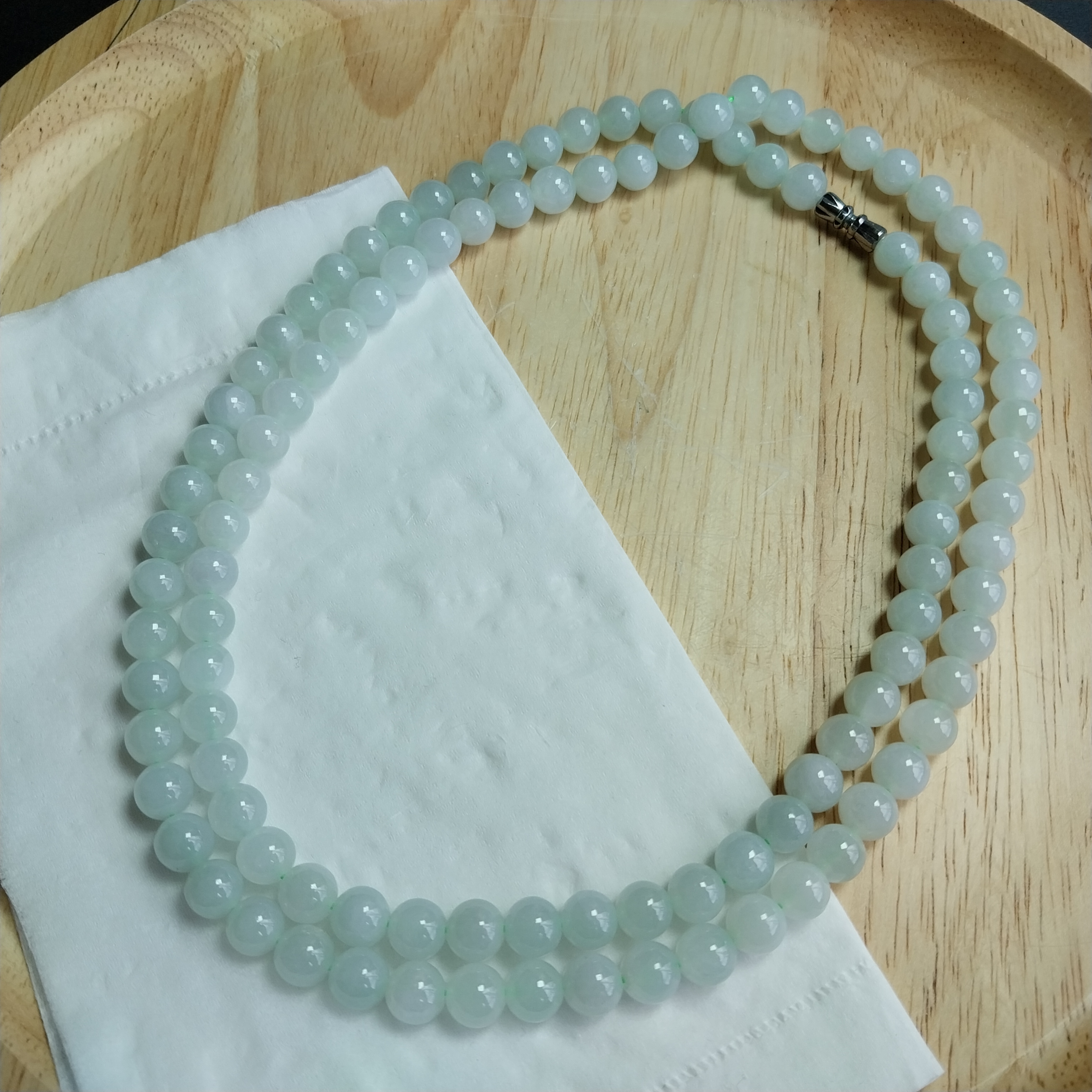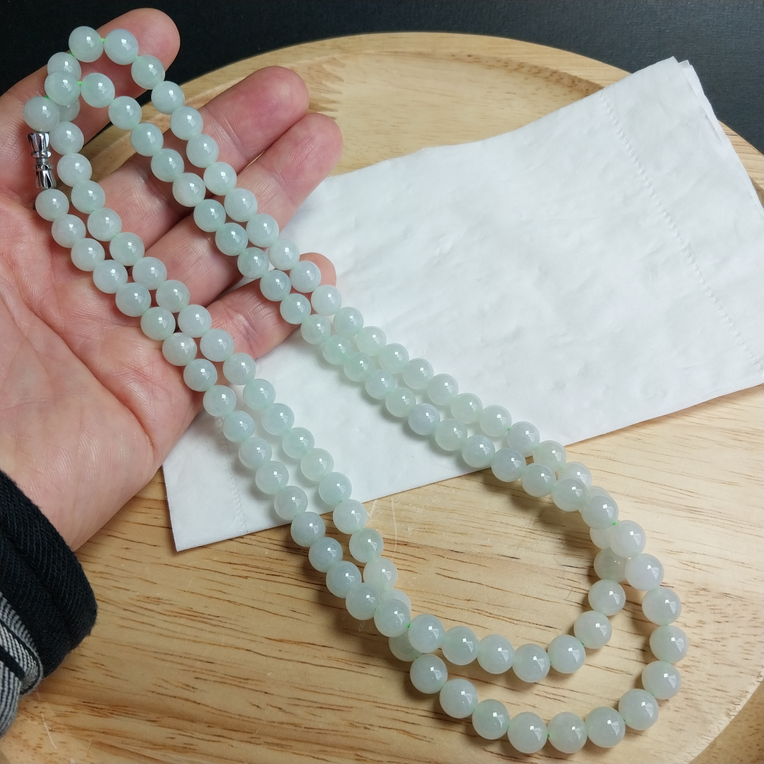 • 冰淺綠翡翠玉珠項鍊 (7.8mm直徑), 天然翡翠A玉, 緬甸玉, Jade, Jadeite
