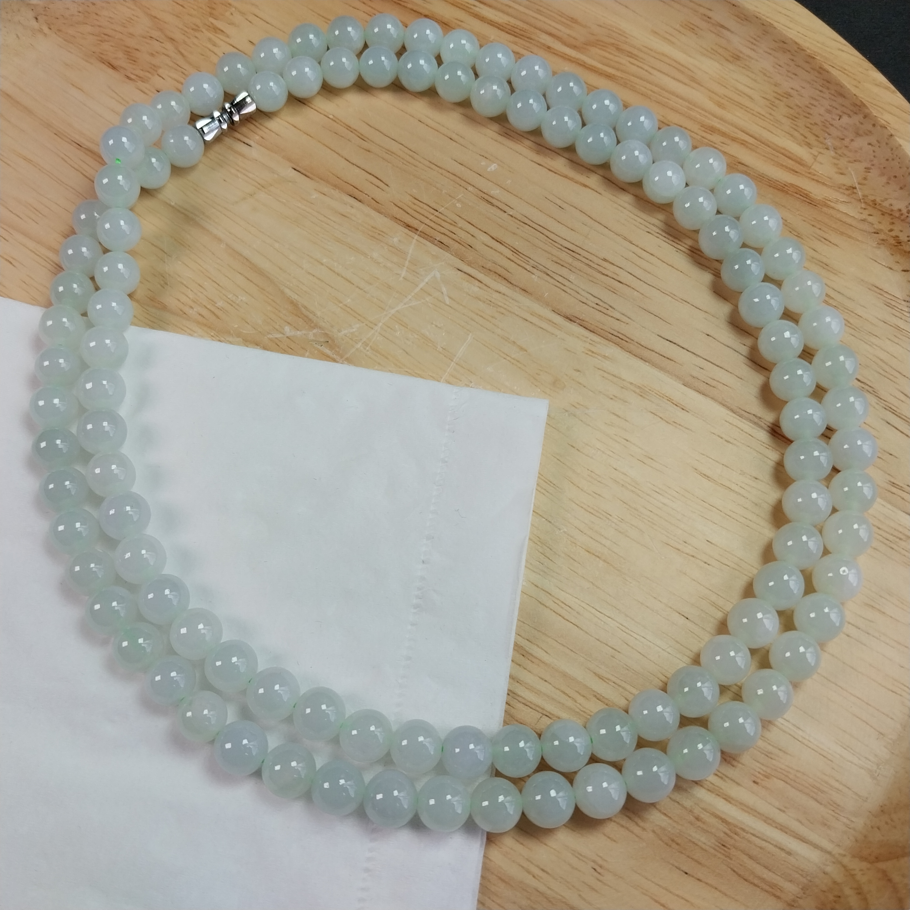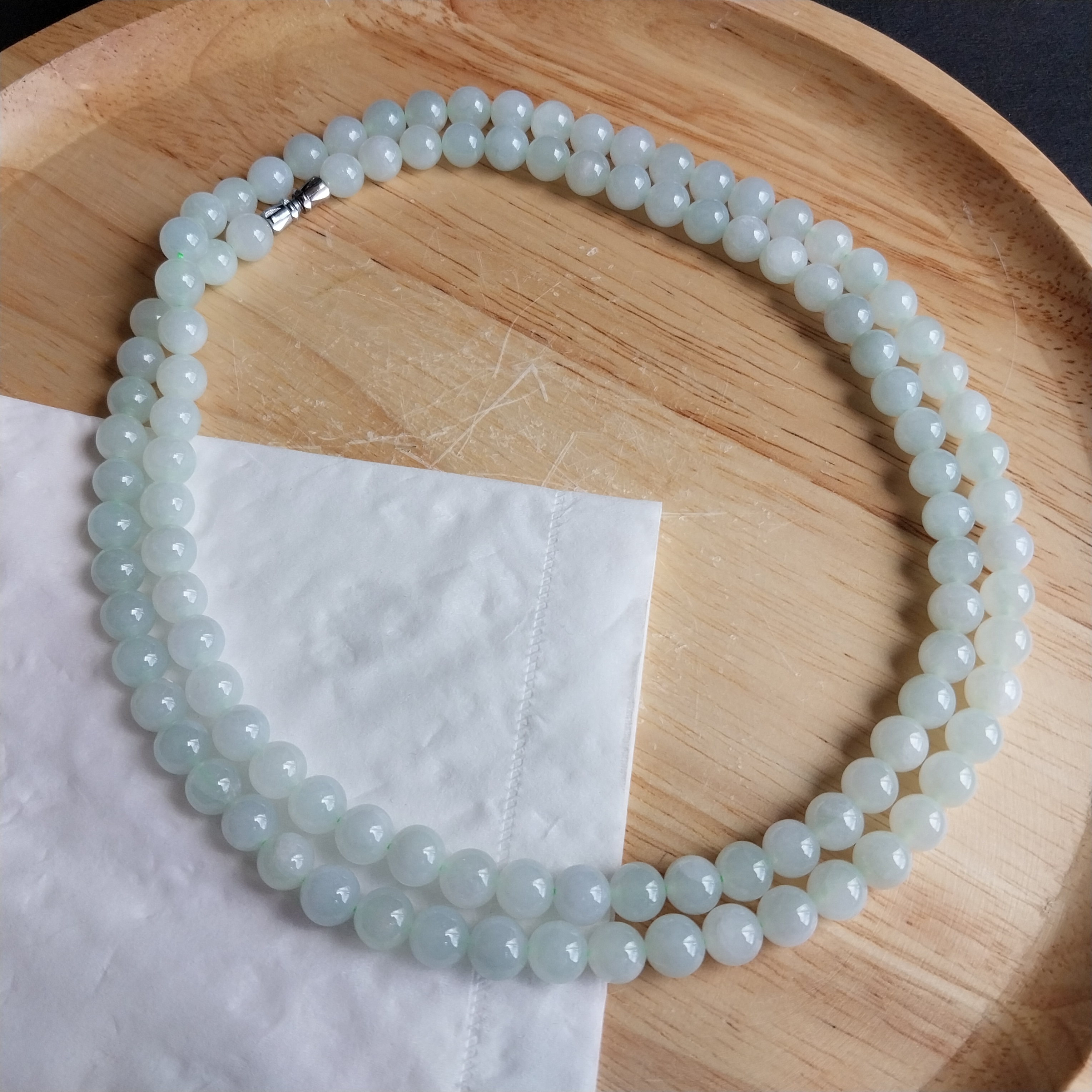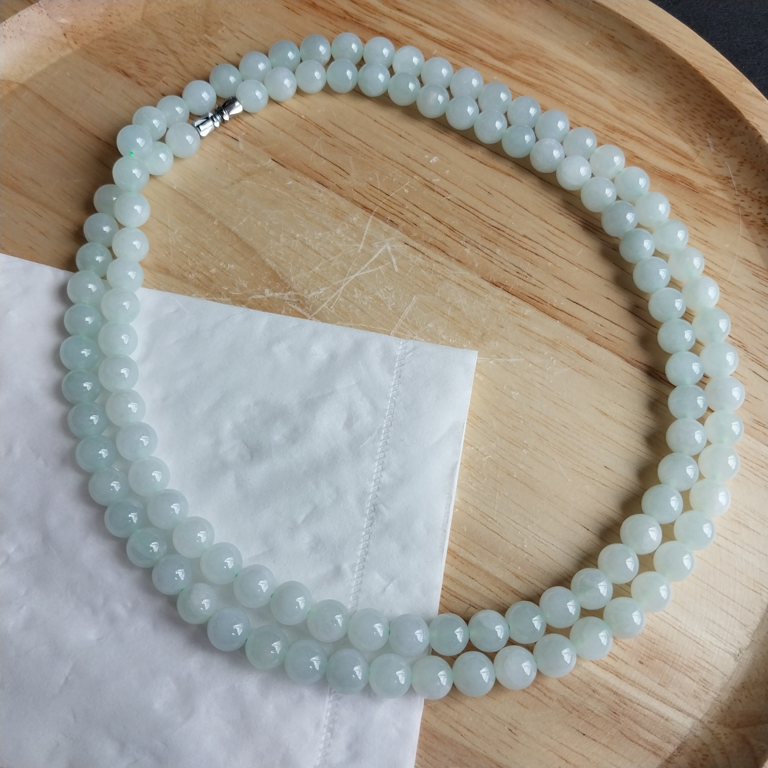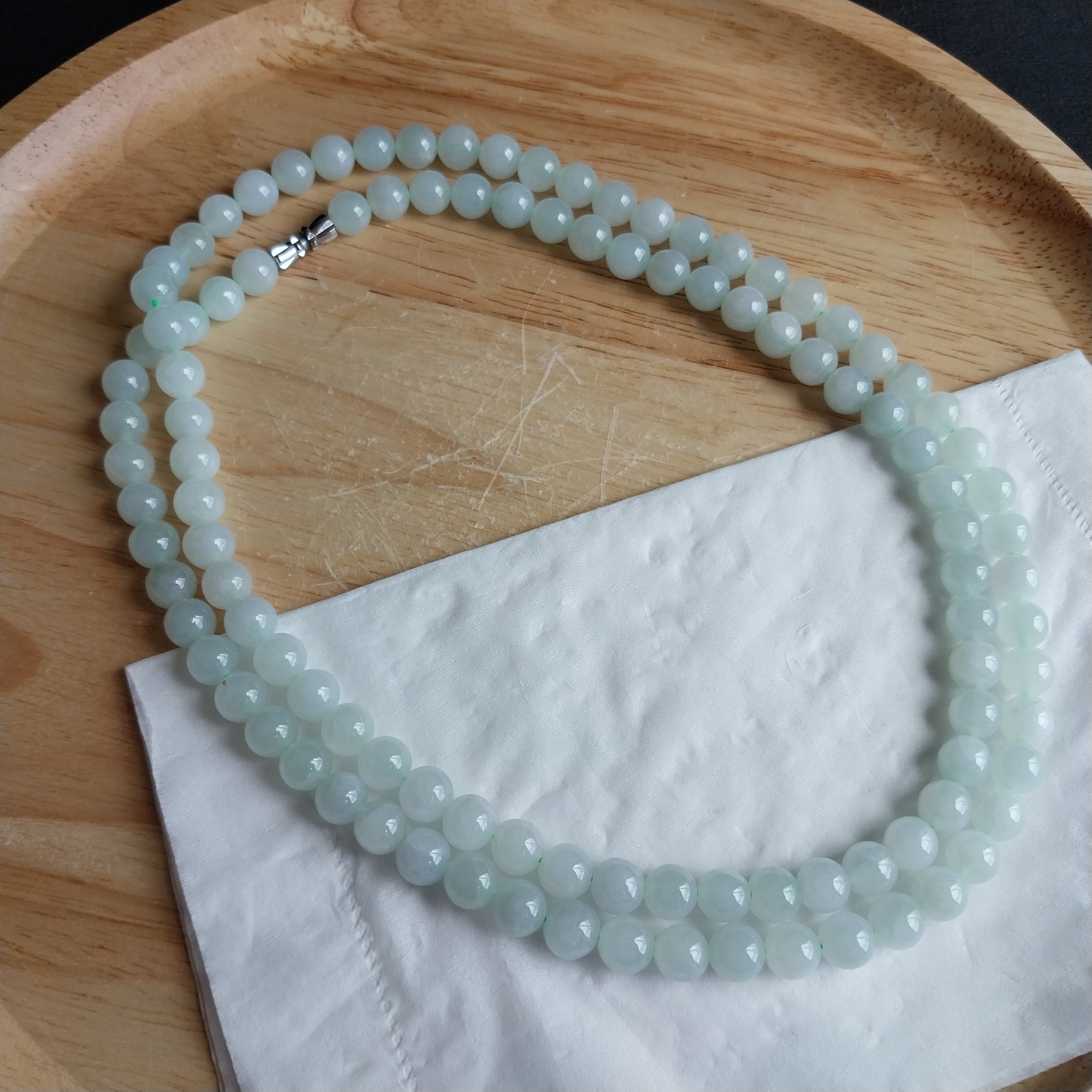 • 冰淺綠翡翠玉珠項鍊 (7.8mm直徑), 天然翡翠A玉, 緬甸玉, Jade, Jadeite