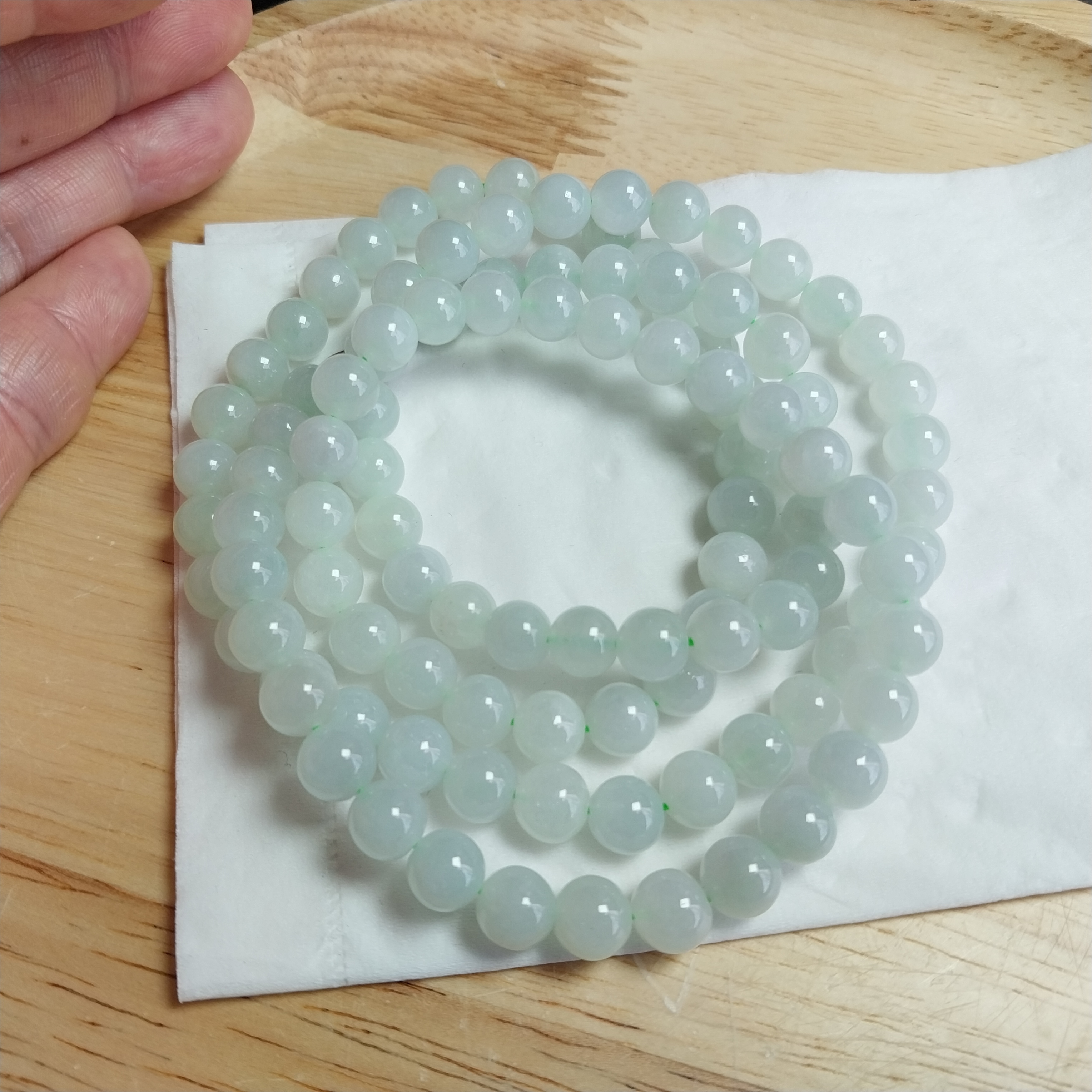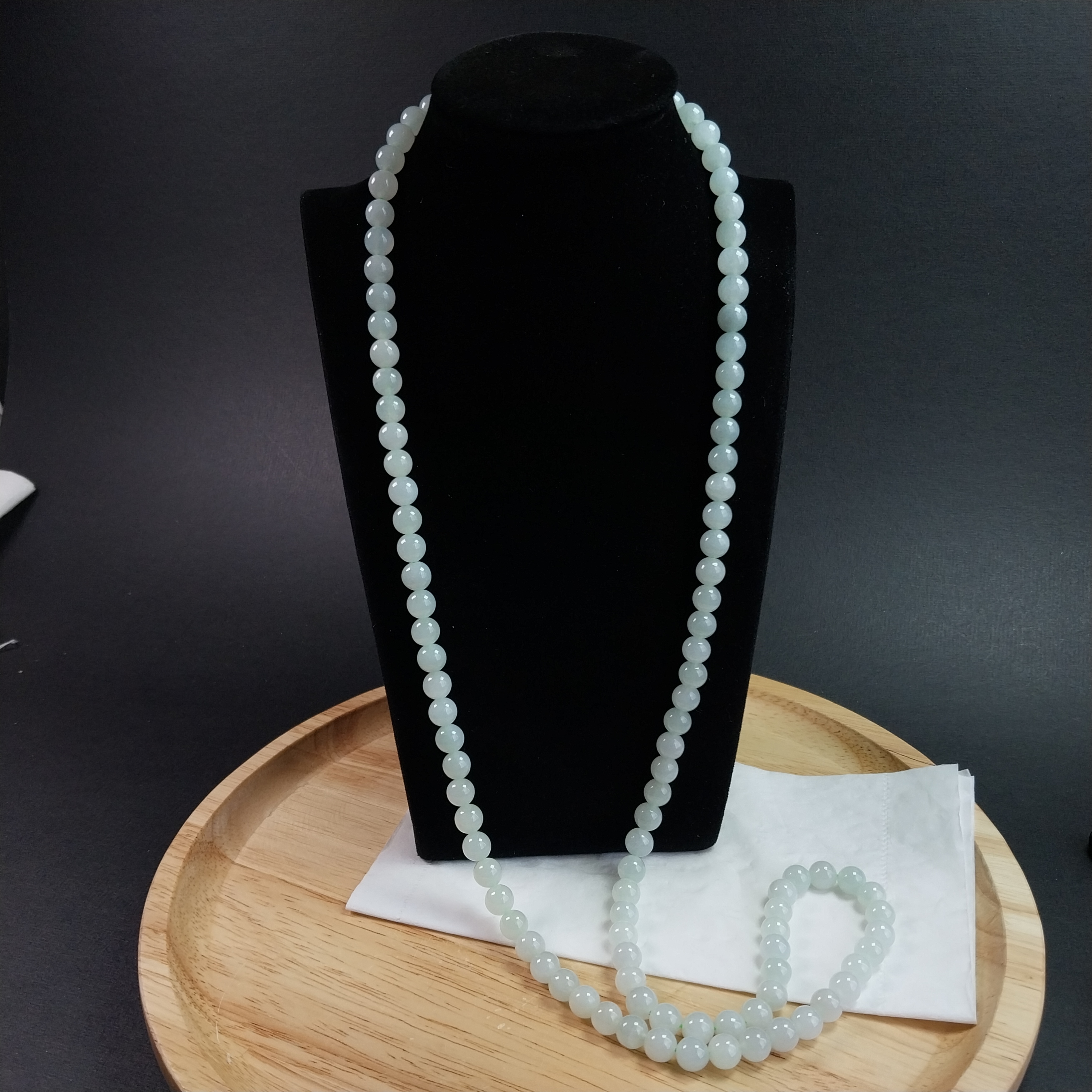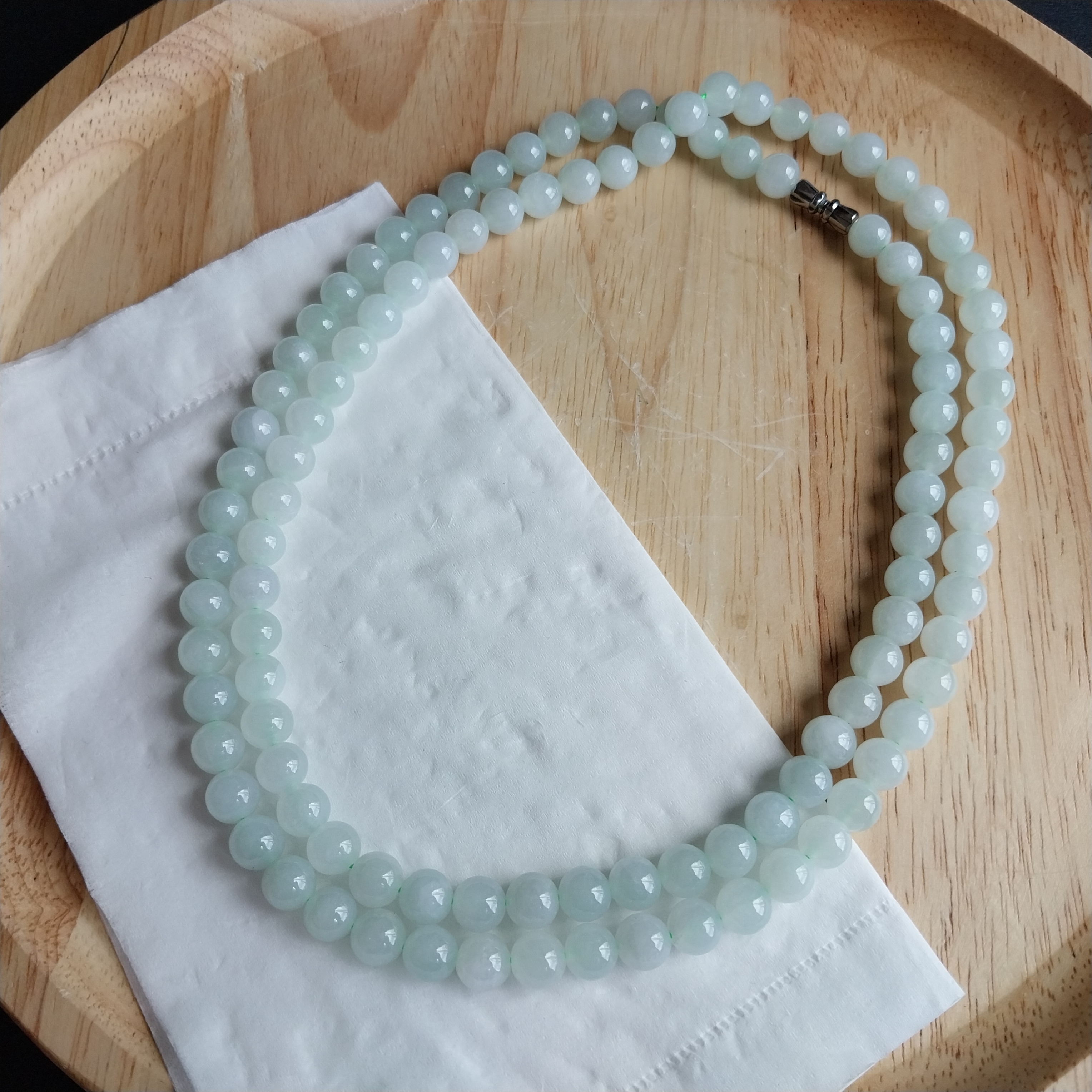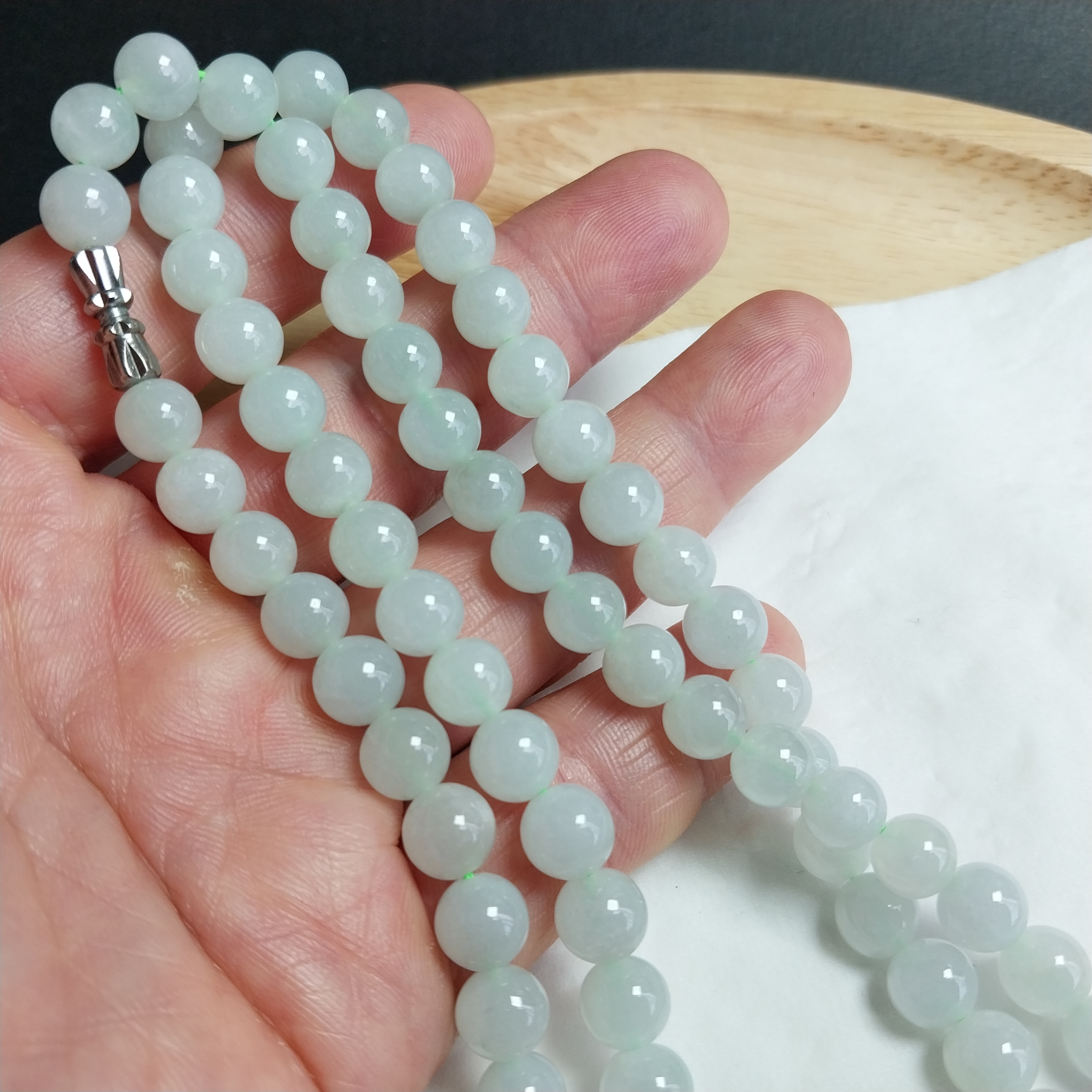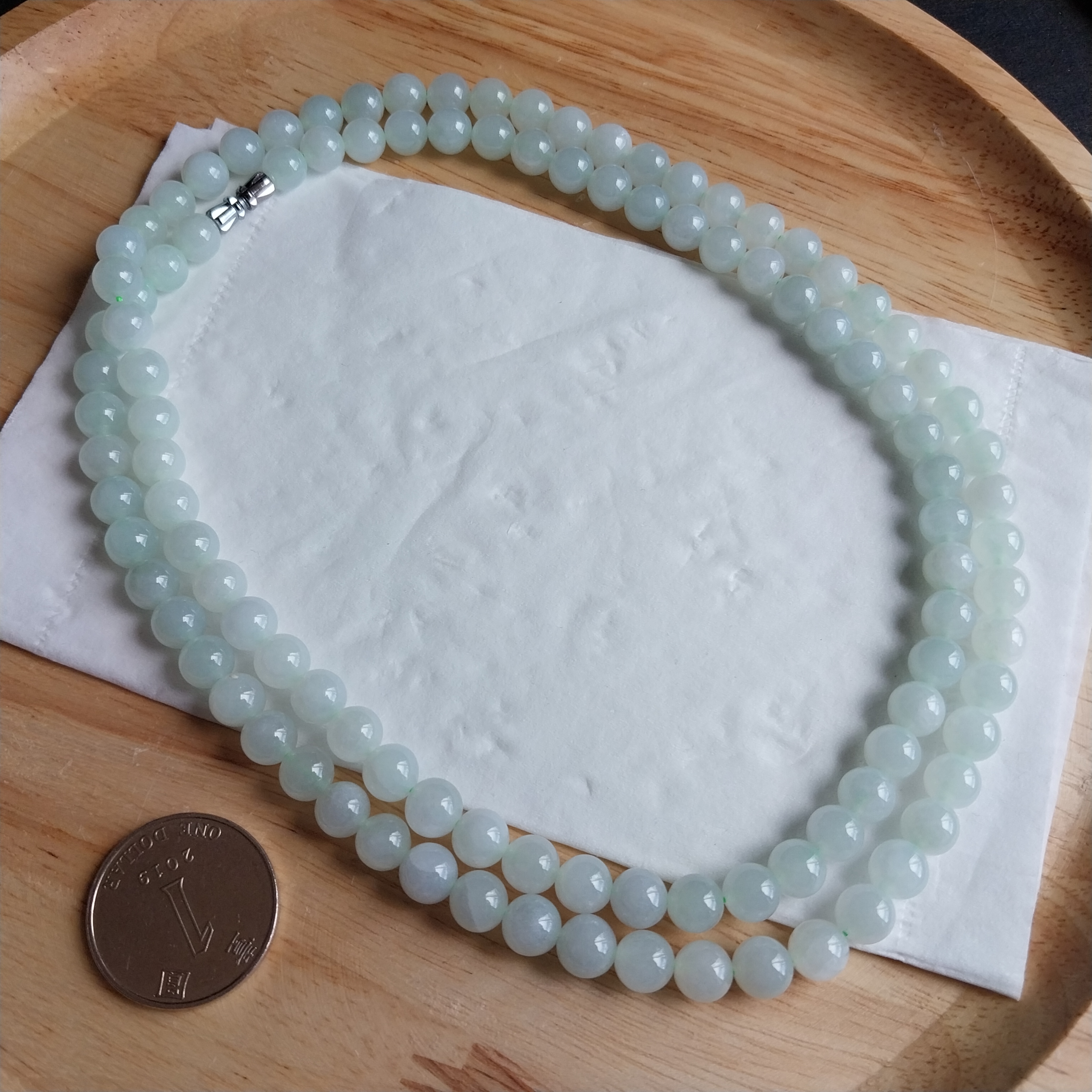 • 冰淺綠翡翠玉珠項鍊 (7.8mm直徑), 天然翡翠A玉, 緬甸玉, Jade, Jadeite