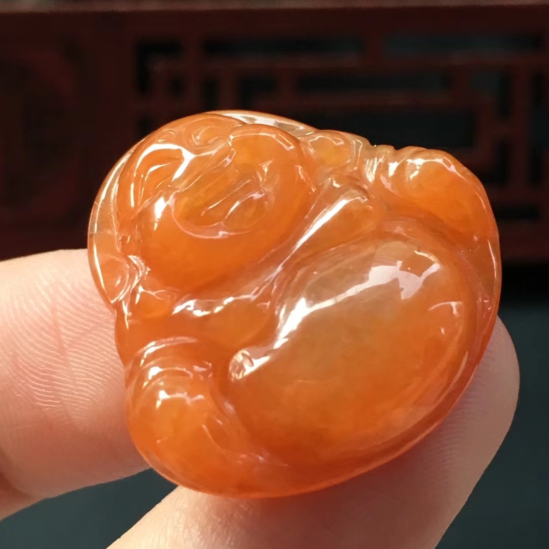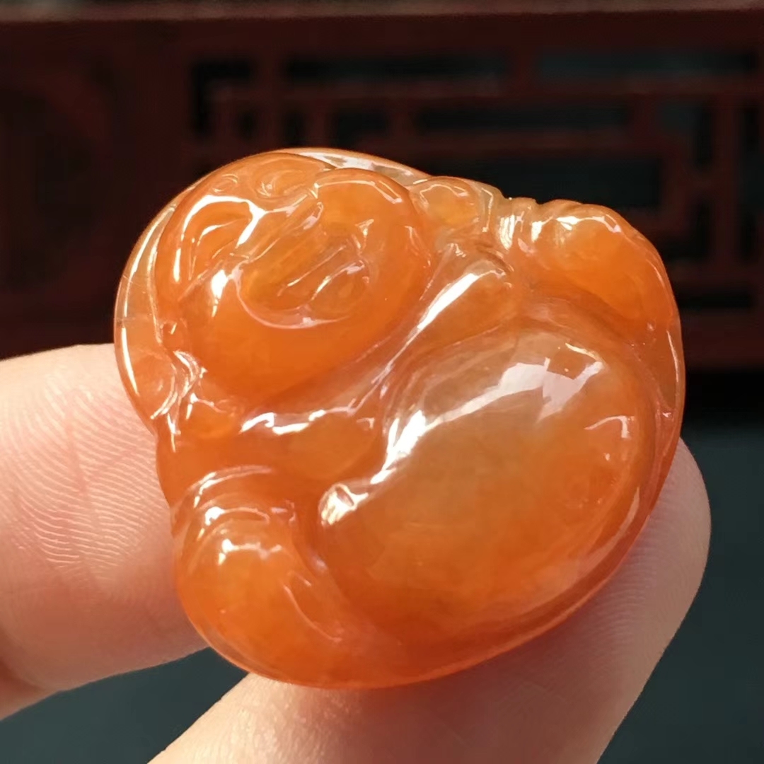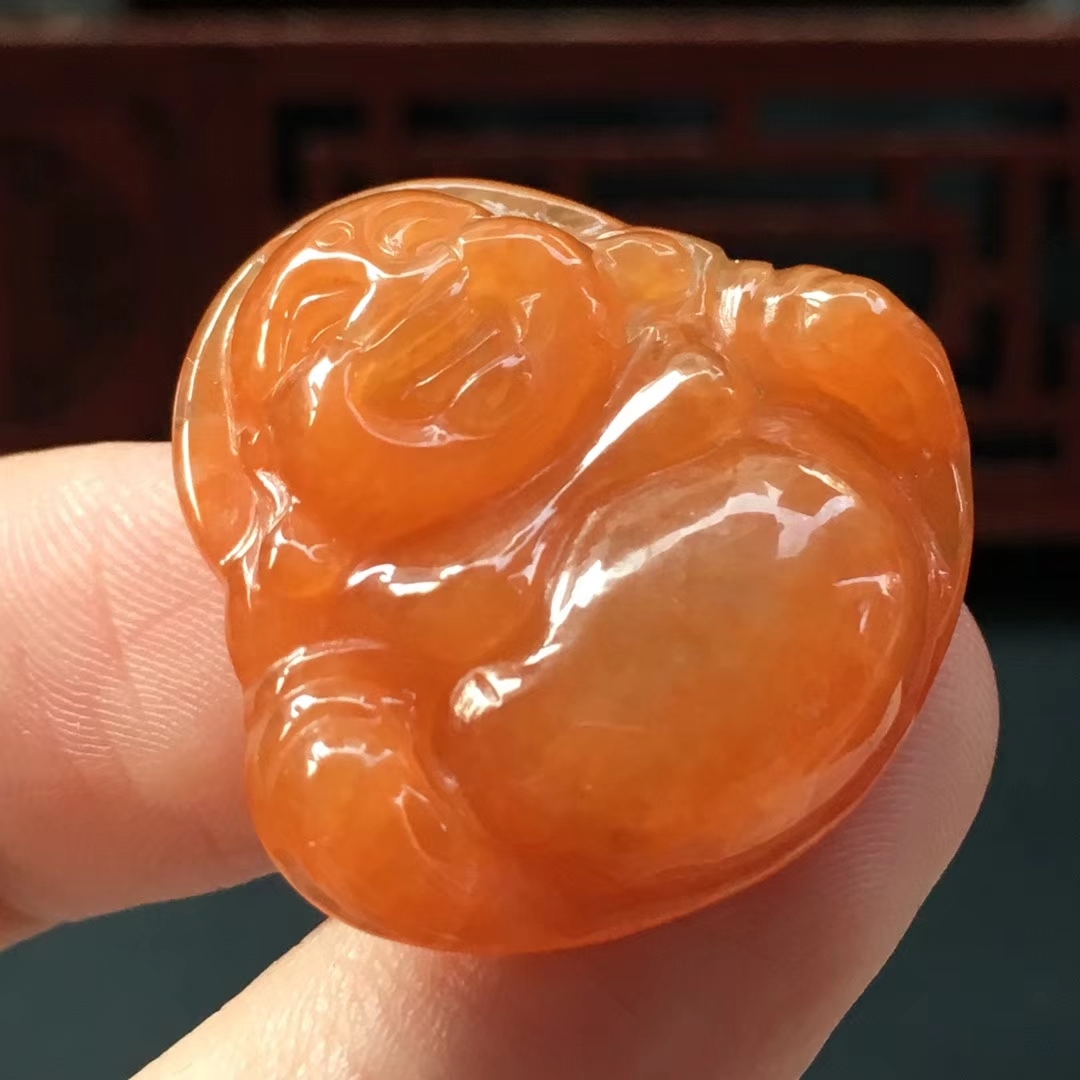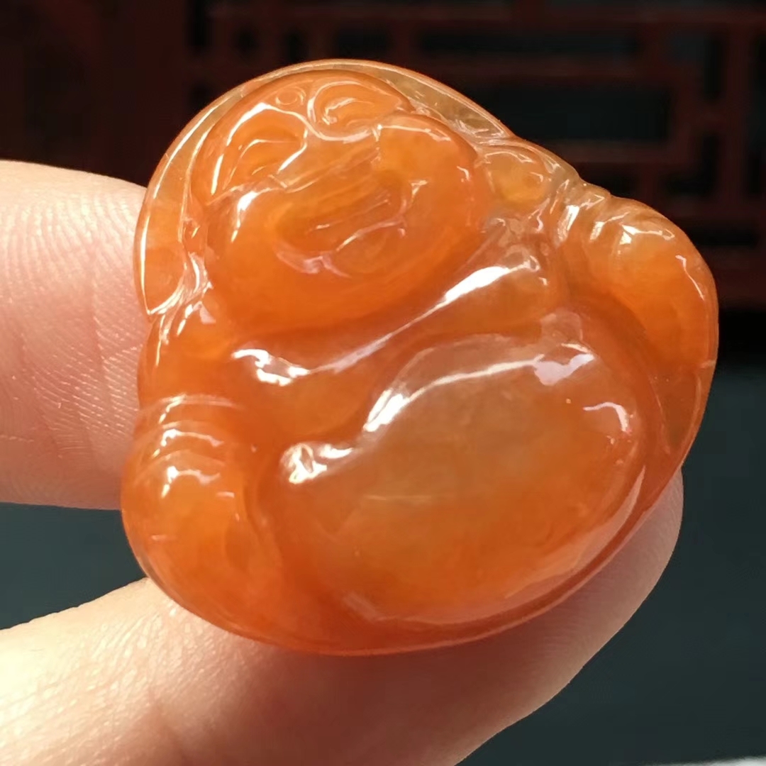 • 冰糯紅翡小佛公, 天然翡翠A玉, 緬甸玉, Jade, Jadeite