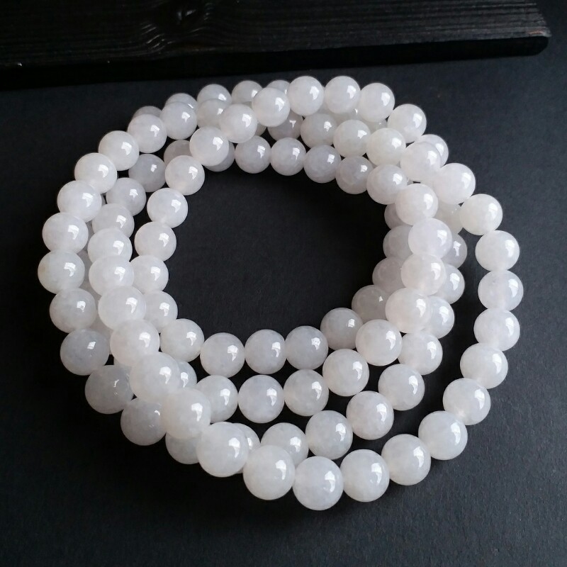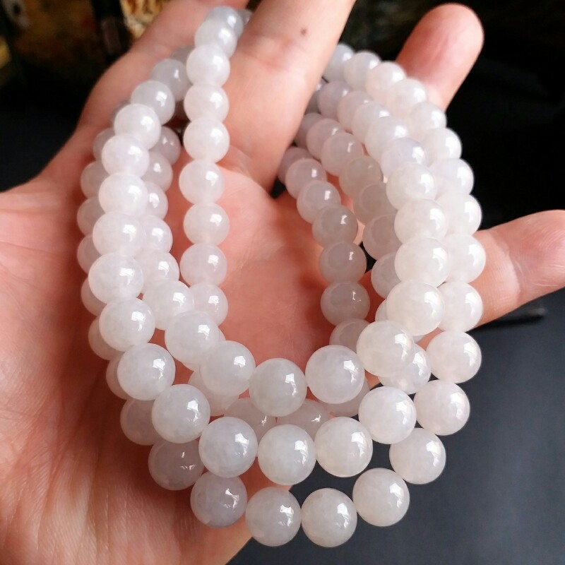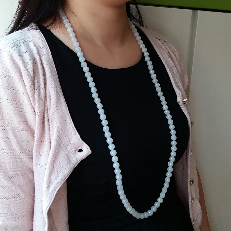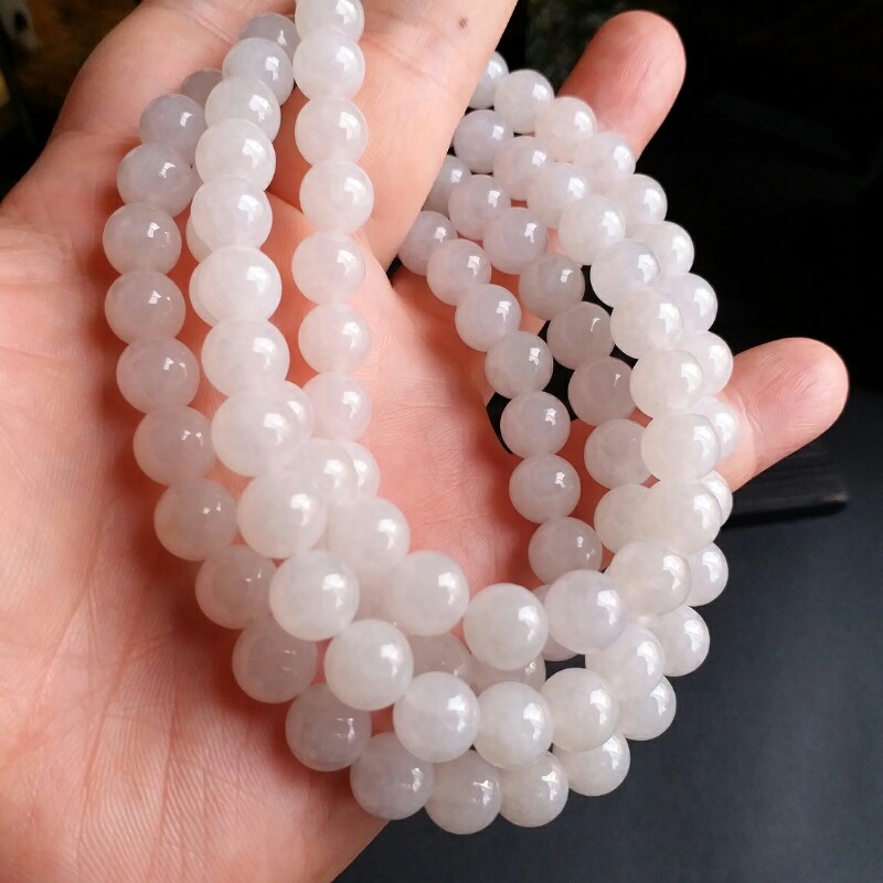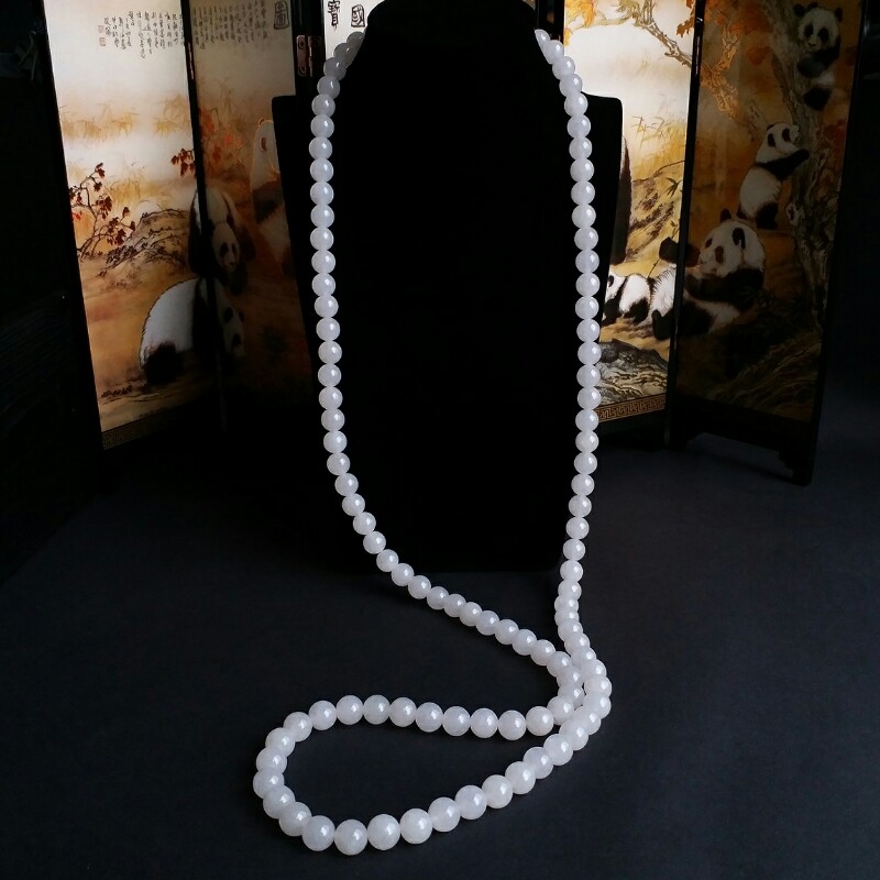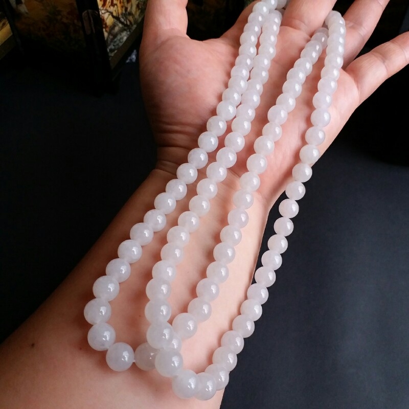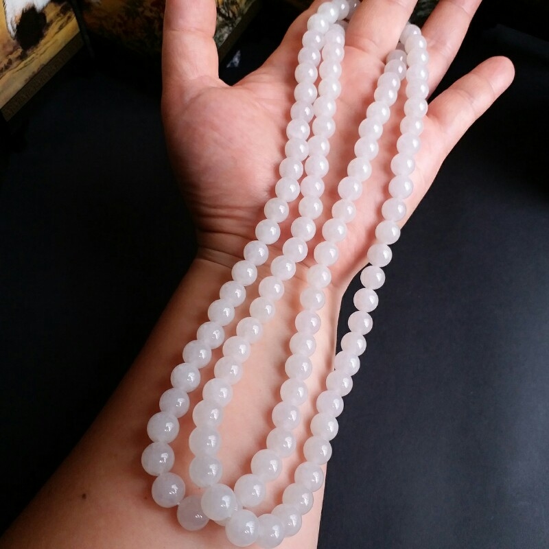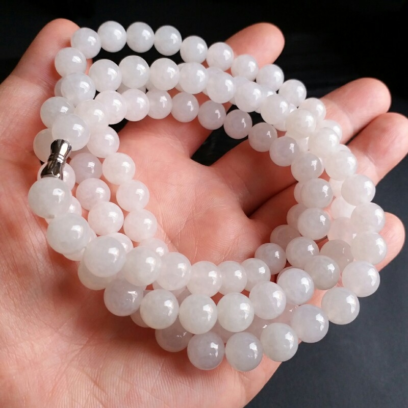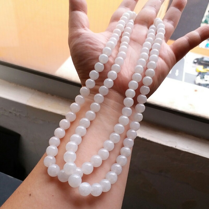 J721 冰種白翡翠玉珠項鍊