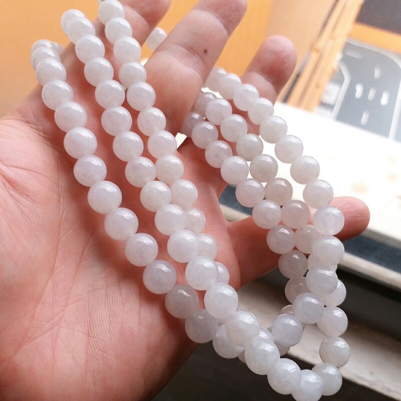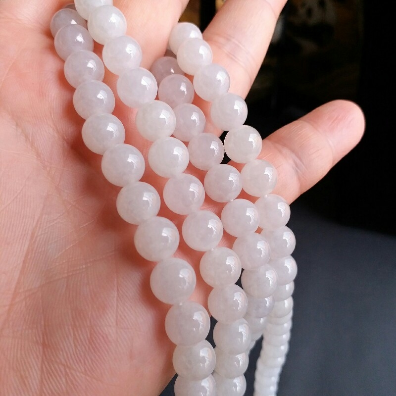 • 冰種白翡翠玉珠項鍊 (9mm直徑), 天然翡翠A玉, 緬甸玉, Jade, Jadeite