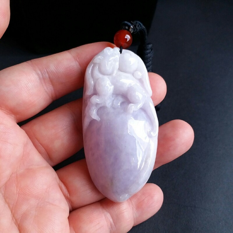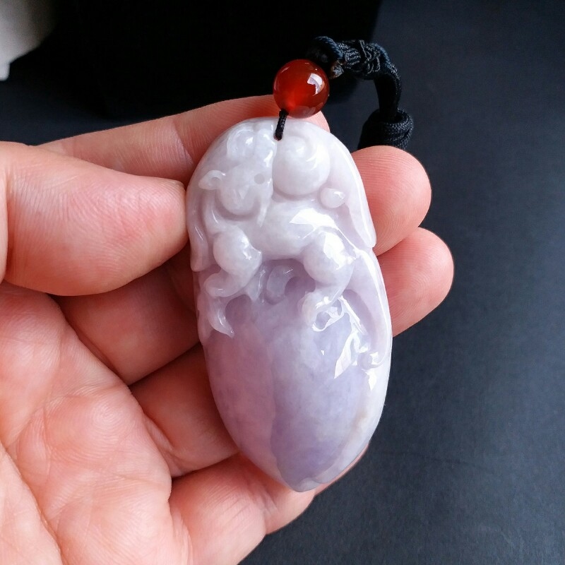 • 冰糯紫羅蘭貔貅壽桃吊牌, 天然翡翠A玉, 緬甸玉, Jade, Jadeite