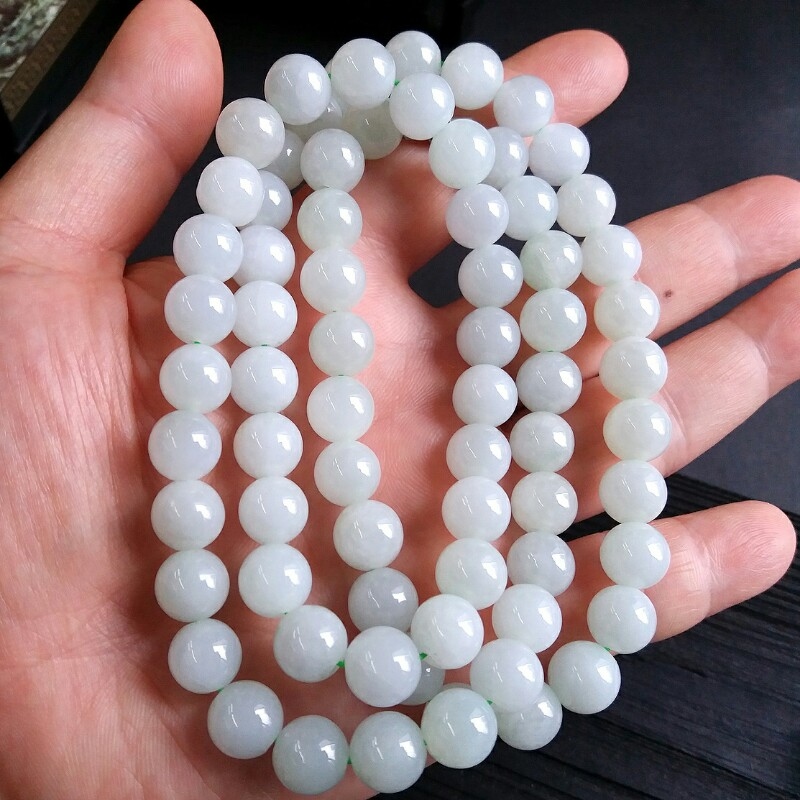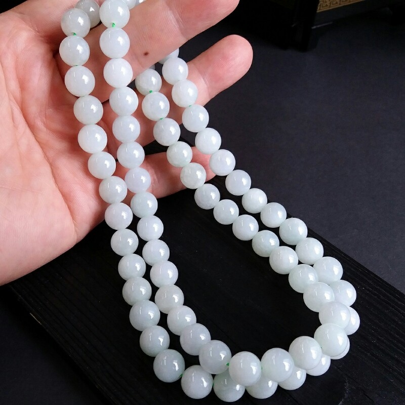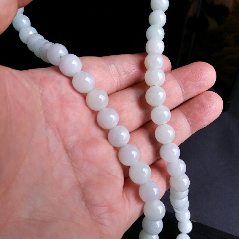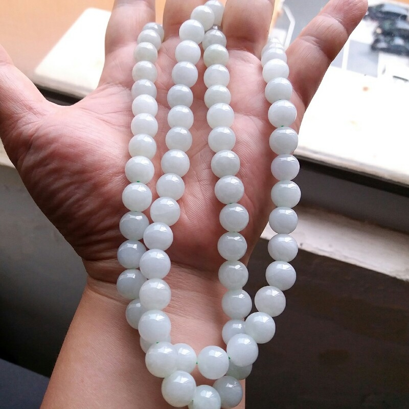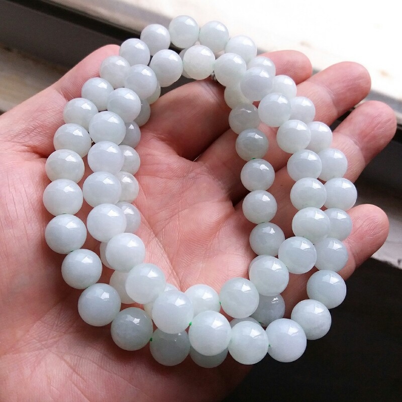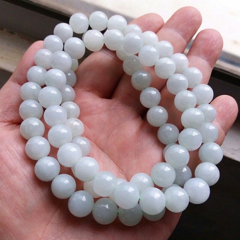 J770 冰淺綠翡翠玉珠項鍊 (9.5mm直徑)