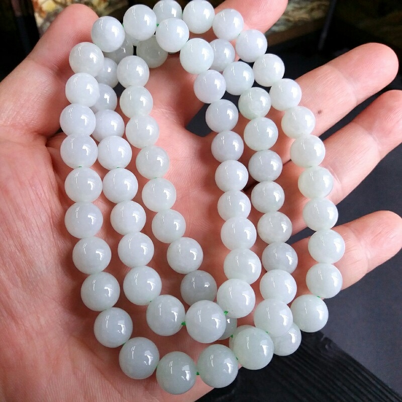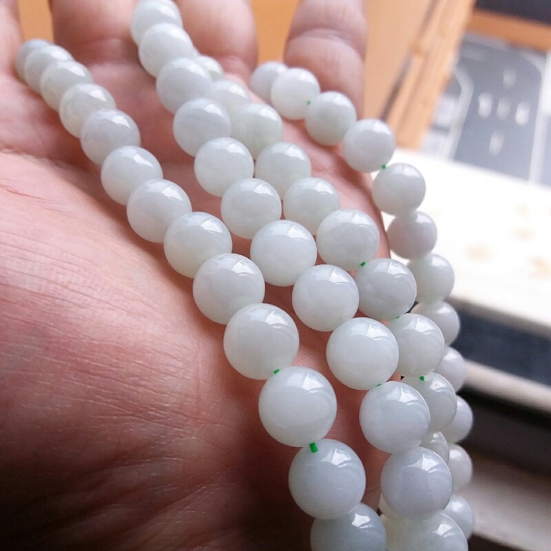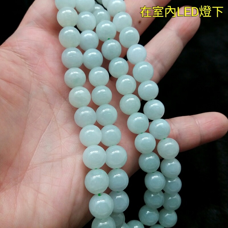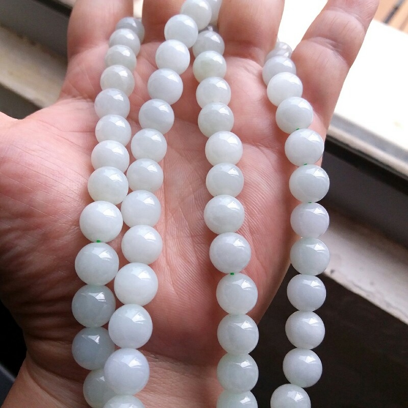 • 冰淺綠翡翠玉珠項鍊 (9.5mm直徑), 天然翡翠A玉, 緬甸玉, Jade, Jadeite