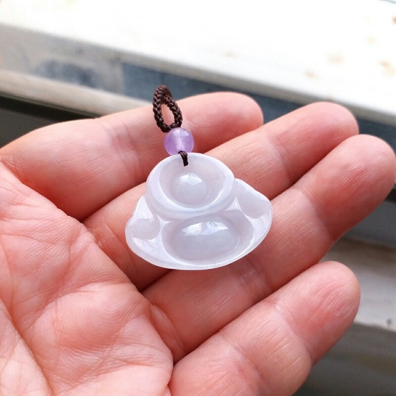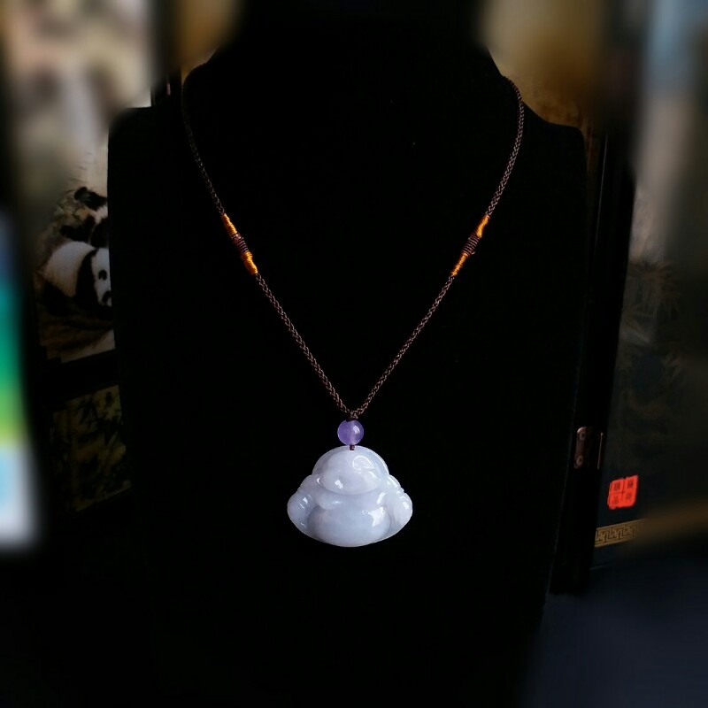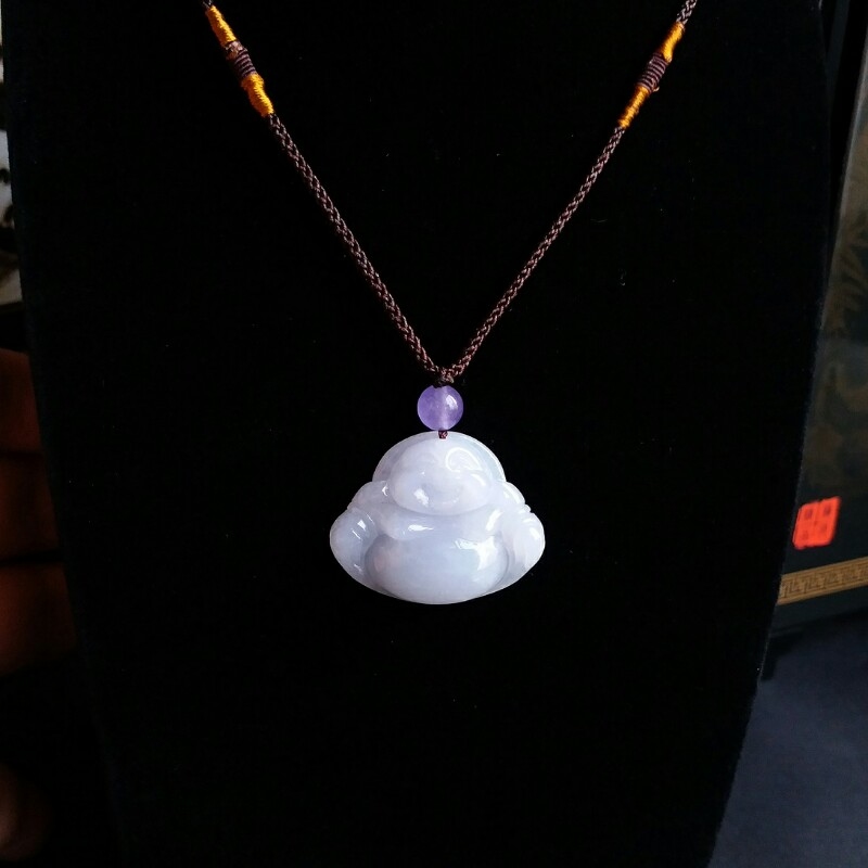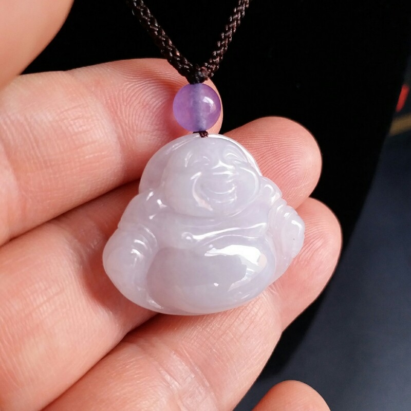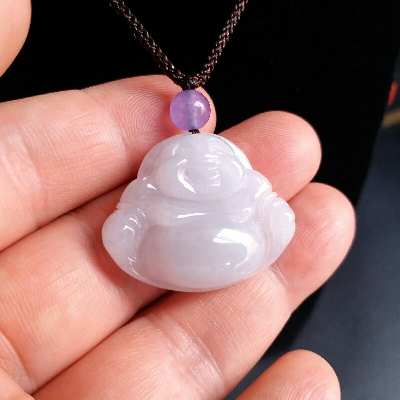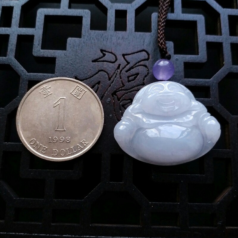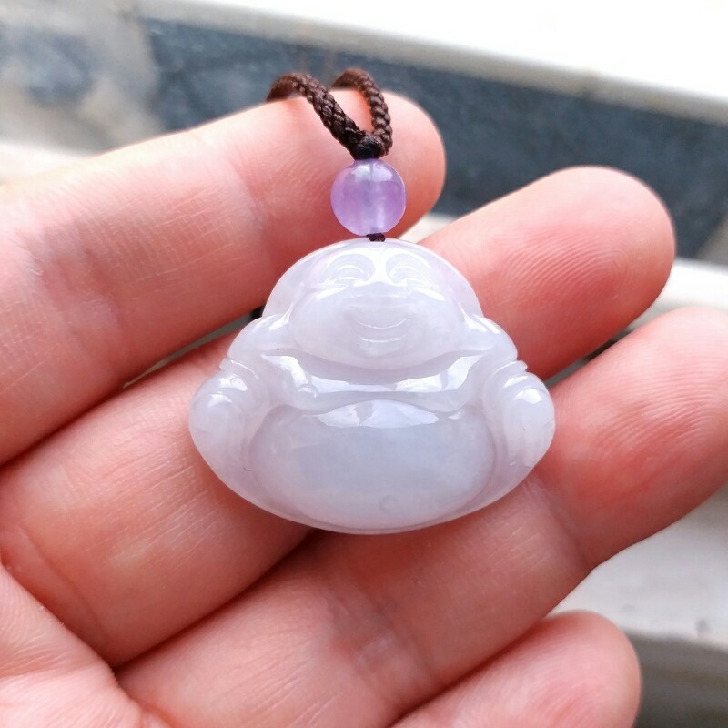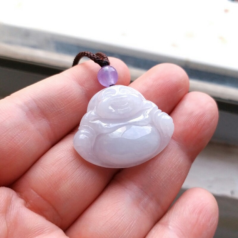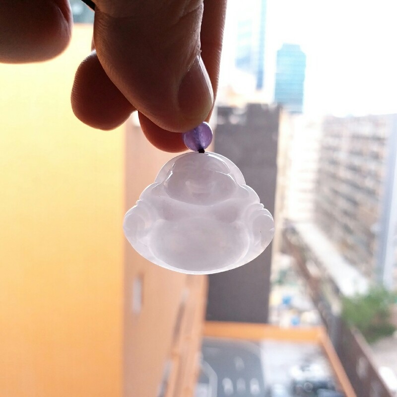 • 冰淡紫笑佛吊墜, 天然翡翠A玉, 緬甸玉, Jade, Jadeite